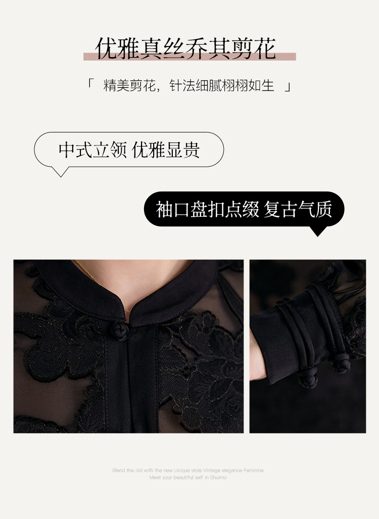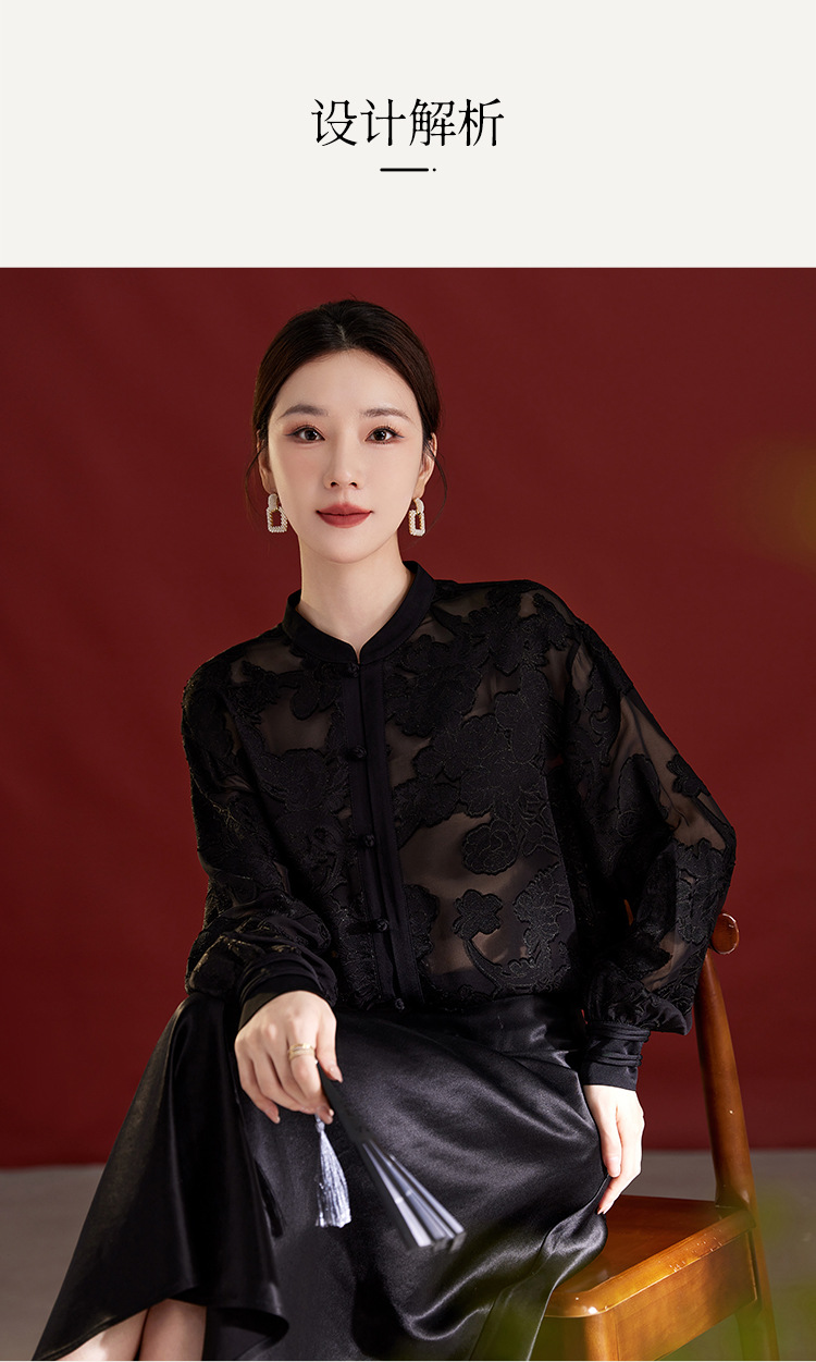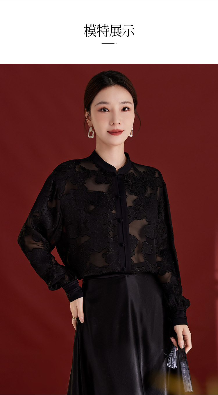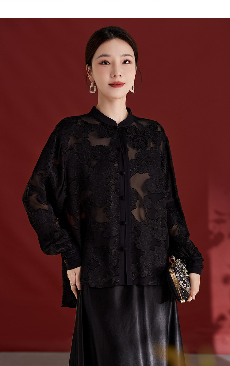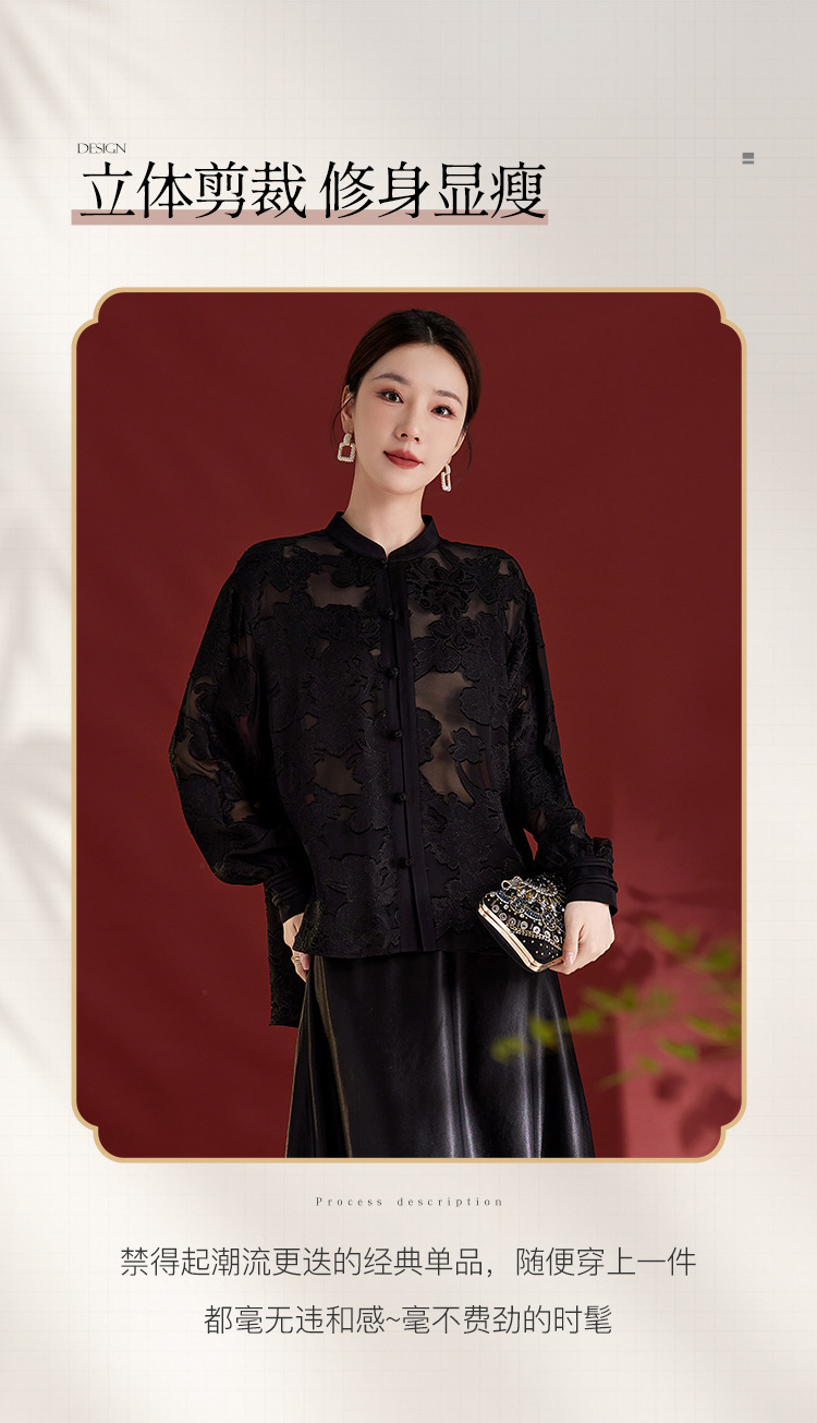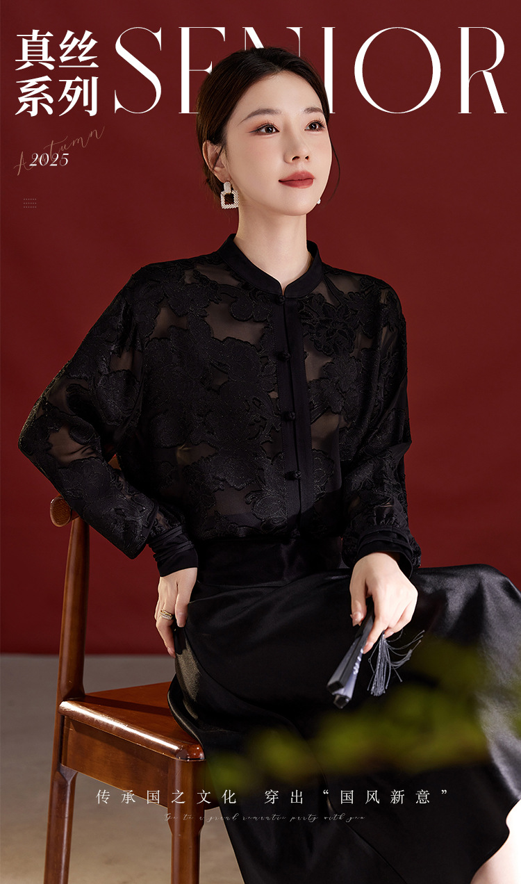 QS2025秋季新款真丝桑蚕丝女法式通勤薄款新中式立领宽松上衣1791