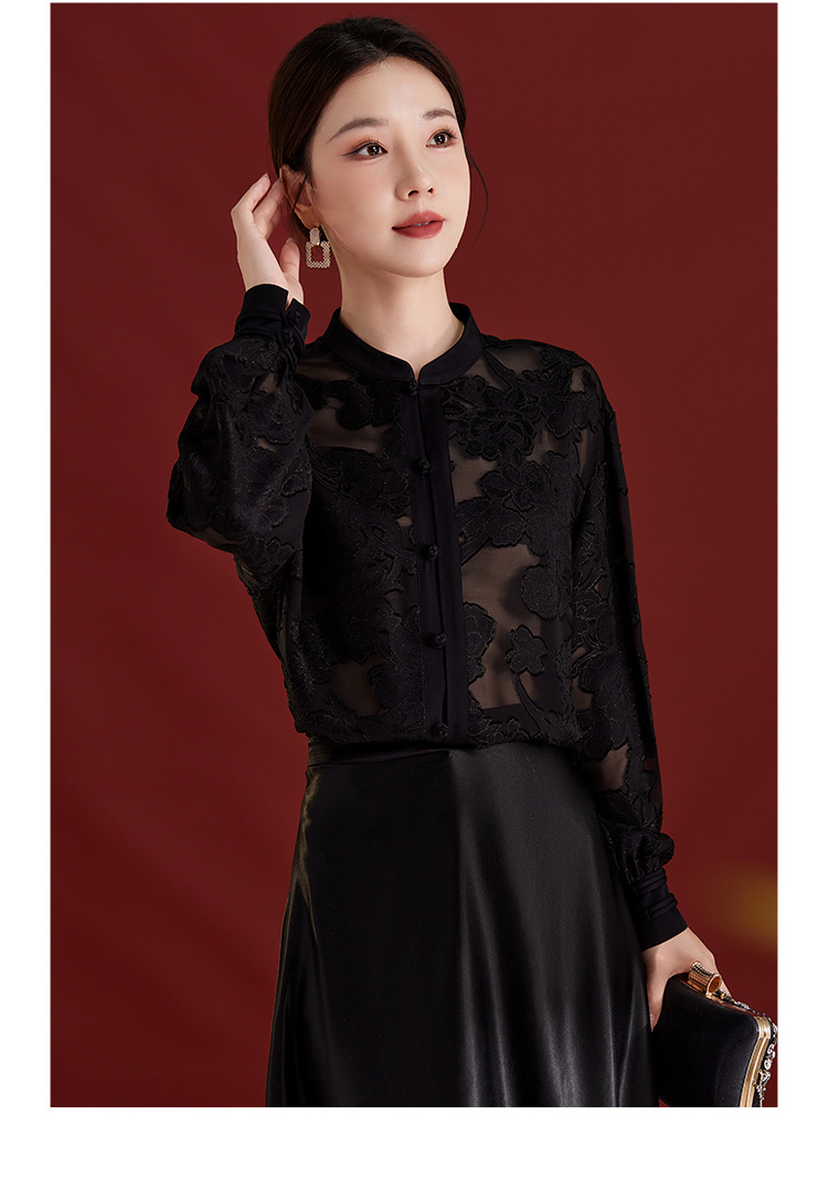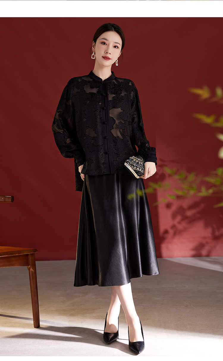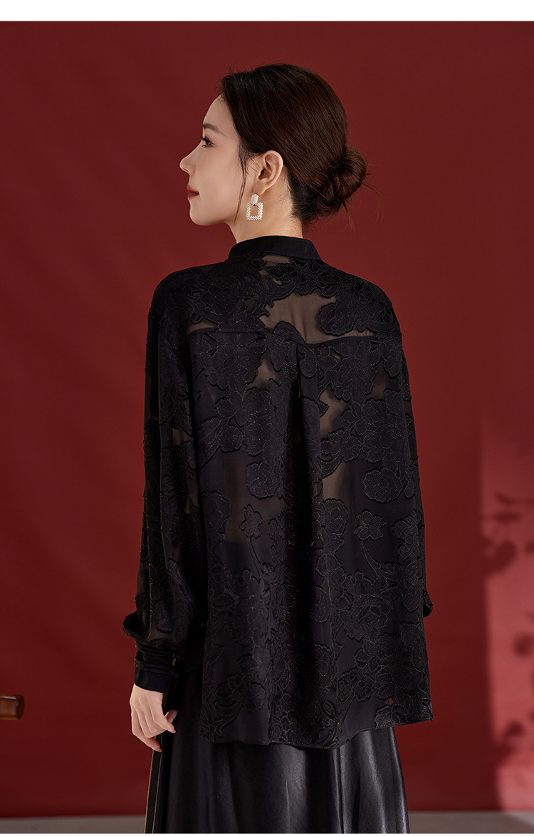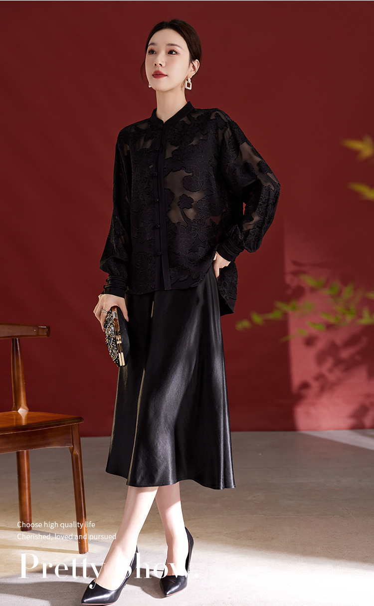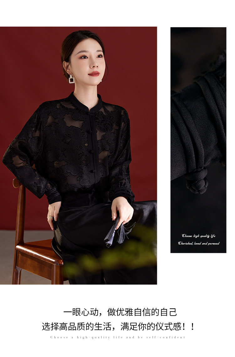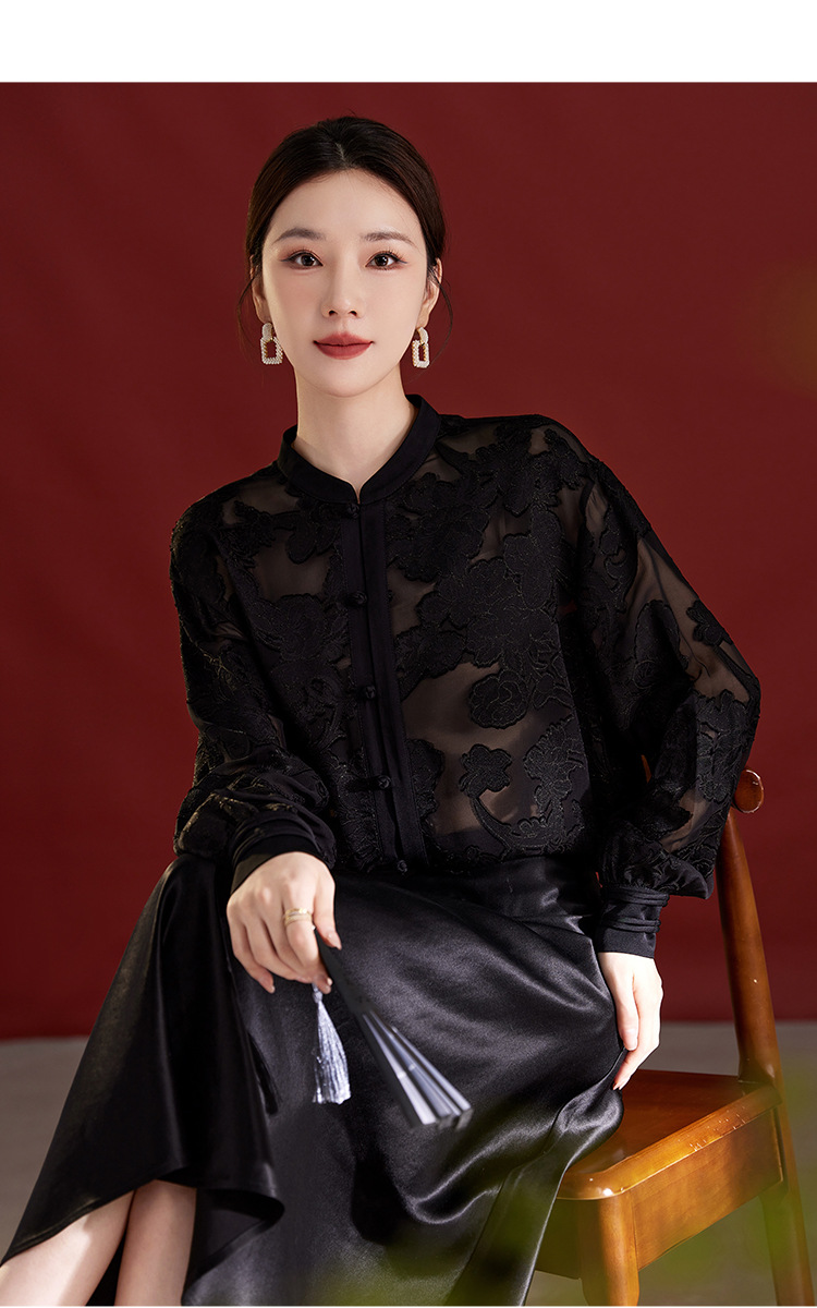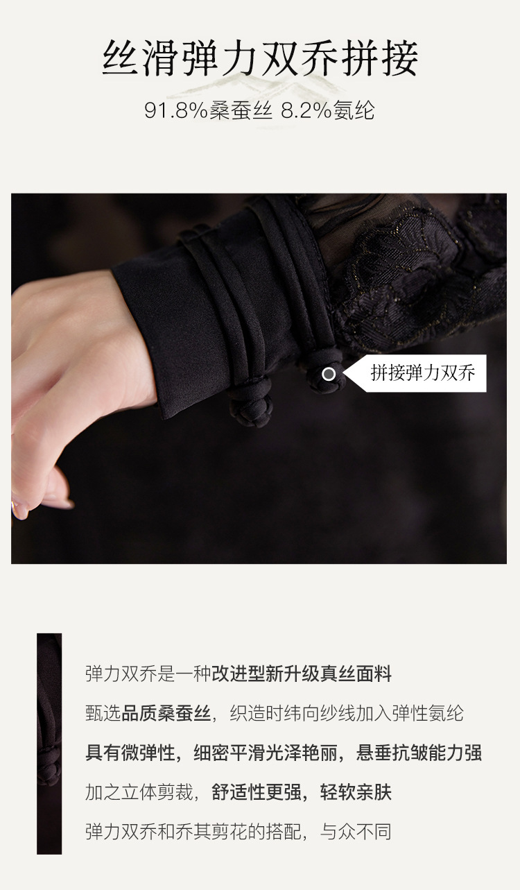 QS2025秋季新款真丝桑蚕丝女法式通勤薄款新中式立领宽松上衣1791
