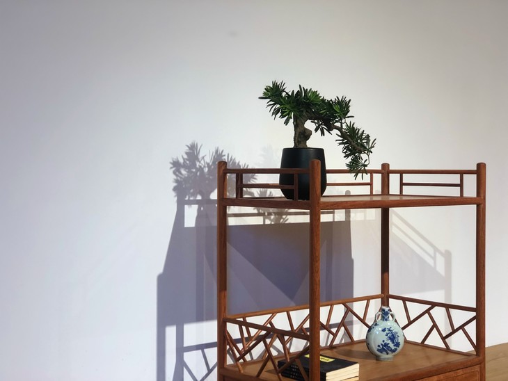 茶水架,古典雅致,放置于茶桌一侧,用来陈列茶具,摆件,文玩,绿植等,兼具实用性和装饰性,繁而不乱。