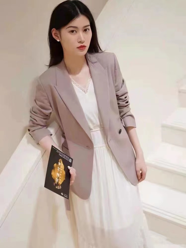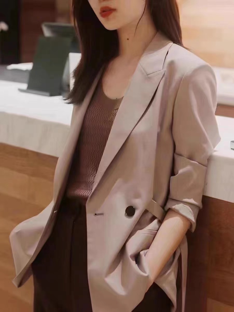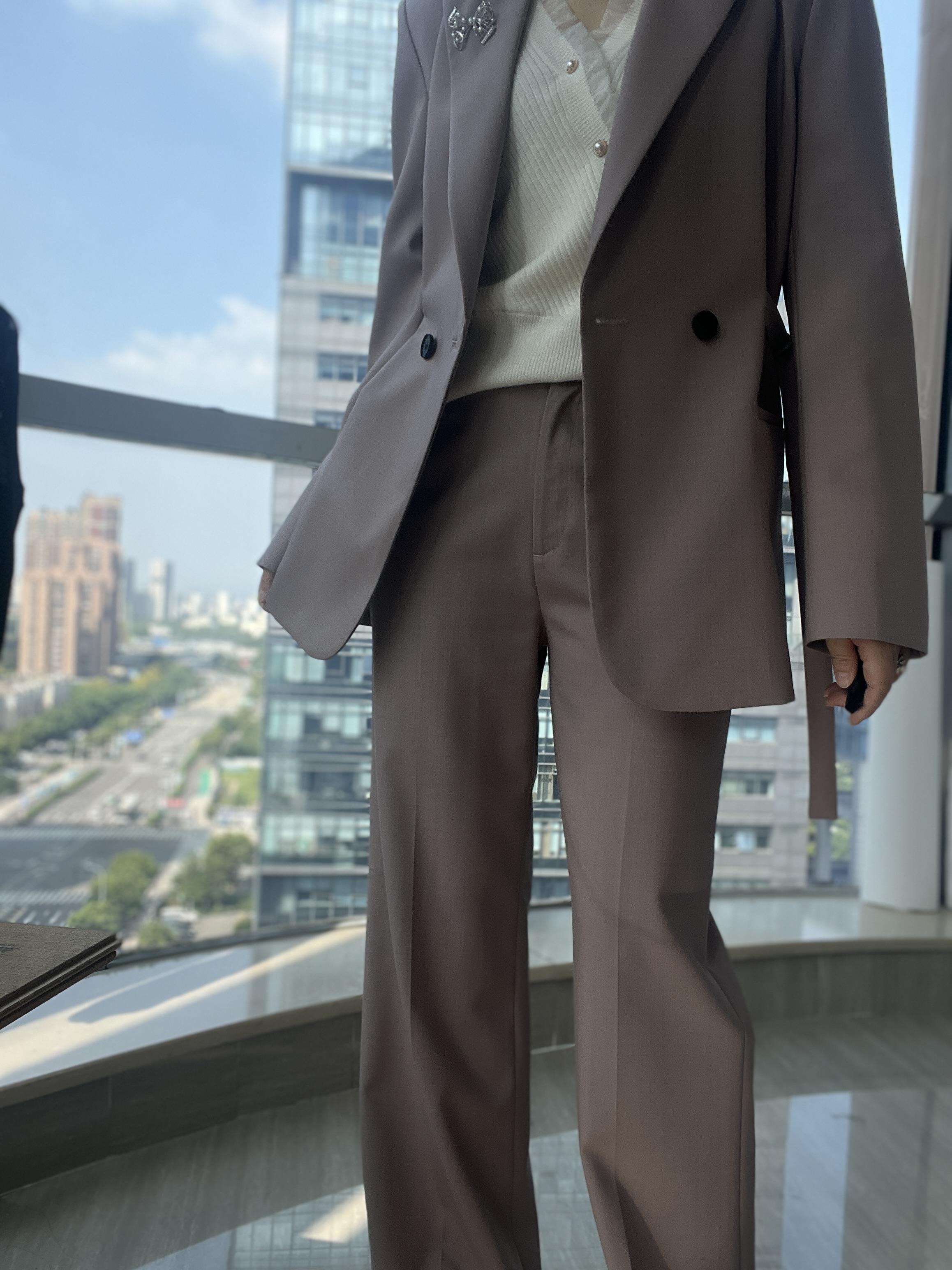 【à perles精选】精纺超高支羊毛+真丝内衬 简约一粒扣修身廓形西服套装【清仓,不退不换】