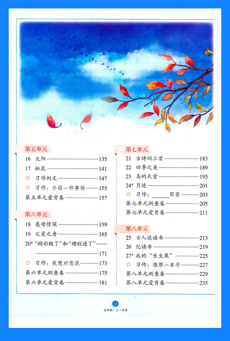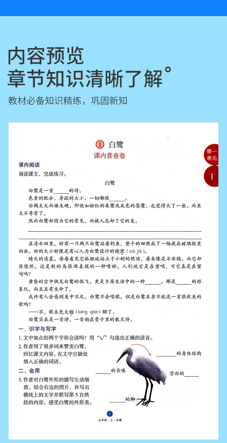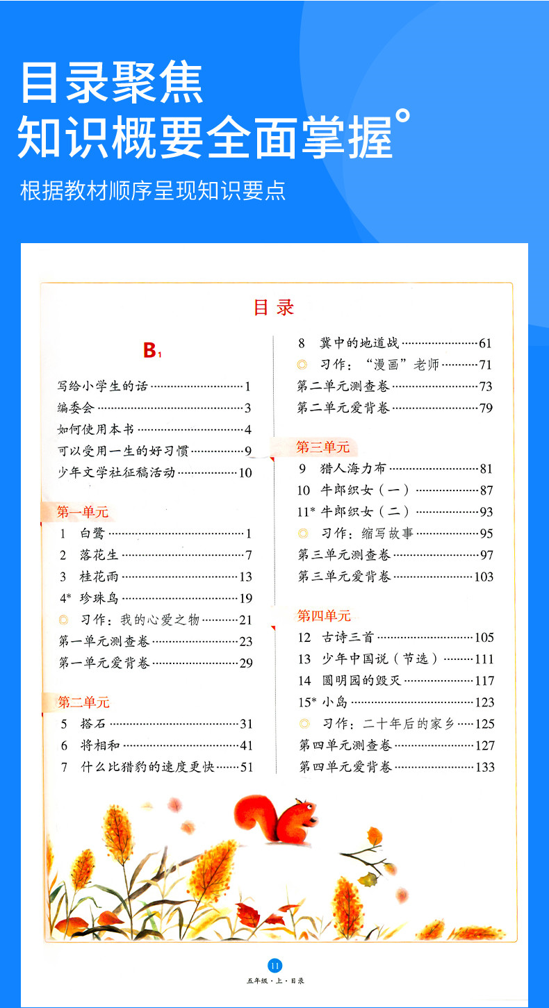 小学生绘本课堂练习书 语文五年级上册第5版 全二册