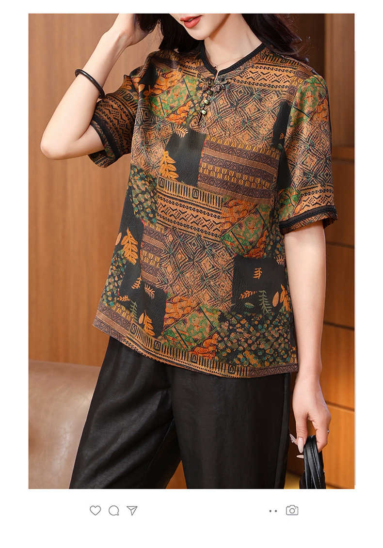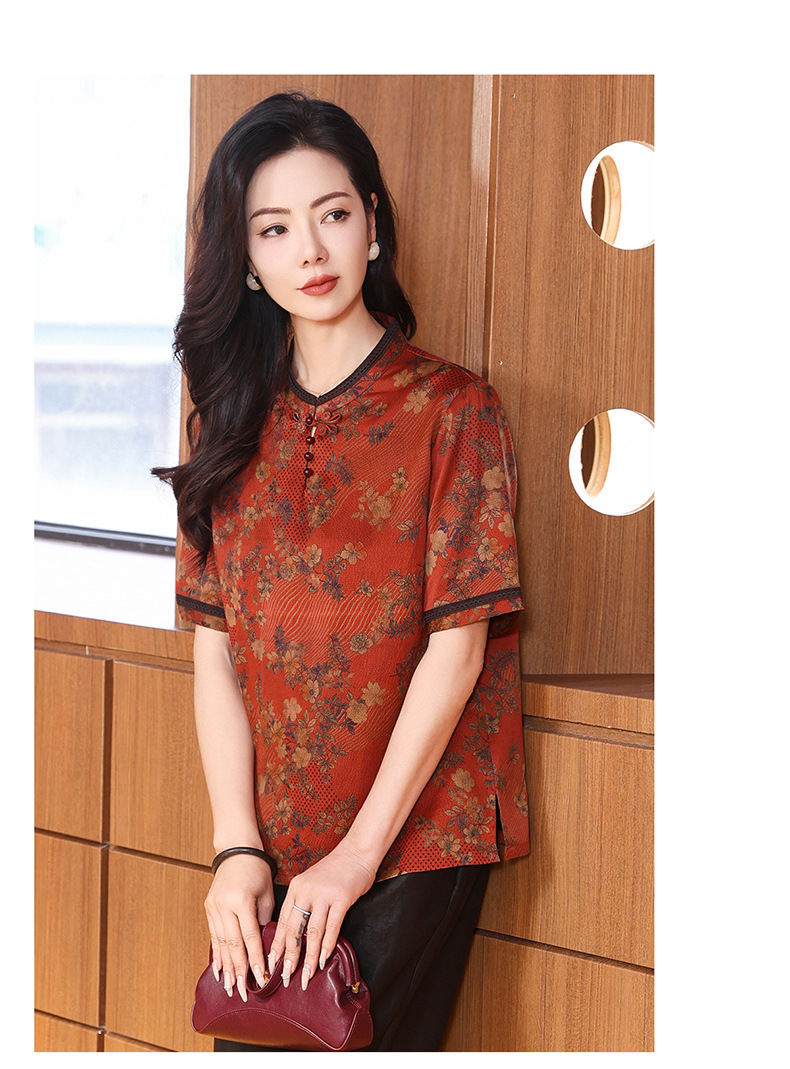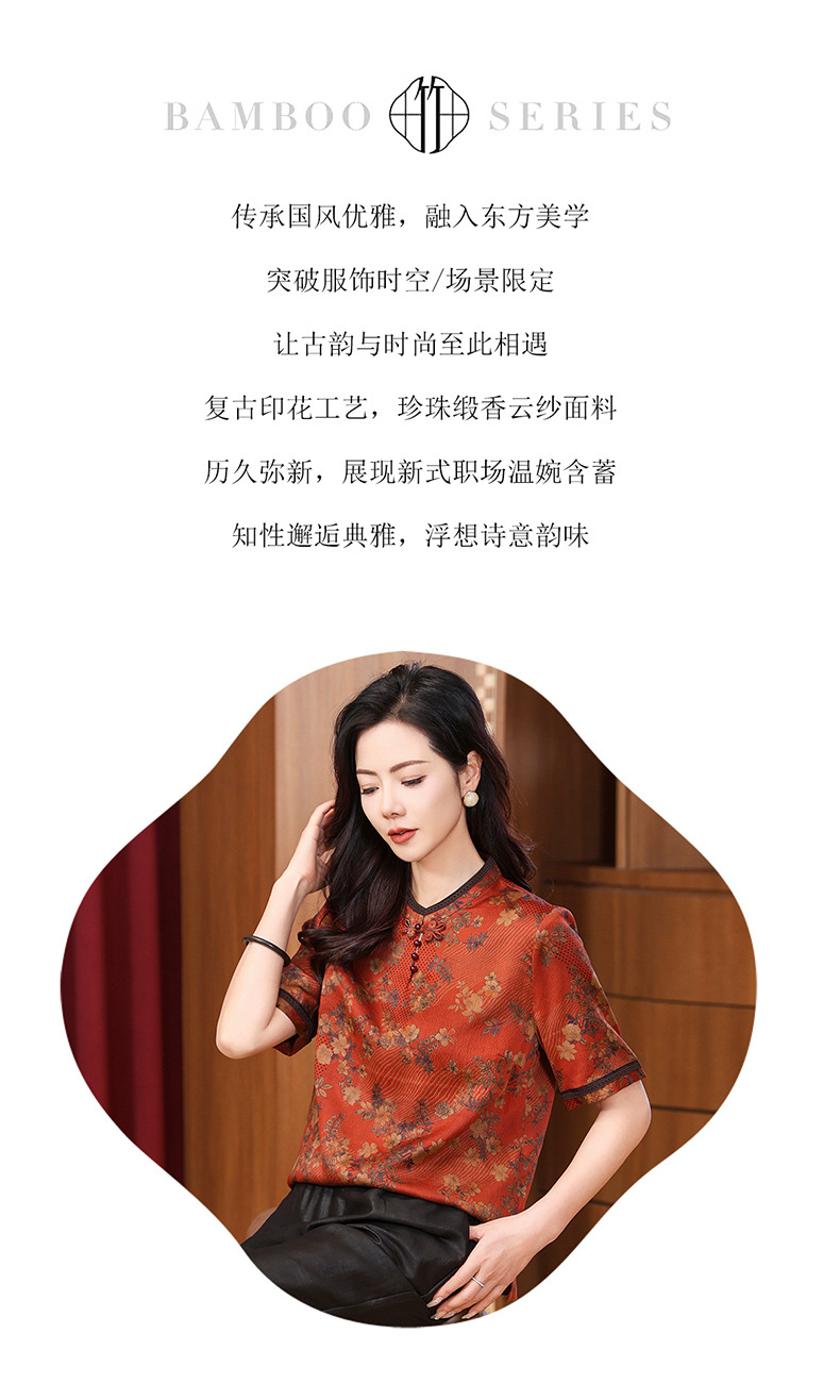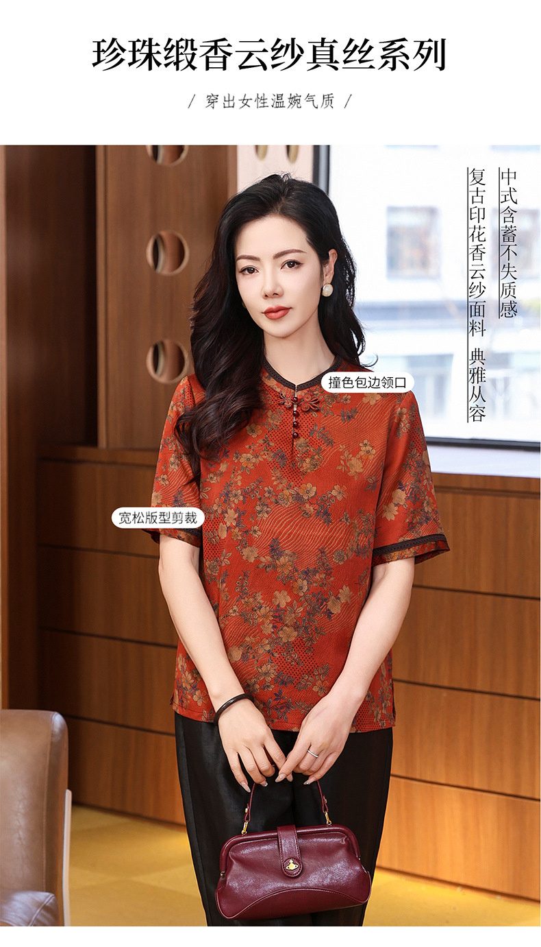 KQ-221807珍珠缎香云纱上衣女春夏立领新中式洋气质桑蚕丝大码真丝衬衫