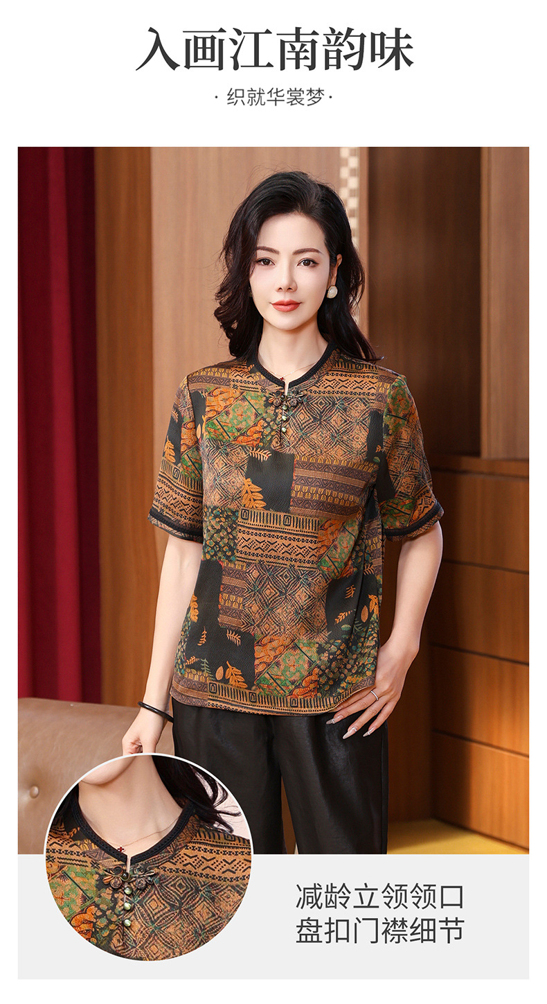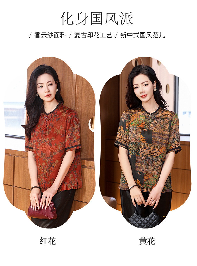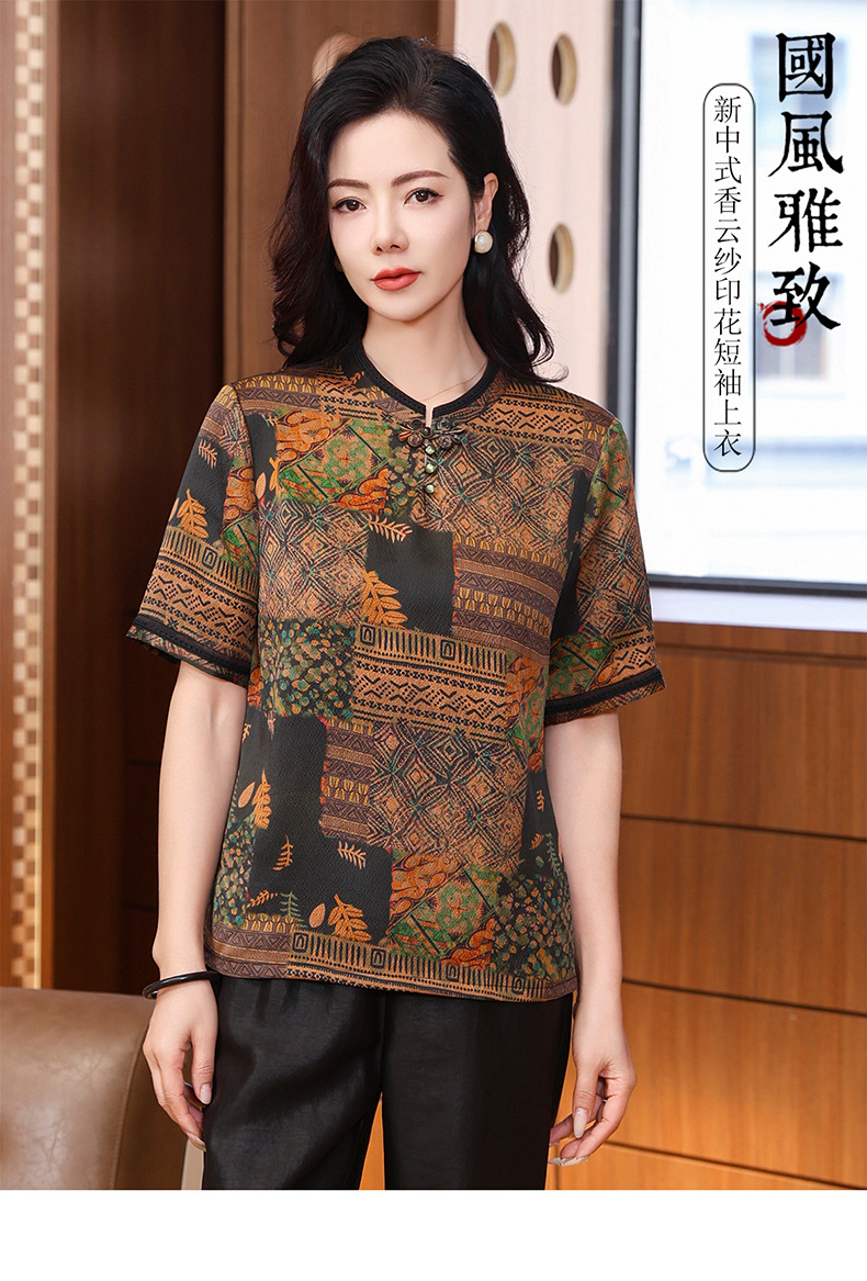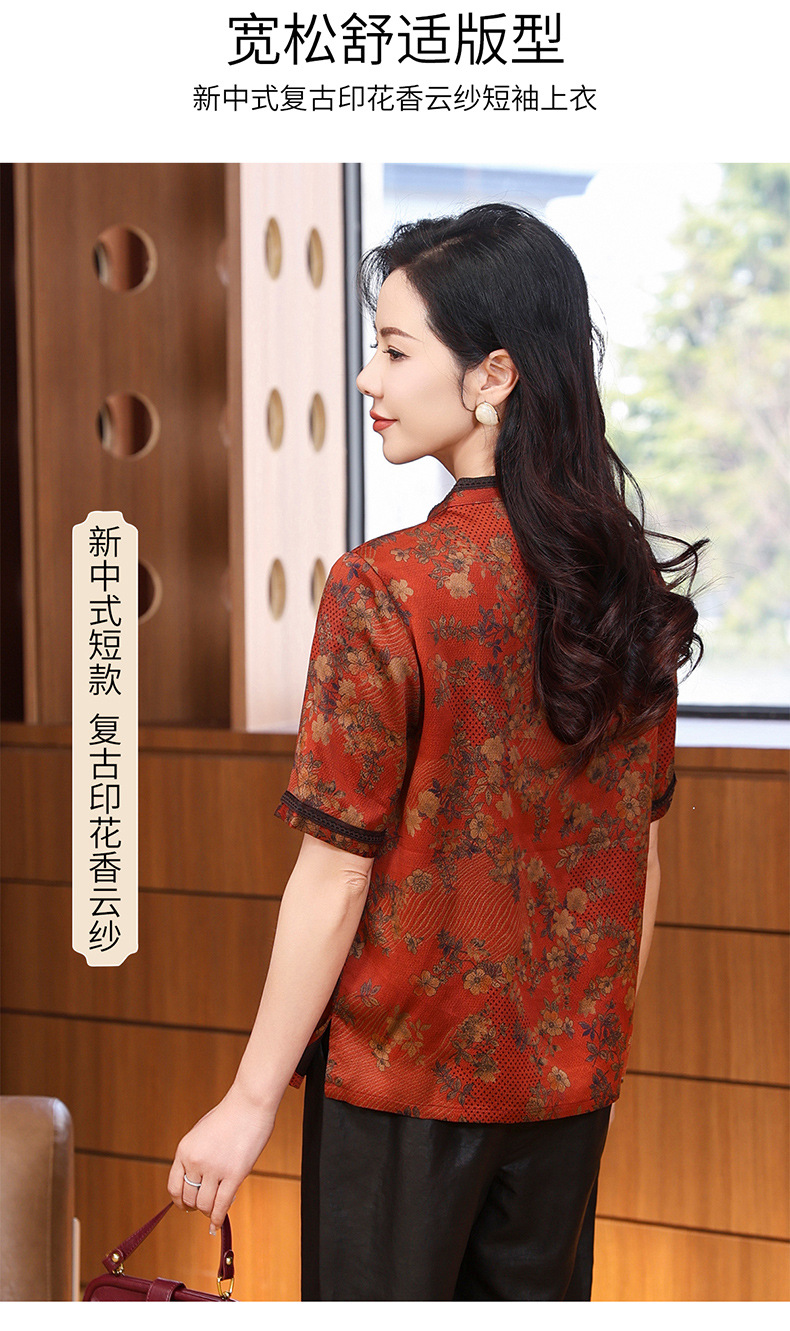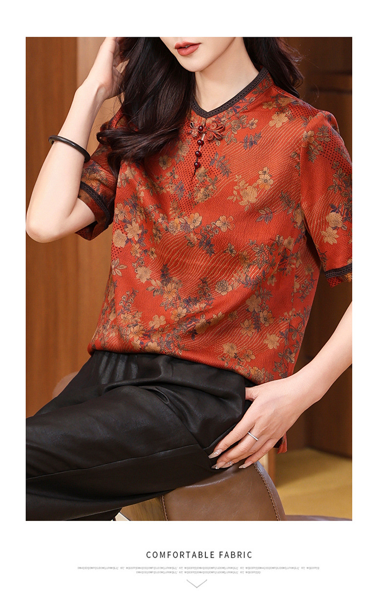 KQ-221807珍珠缎香云纱上衣女春夏立领新中式洋气质桑蚕丝大码真丝衬衫