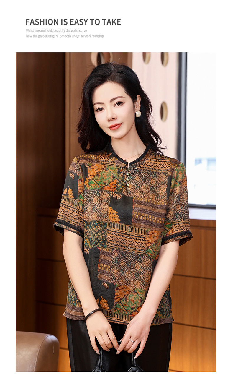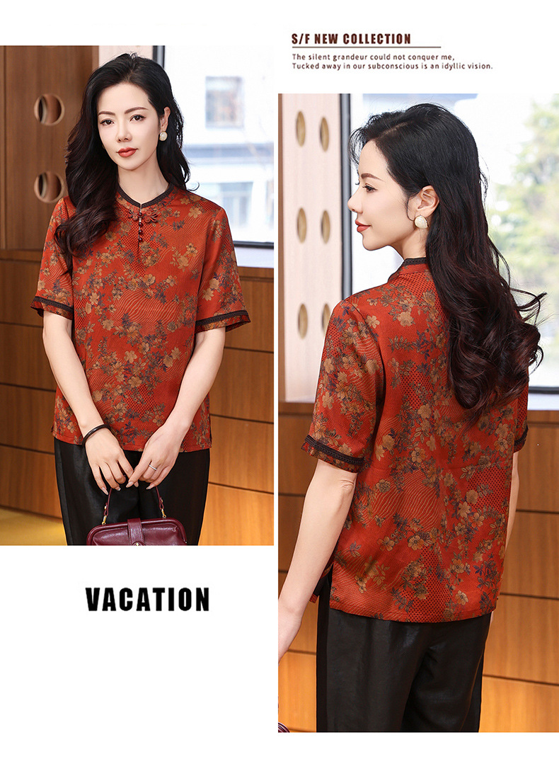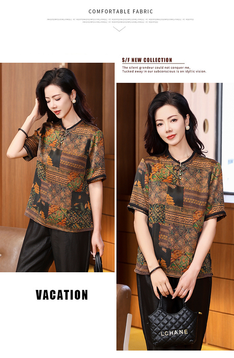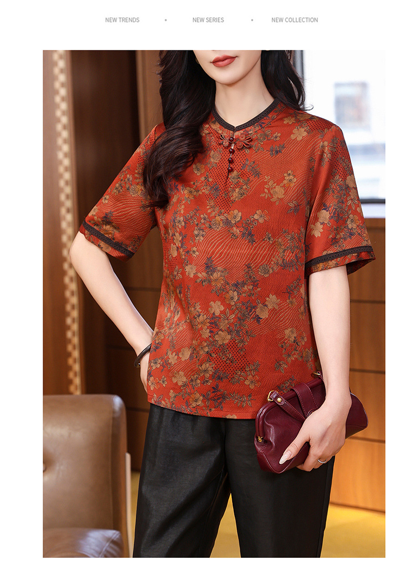 KQ-221807珍珠缎香云纱上衣女春夏立领新中式洋气质桑蚕丝大码真丝衬衫