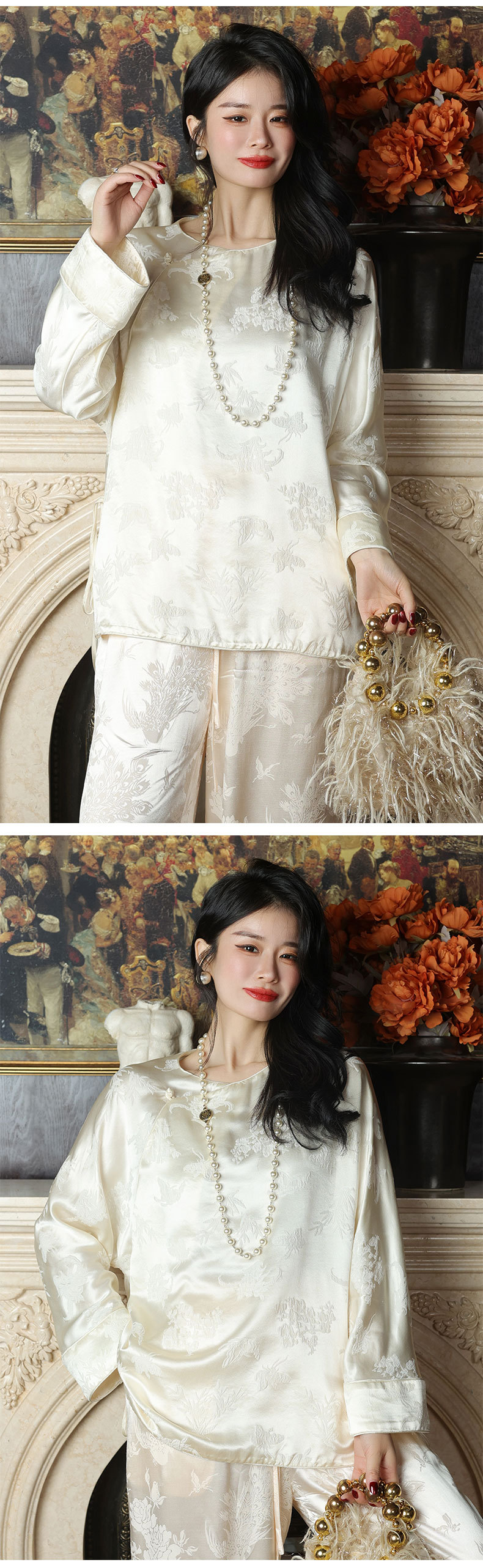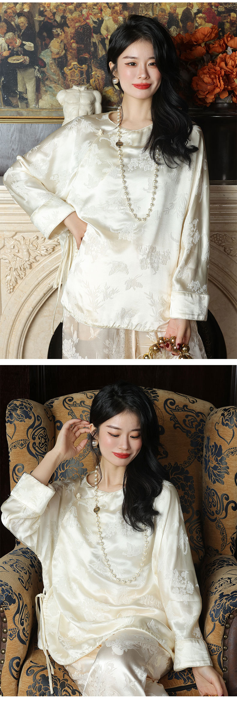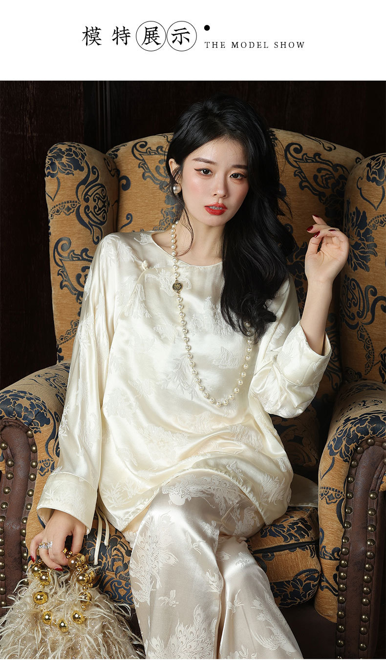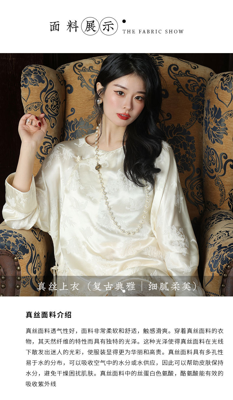 T8066秋新款上衣中式改良斜襟外搭真丝冠乐绉提花衬衫桑蚕丝女装