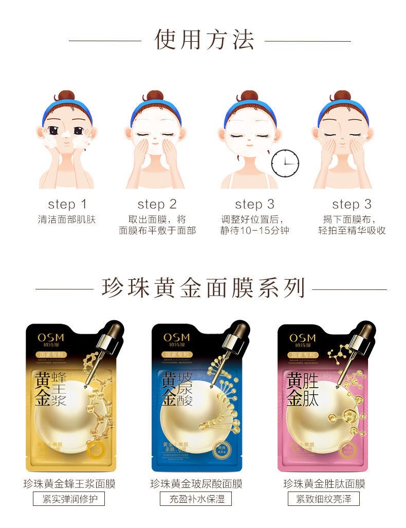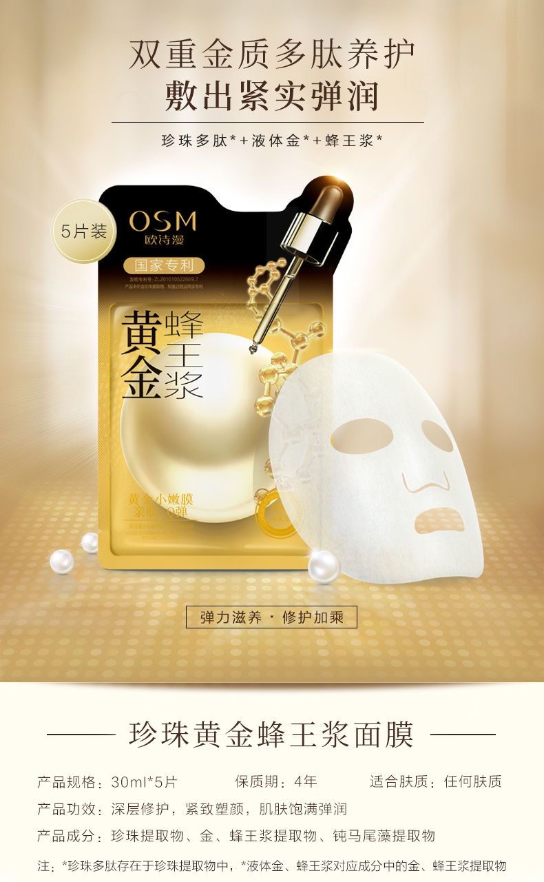 【100元3盒】欧诗漫黄金蜂王浆面膜(5片/盒)健康弹润 黄金修护管理 商品图0