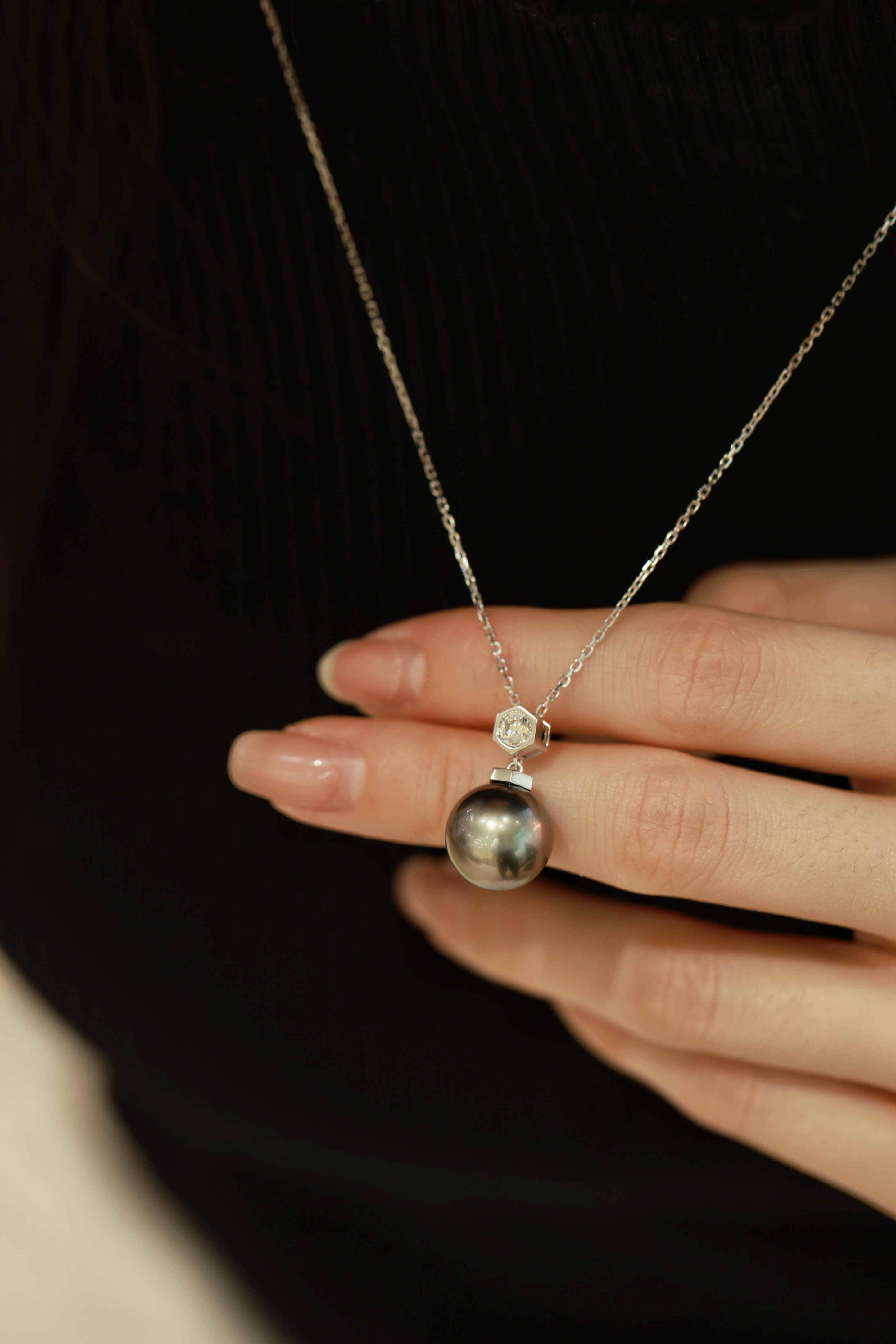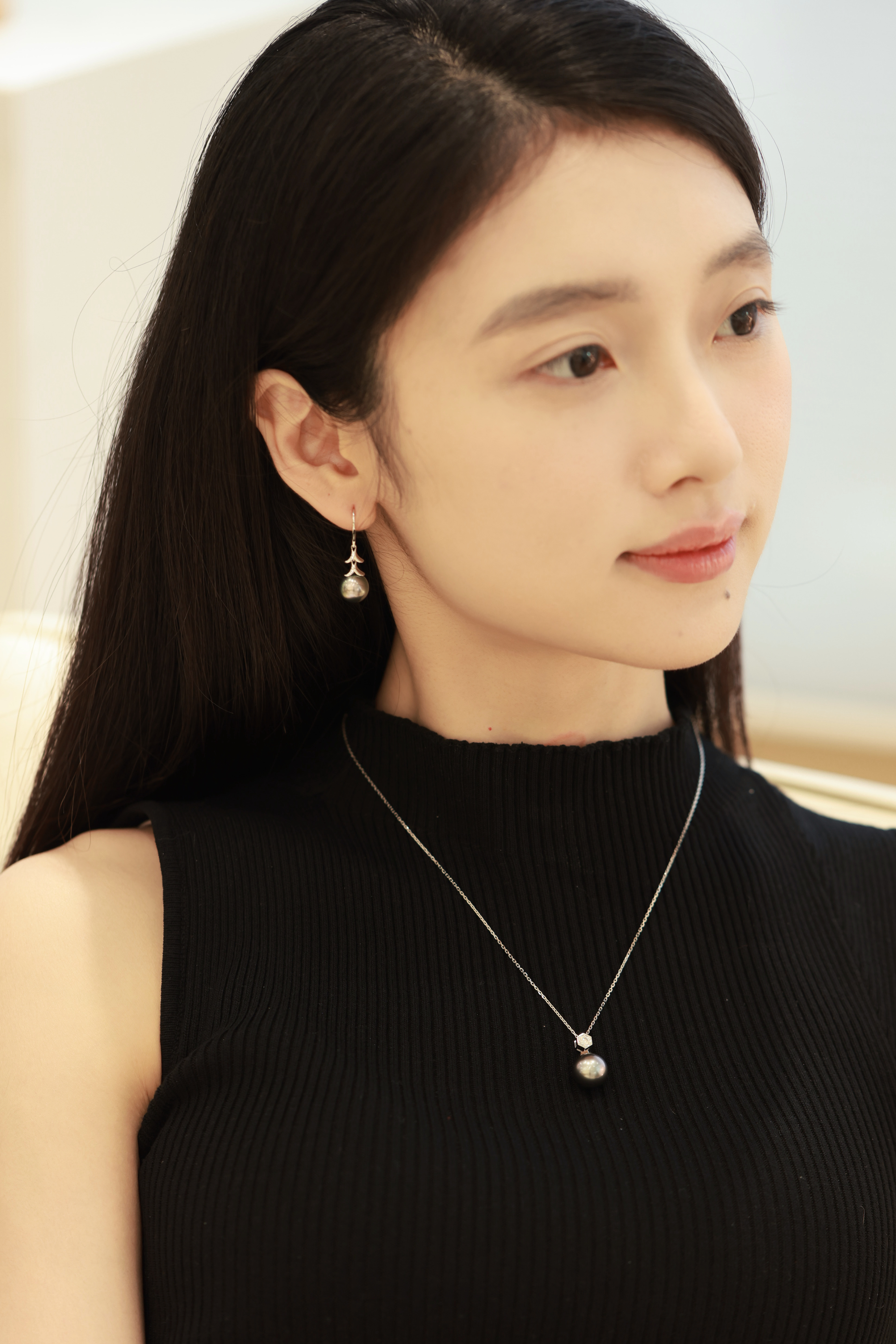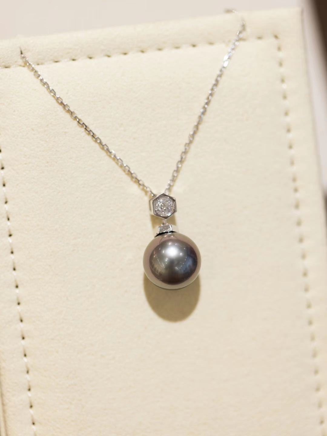 材质:大溪地黑珍珠(11-12mm),钻石,18K金