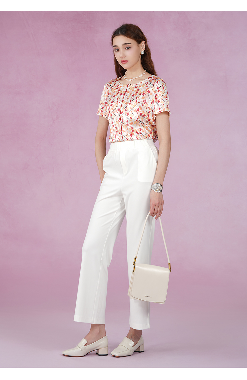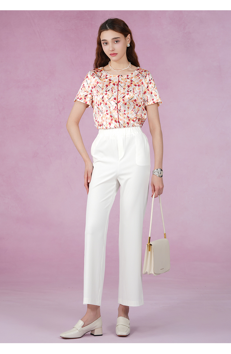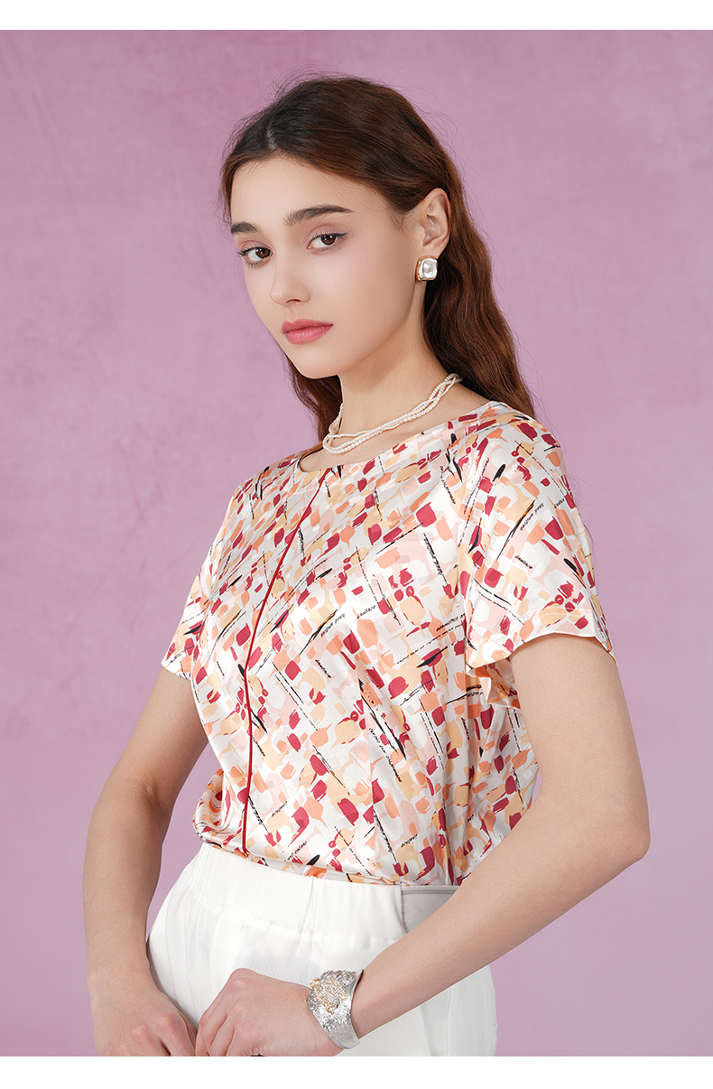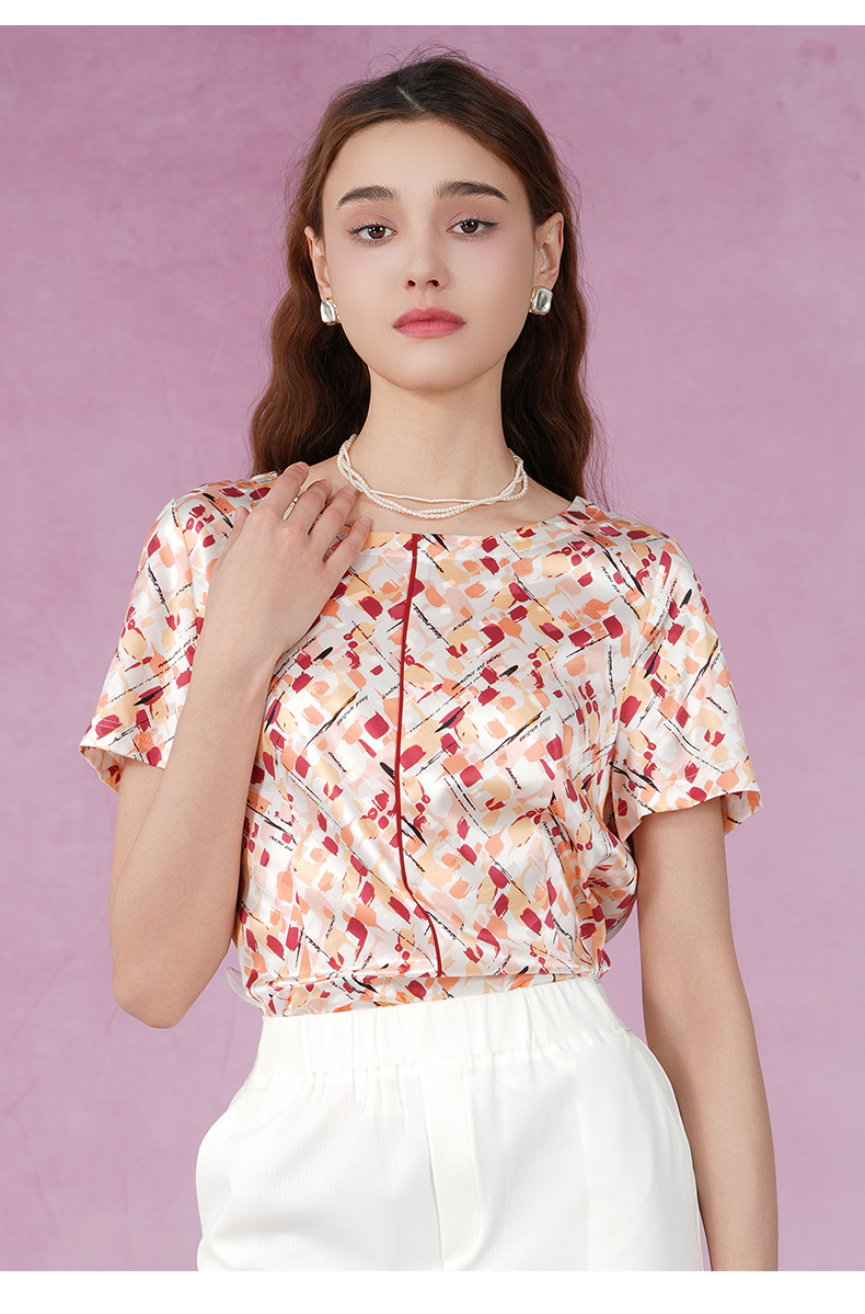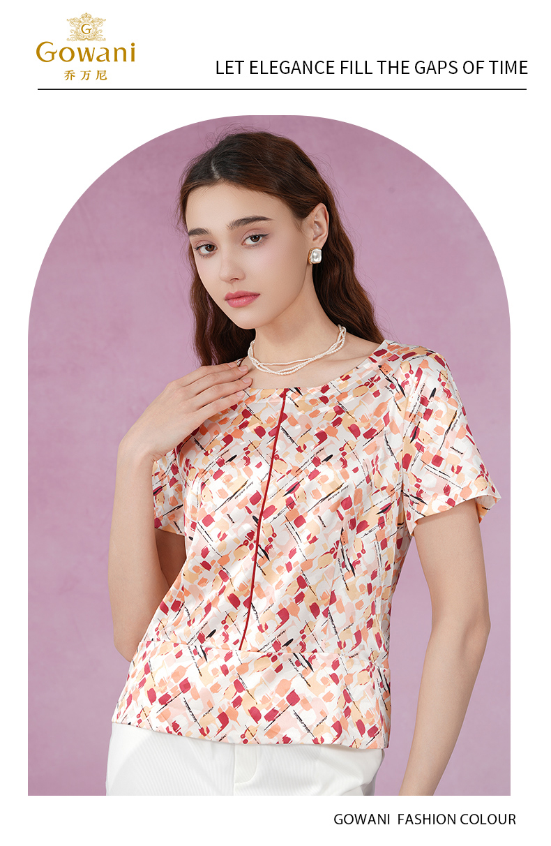 乔万尼春夏时尚减龄19mm真丝几何印花单上衣小衫ES2C151