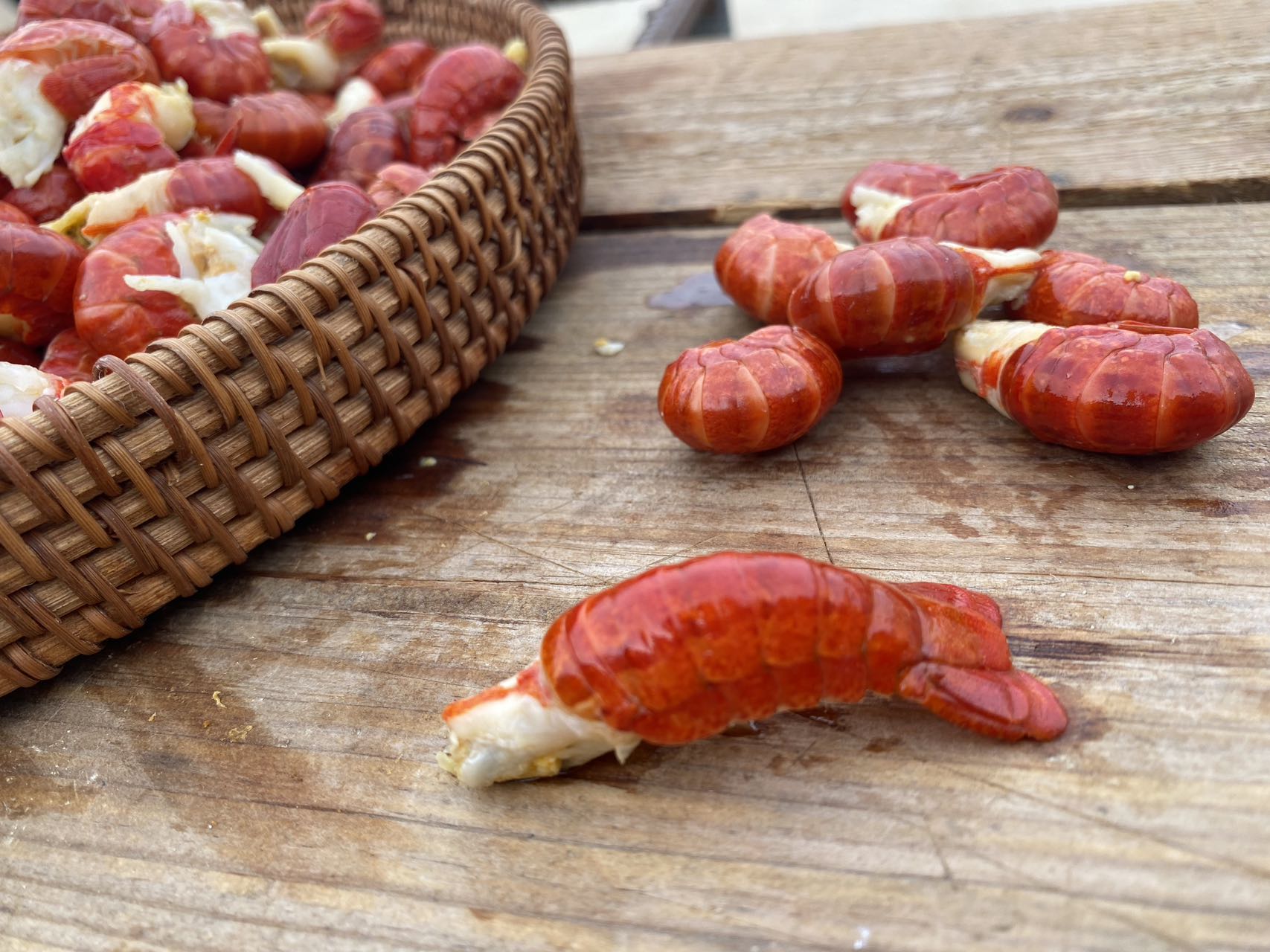 头肉细嫩,白净;虾尾颜色鲜丽自然!