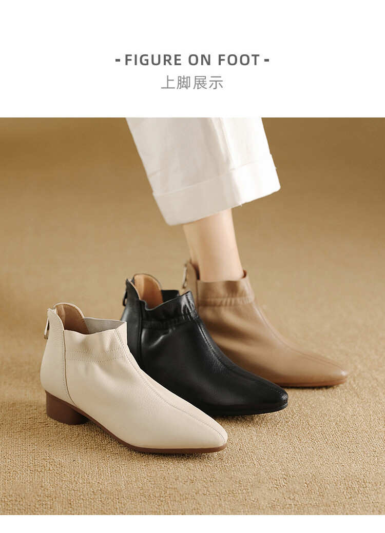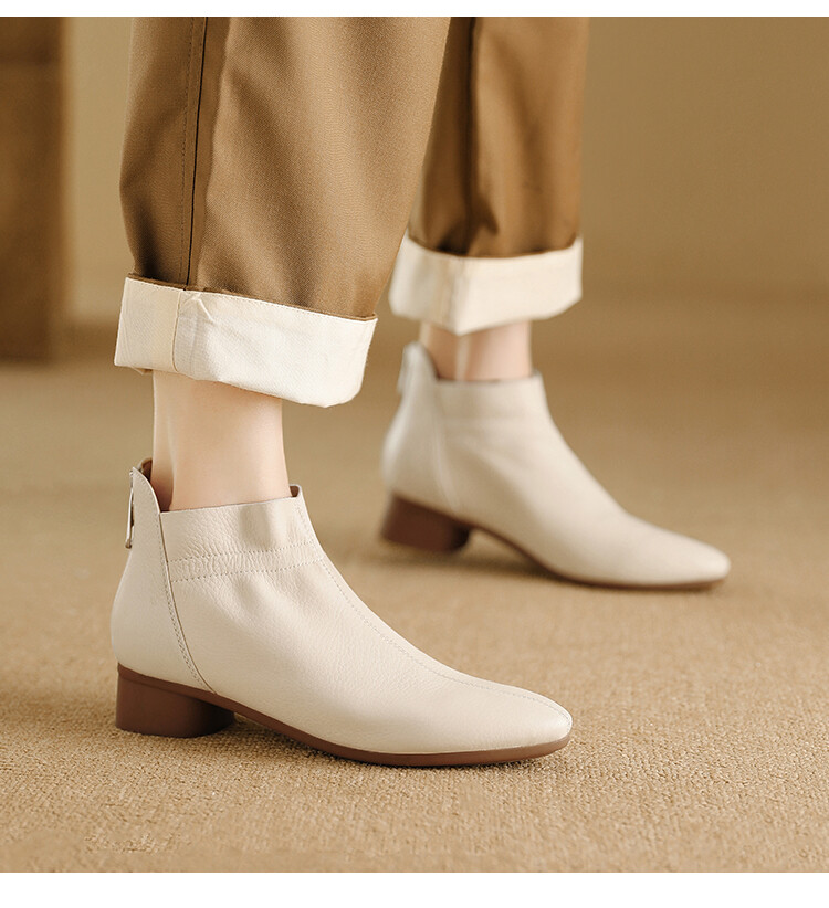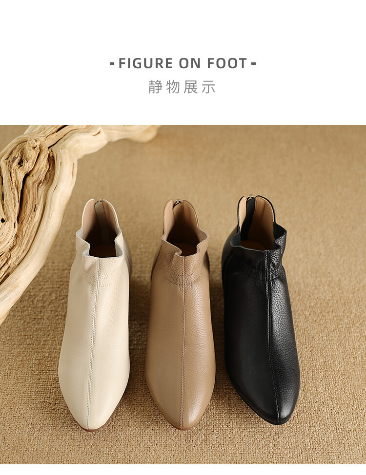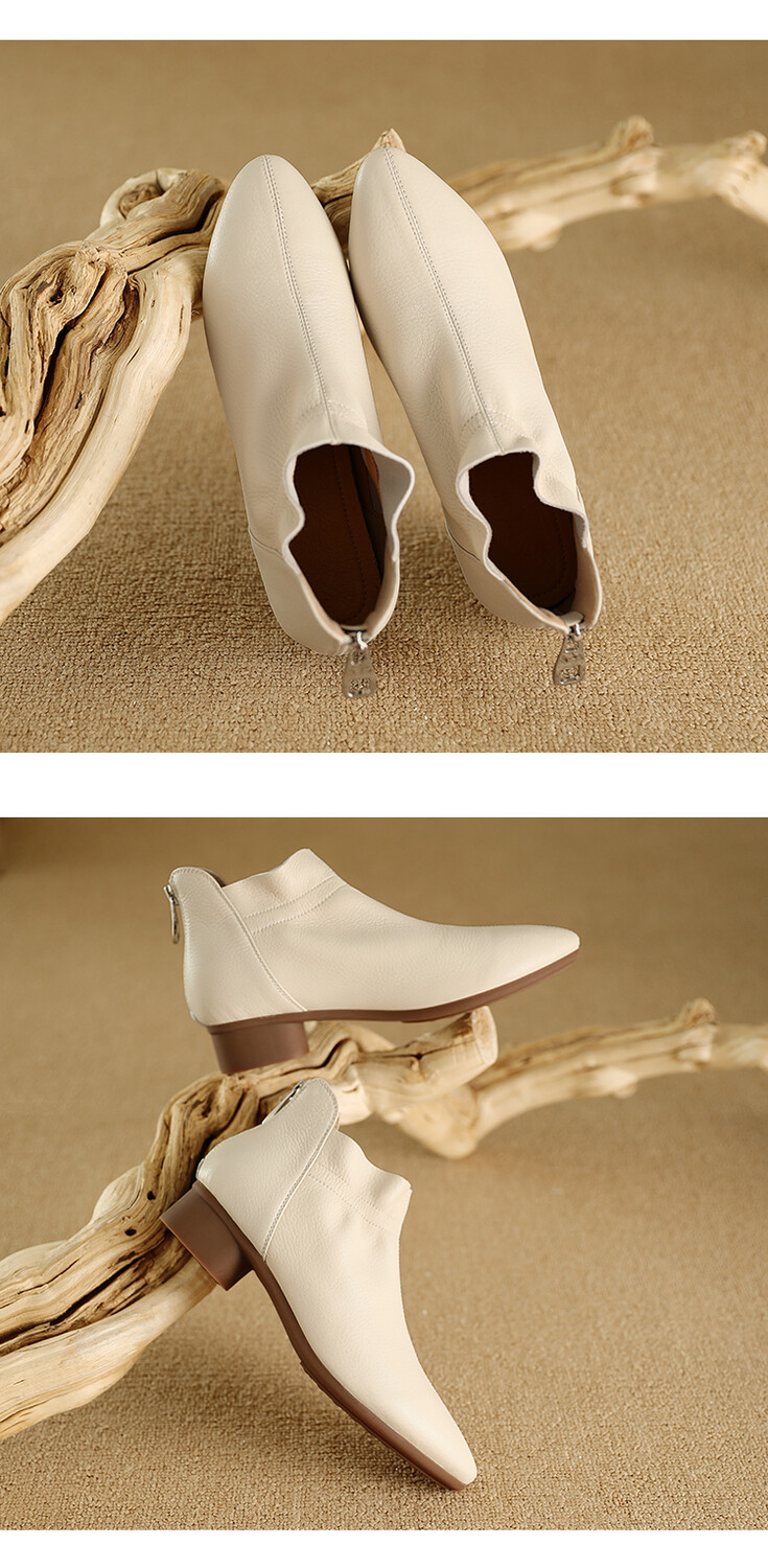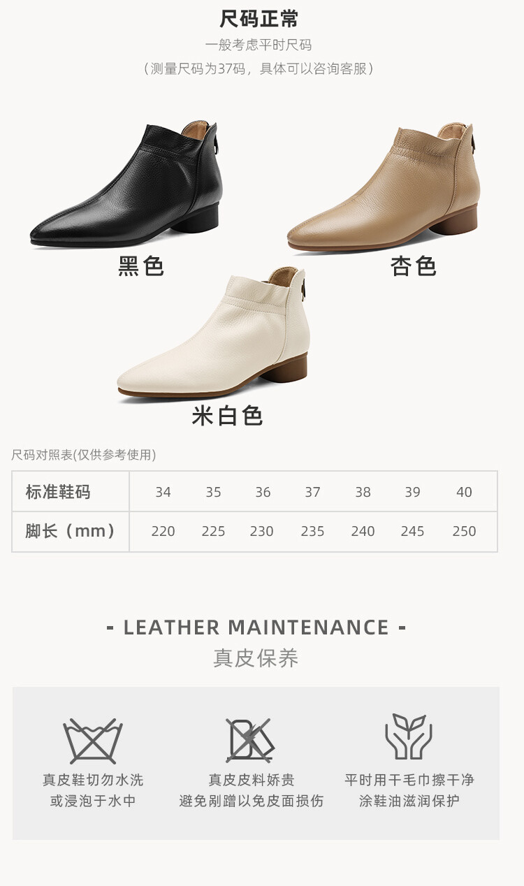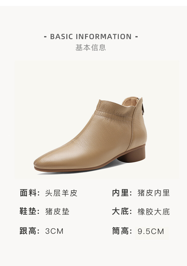 【预售5天】头层羊皮 3cm米白色短靴尖头切尔西靴子低跟真皮女靴LG&505-831