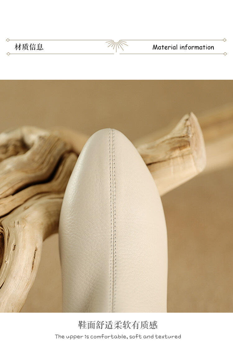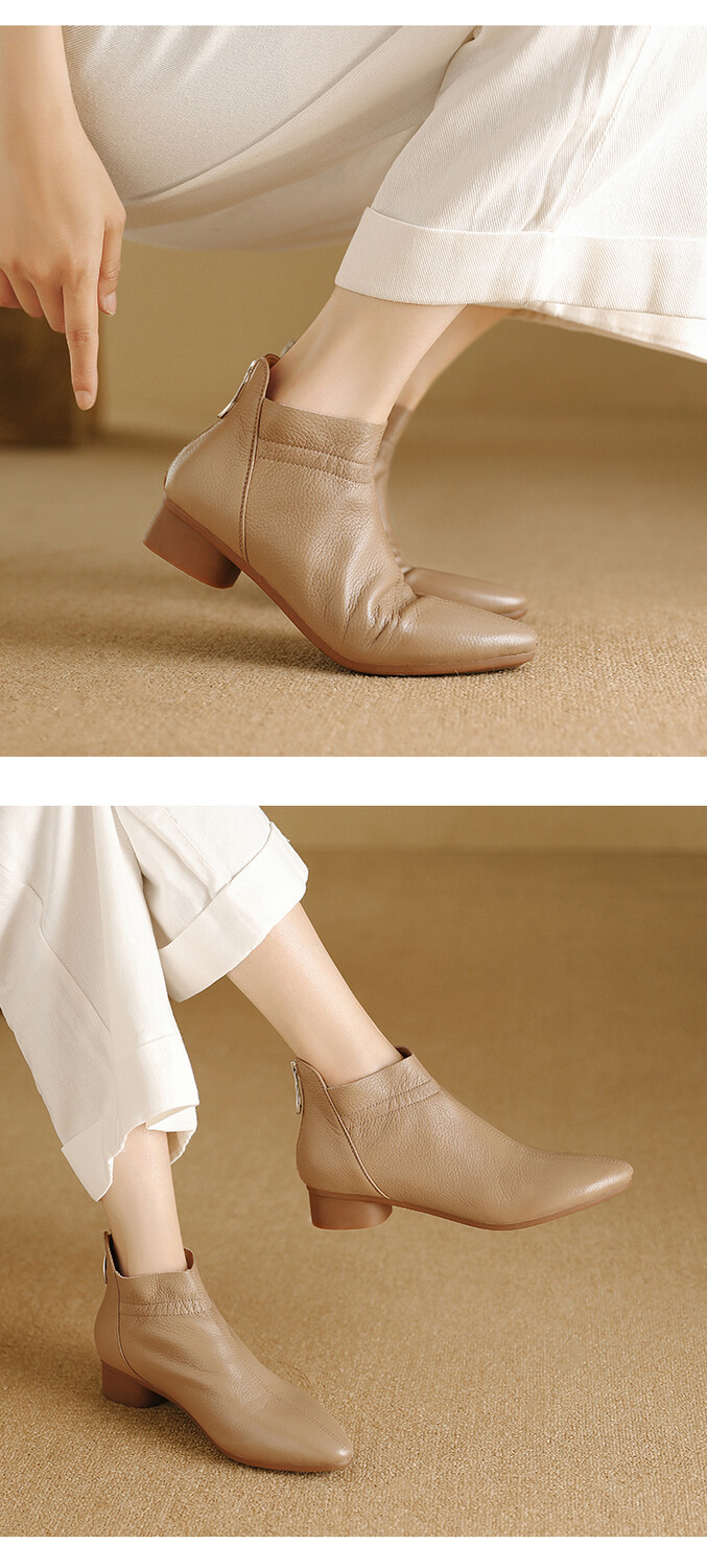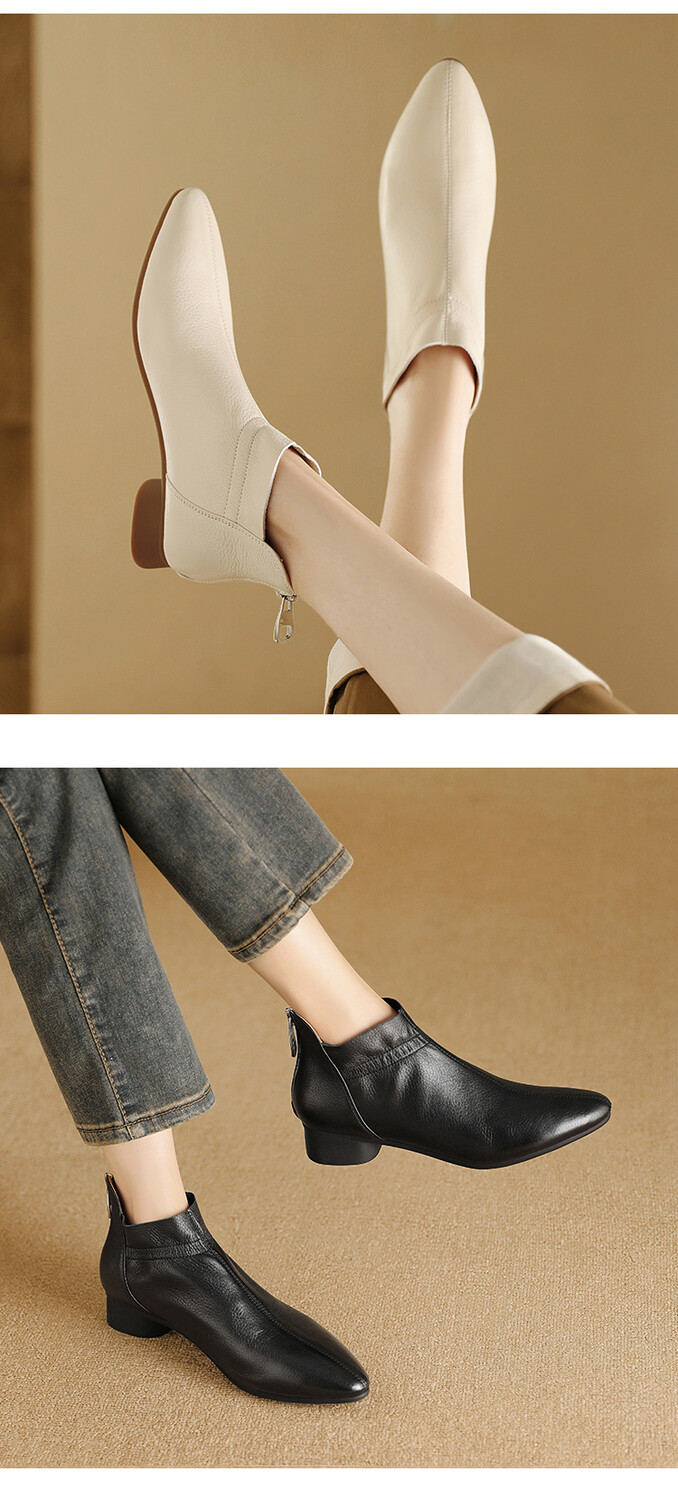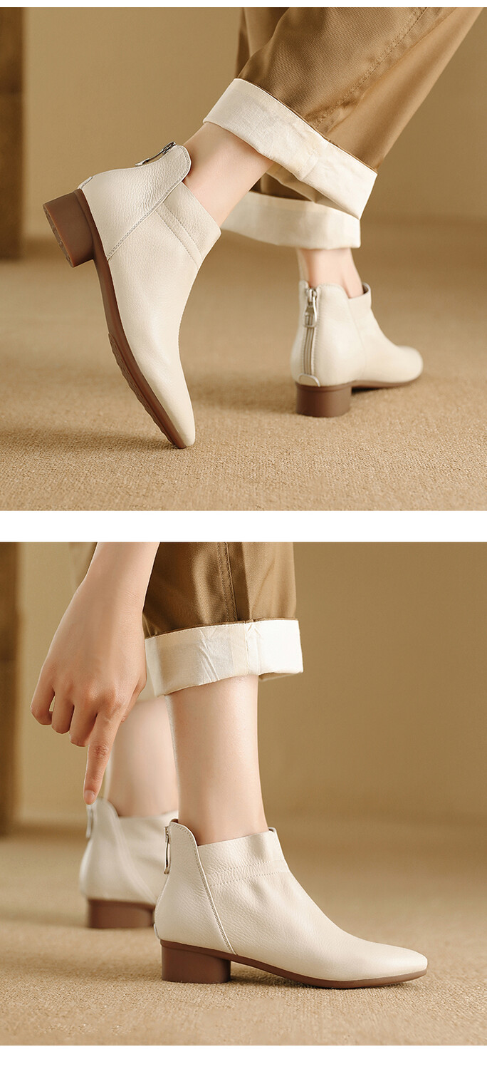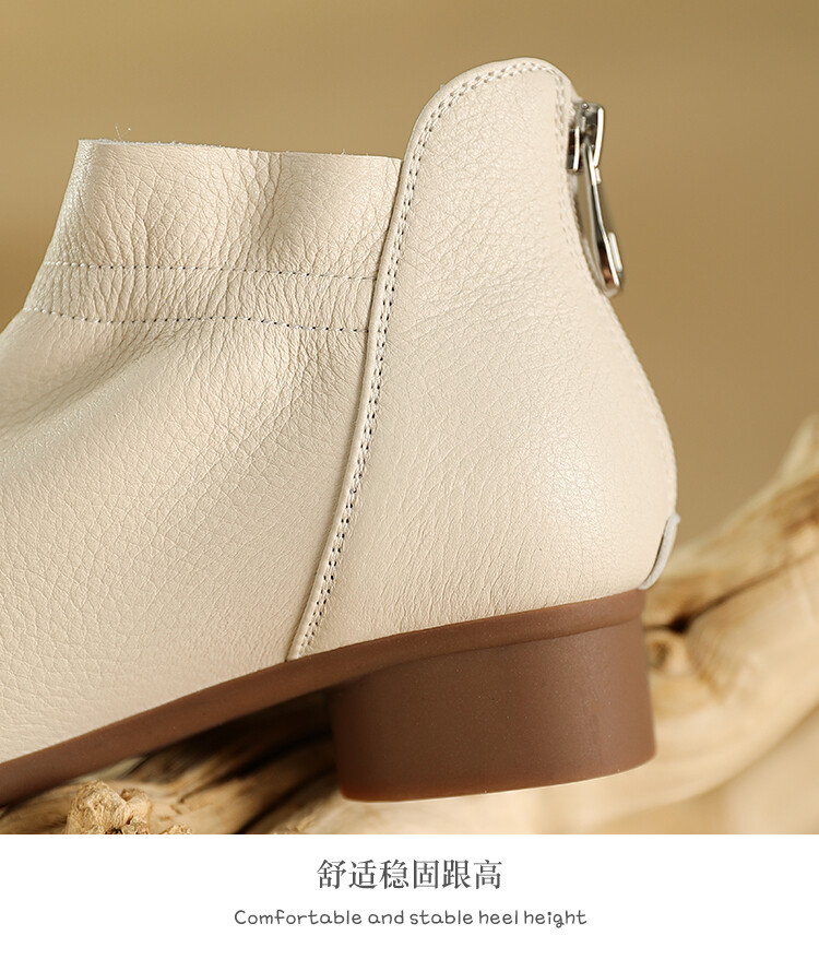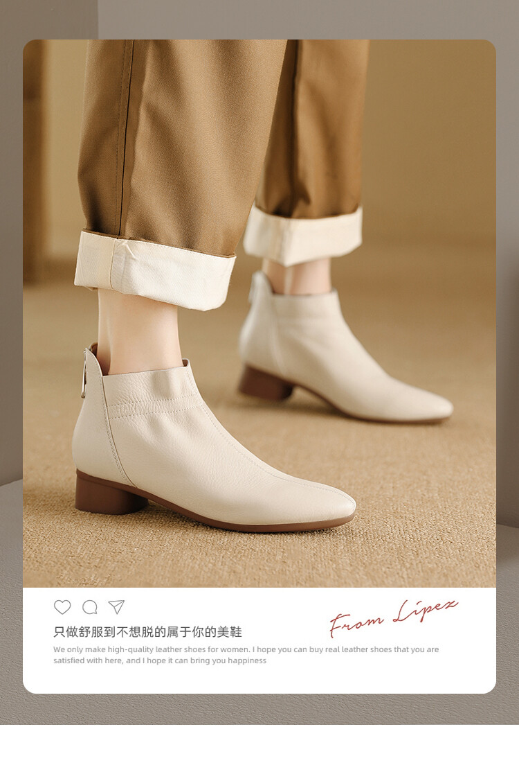 【预售5天】头层羊皮 3cm米白色短靴尖头切尔西靴子低跟真皮女靴LG&505-831