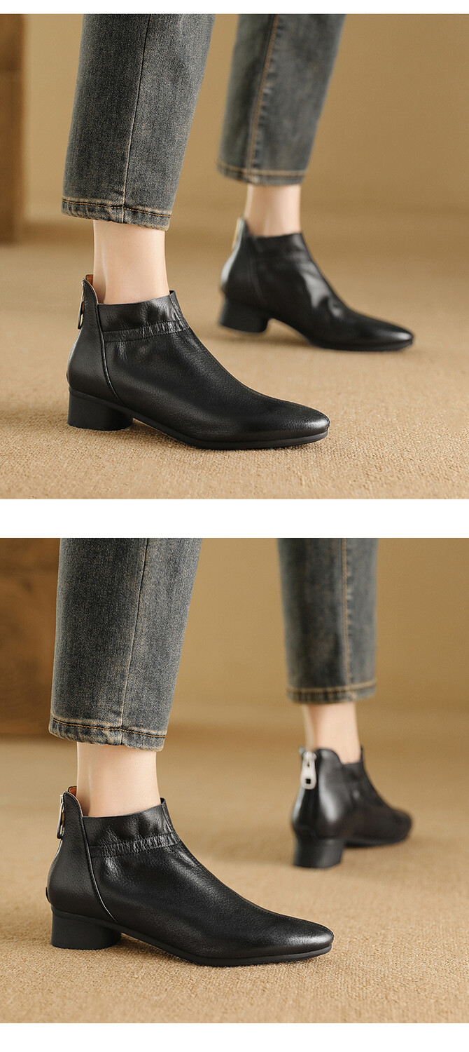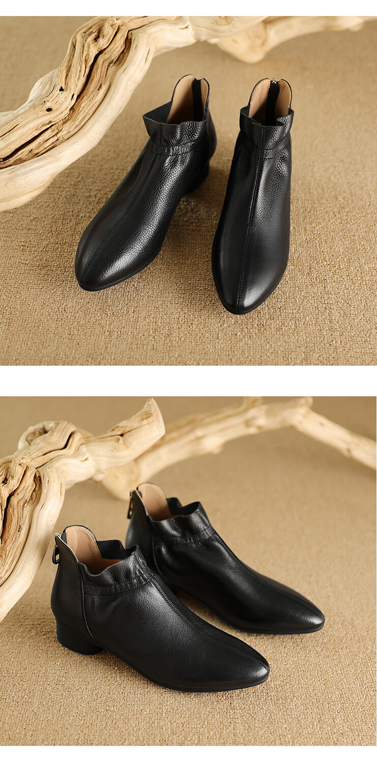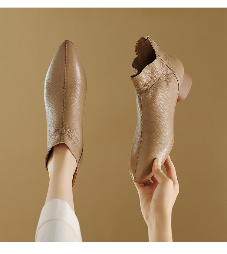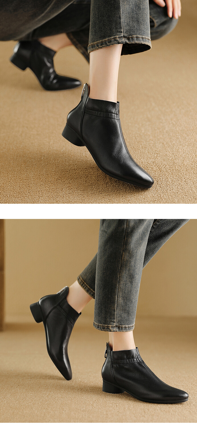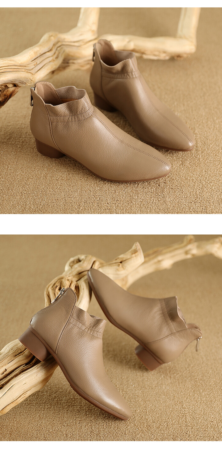 【预售5天】头层羊皮 3cm米白色短靴尖头切尔西靴子低跟真皮女靴LG&505-831