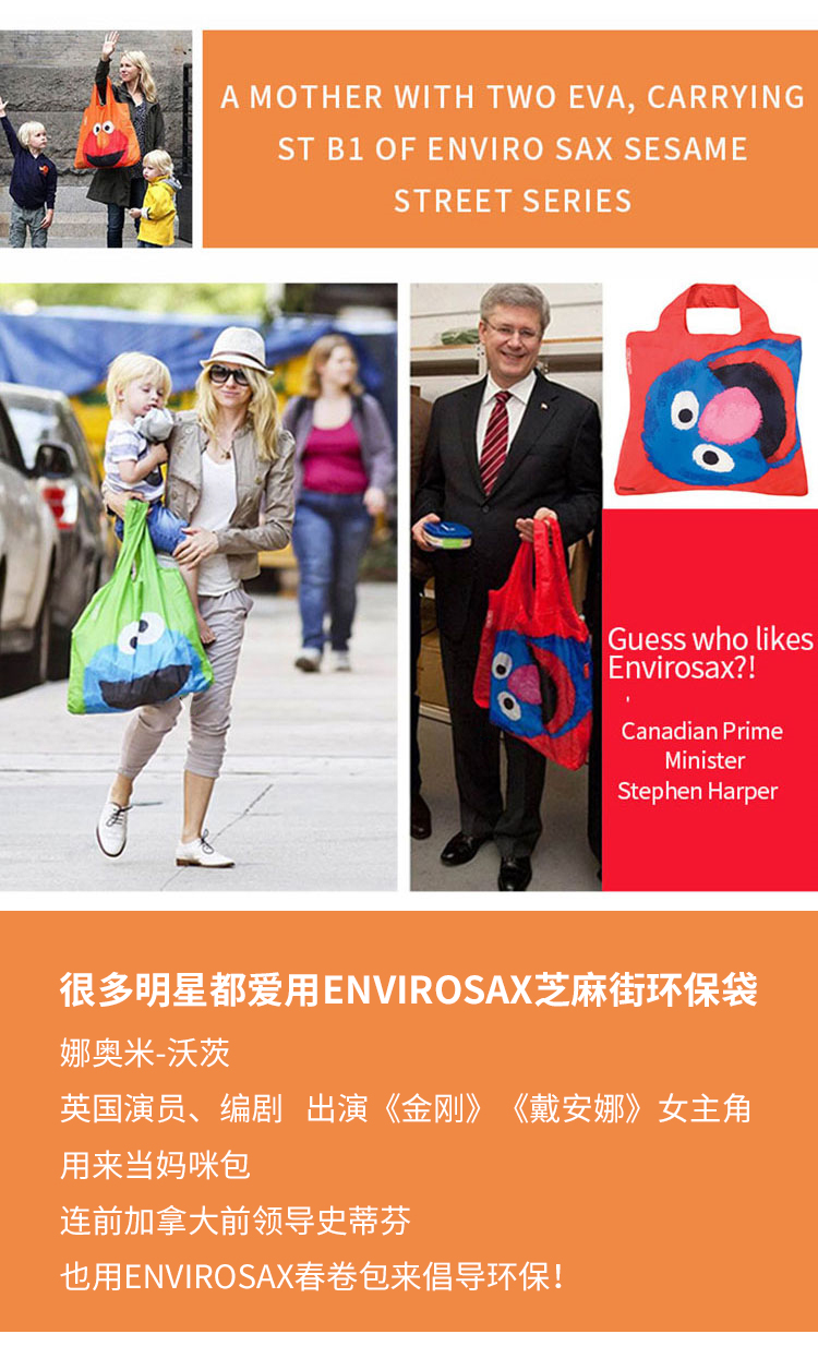 澳洲Envirosax 包袋芝麻街系列春卷包可折叠环保袋大号 ST.B1/ST.B2/ST.B3