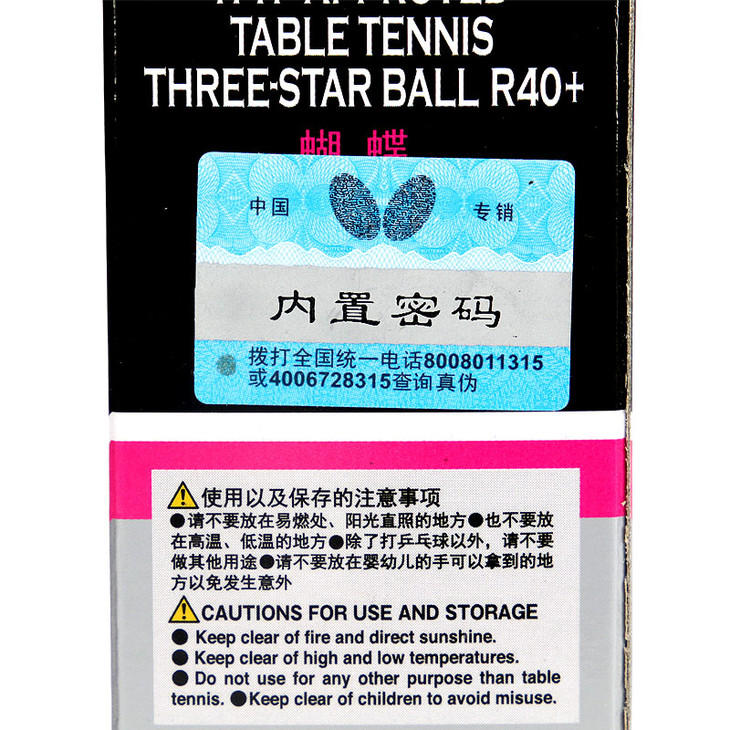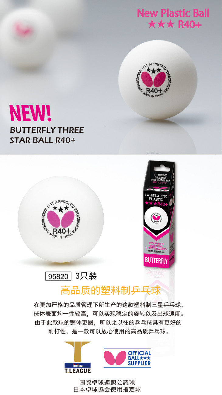 商品名称:蝴蝶Butterfly 95820 新材料R40+有缝三星球 三粒装