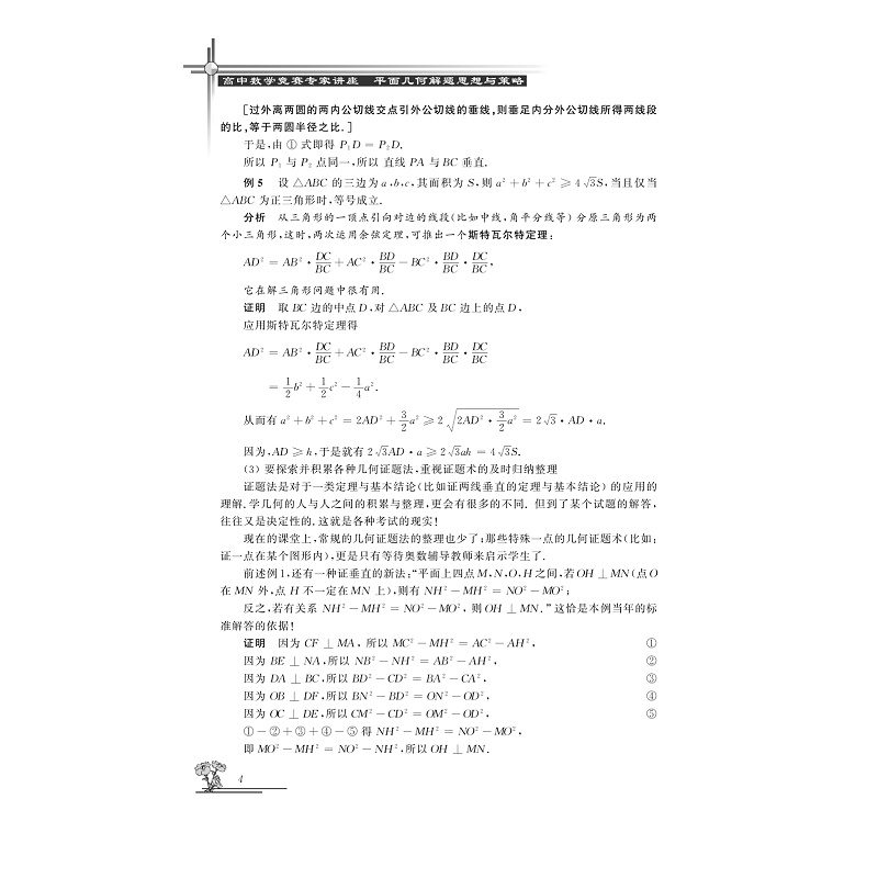 书名:高中数学竞赛专家讲座 平面几何解题思想与方法