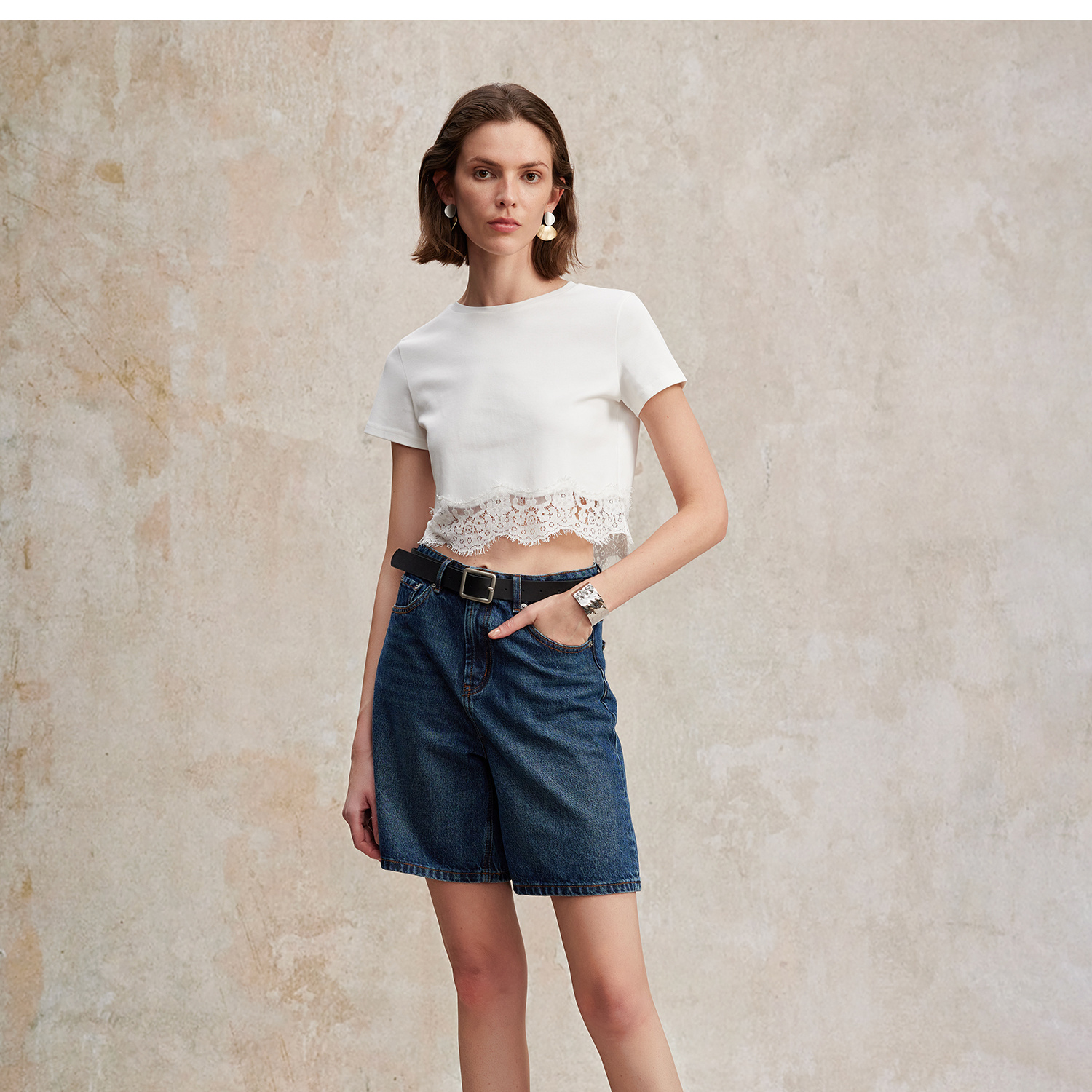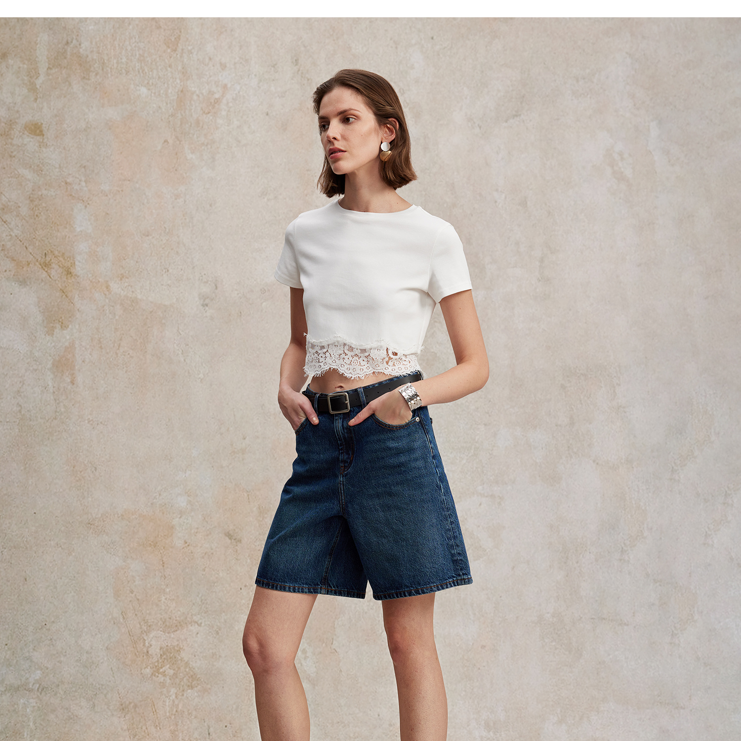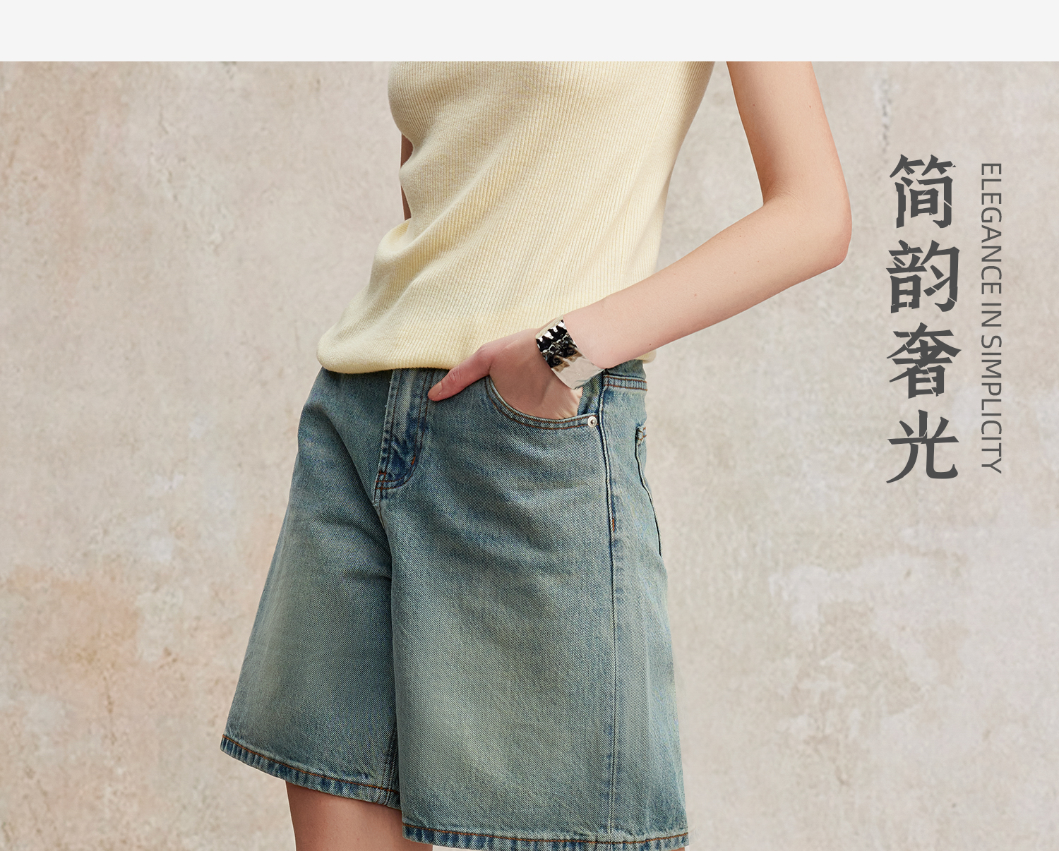 美式复古百搭阔腿牛仔短裤2025夏新KZ2502097
