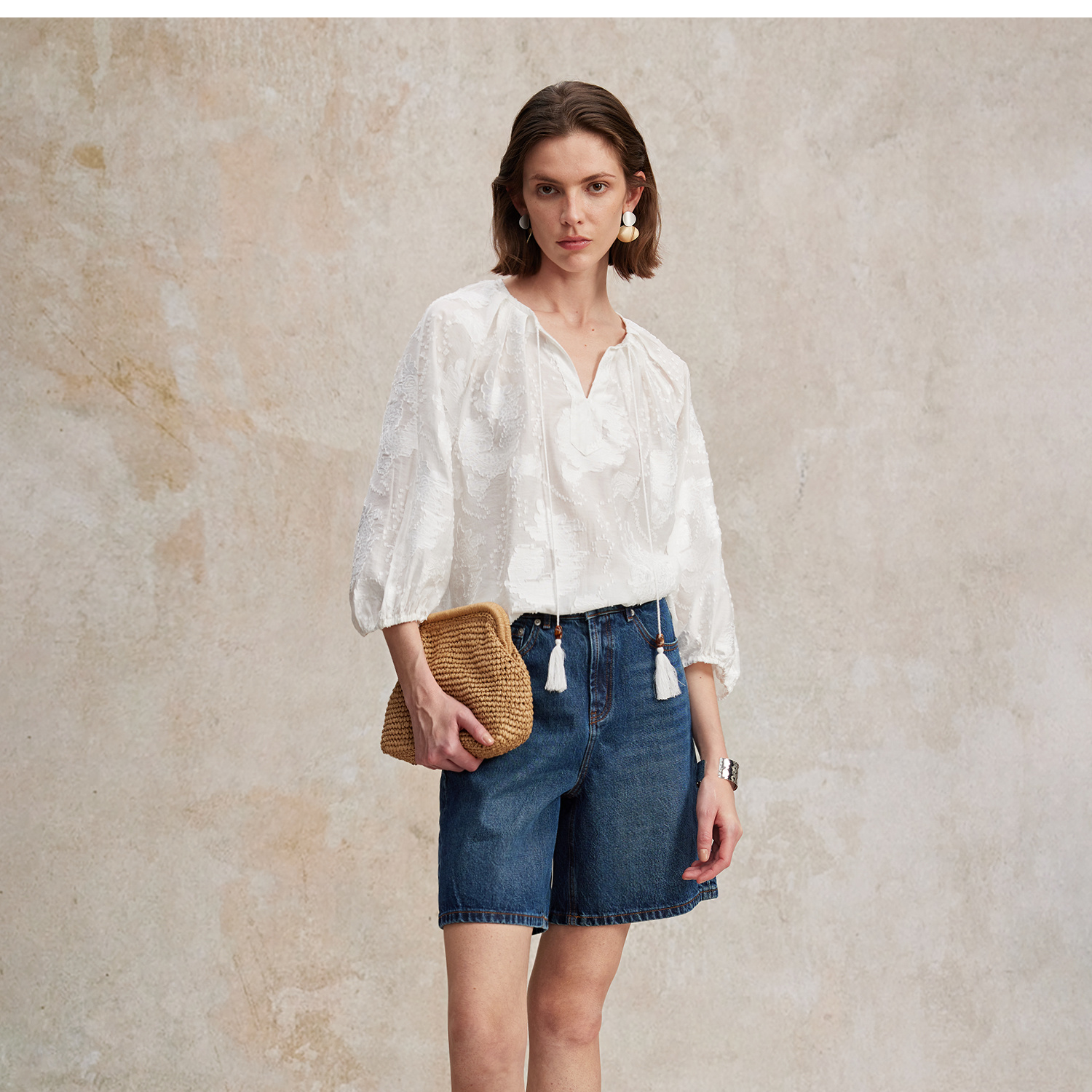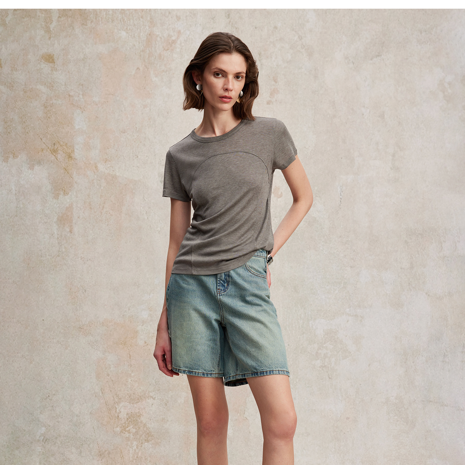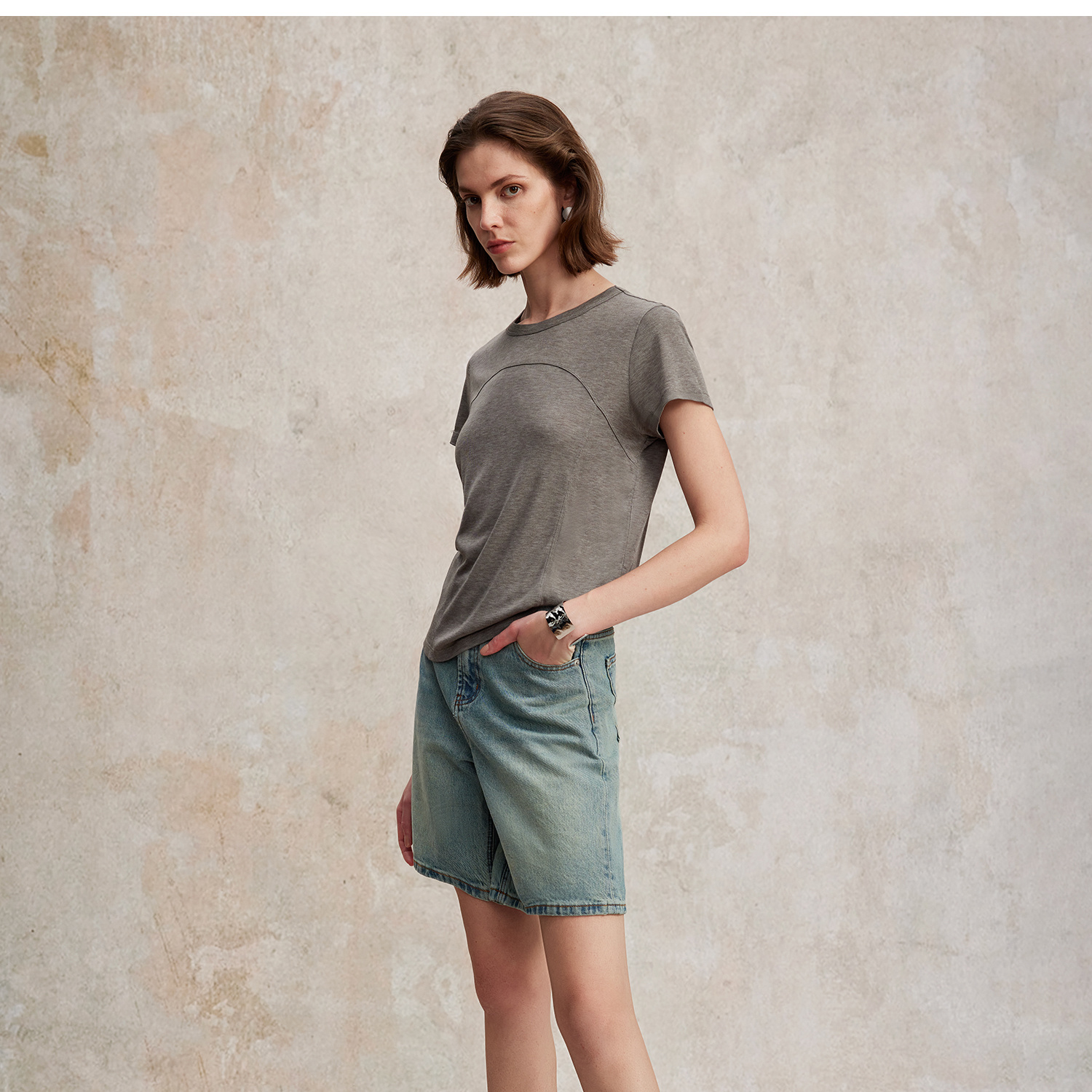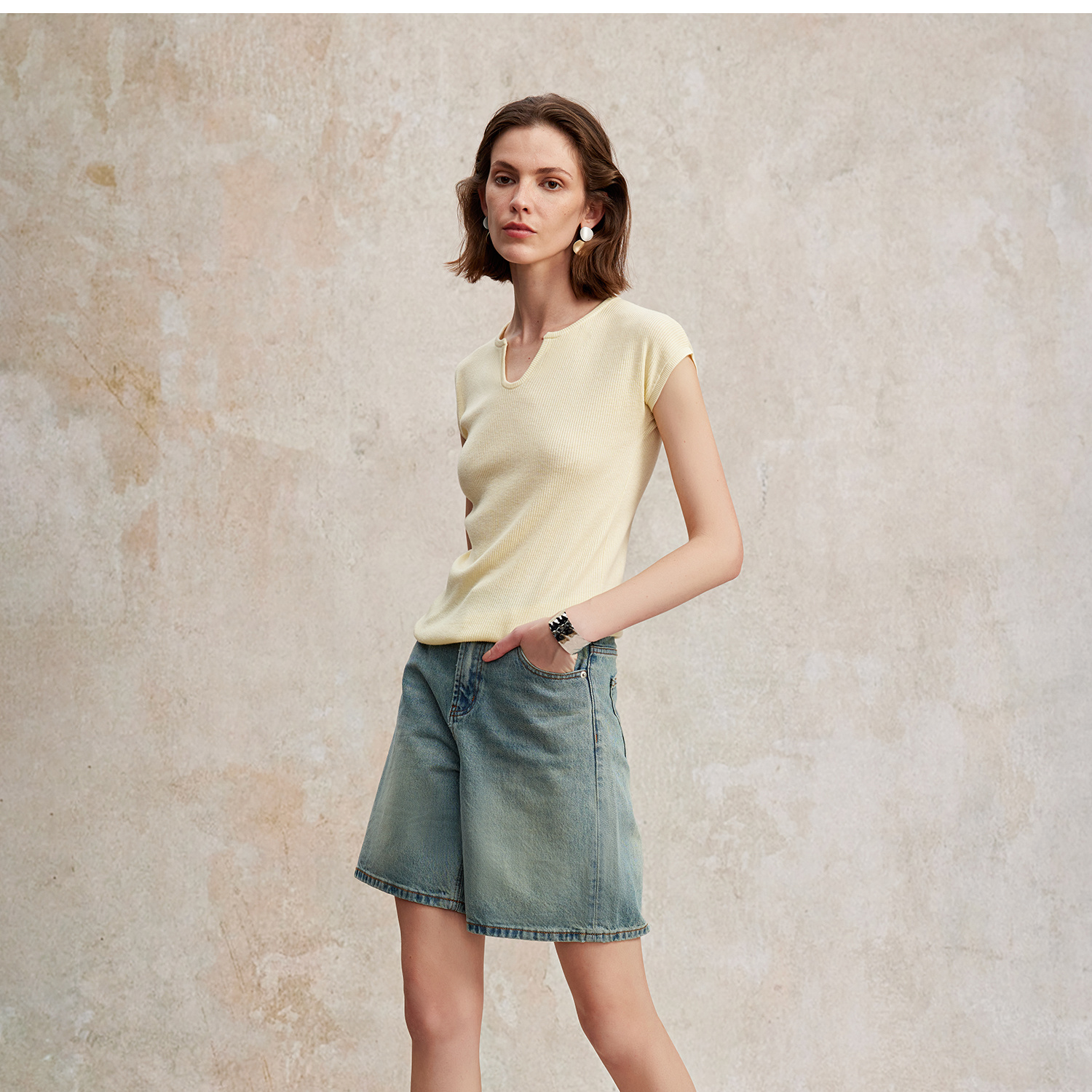 美式复古百搭阔腿牛仔短裤2025夏新KZ2502097