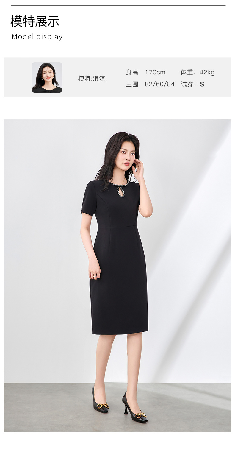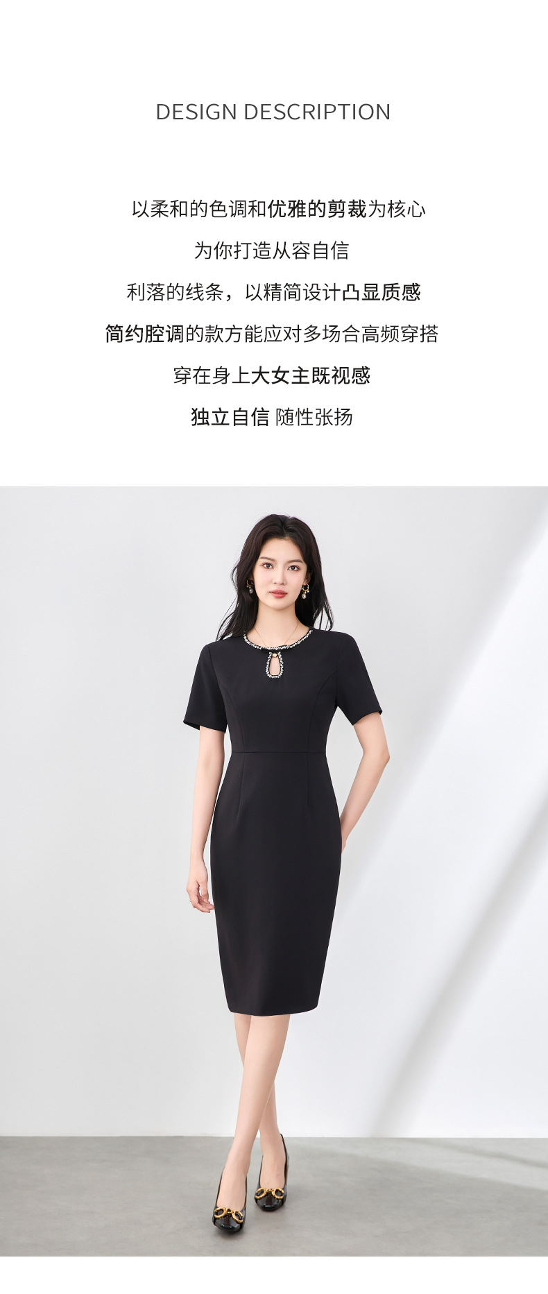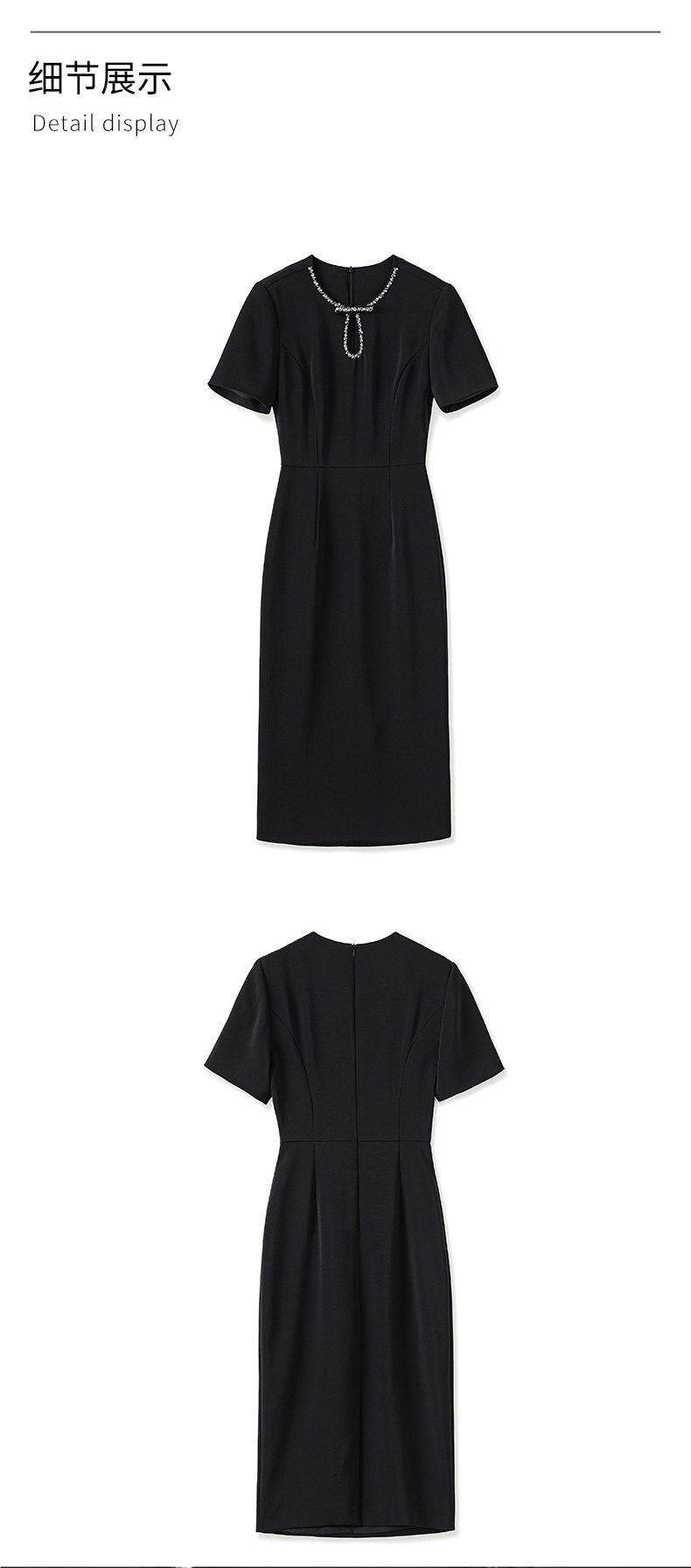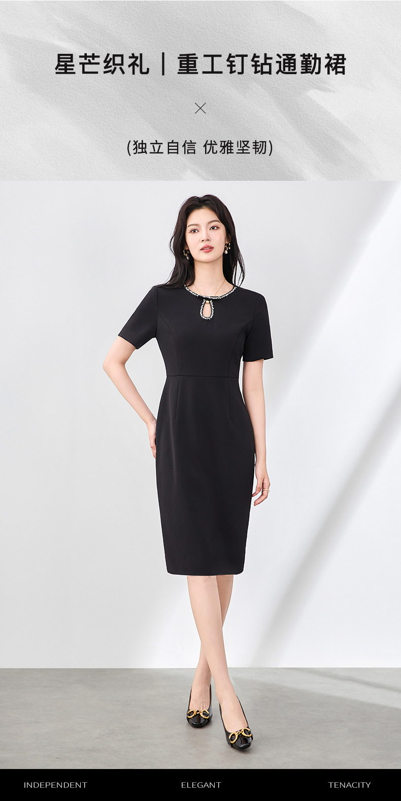 「高货wl」全新升级【铂金会员330/天猫439/差价109】(50117)洛诗琳重工手工钉钻气质连衣裙2025夏季通勤收腰显瘦裙子