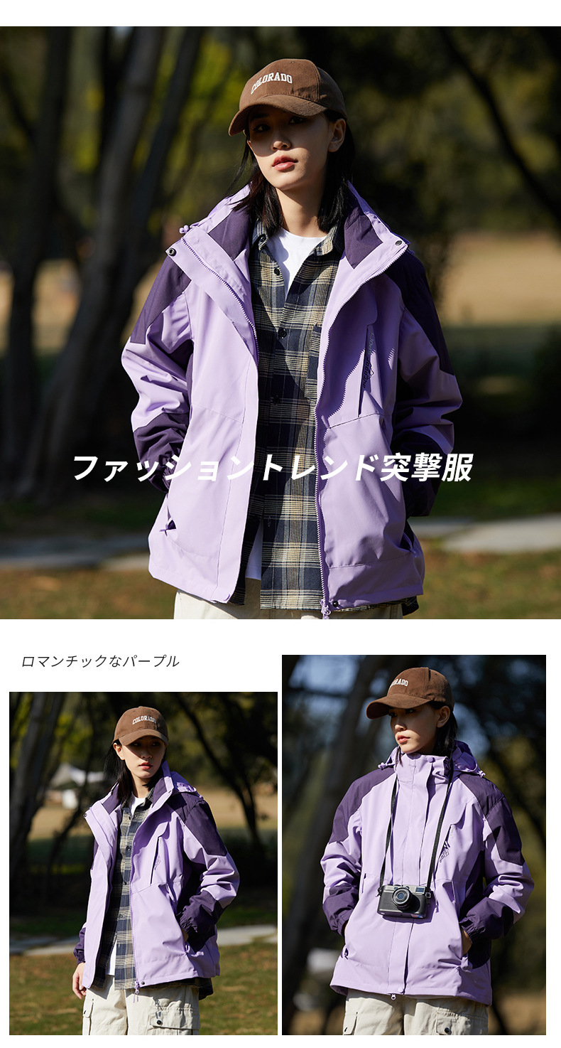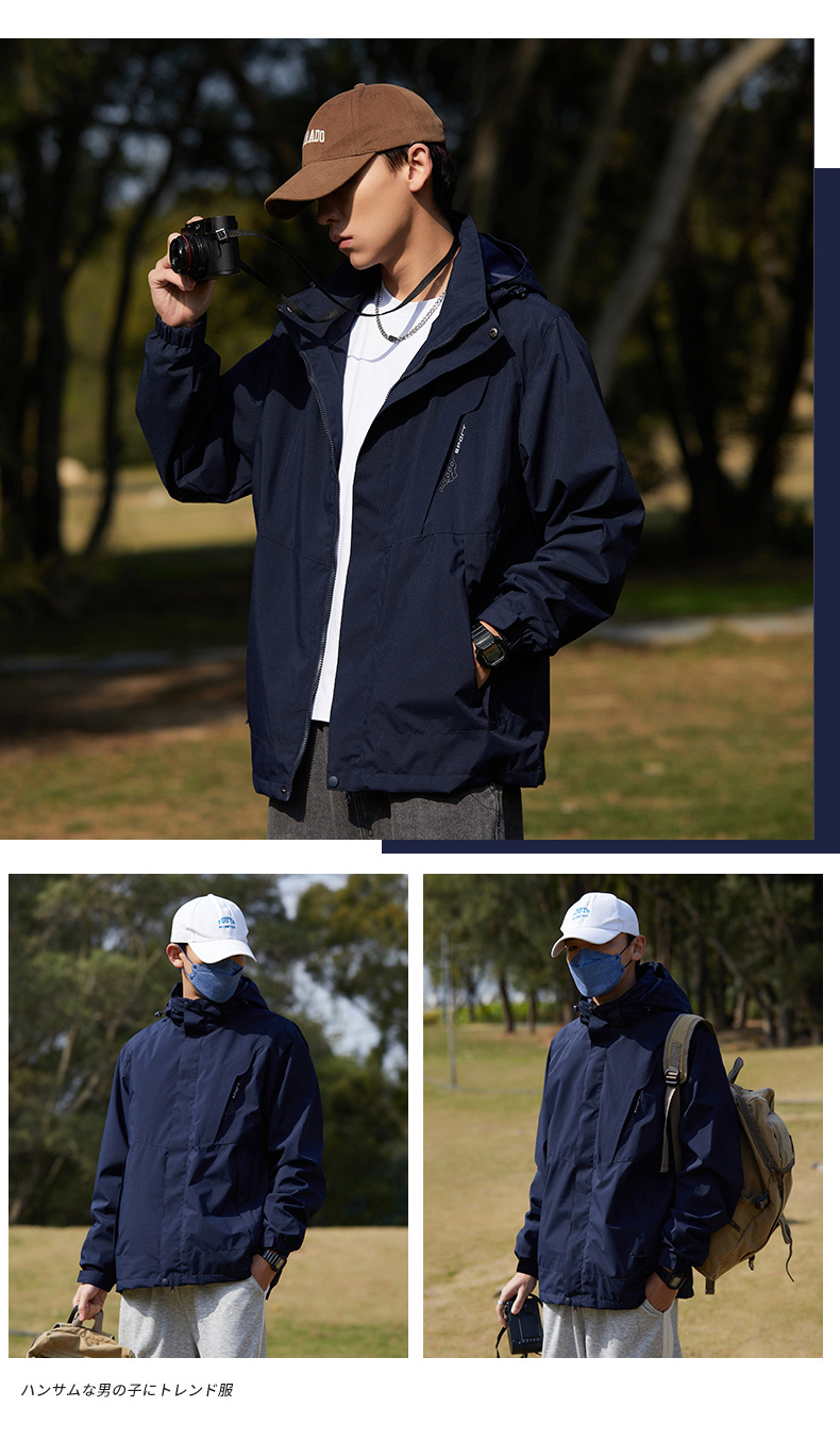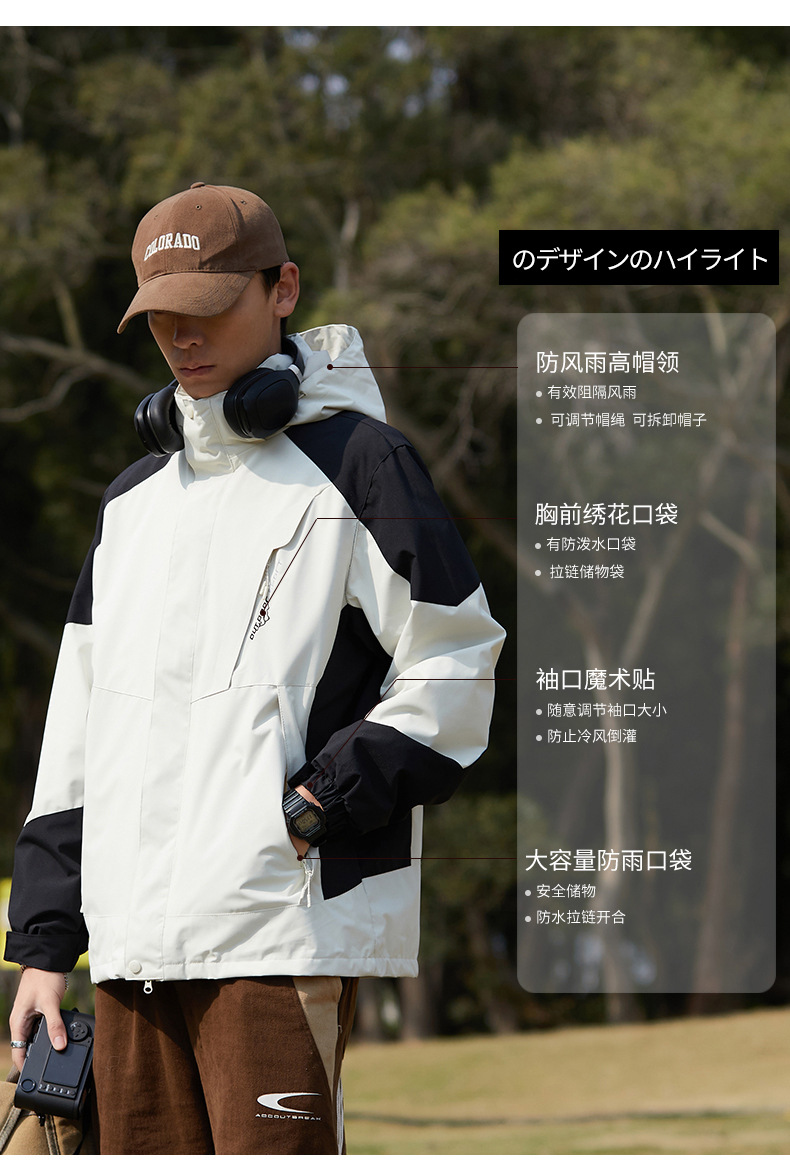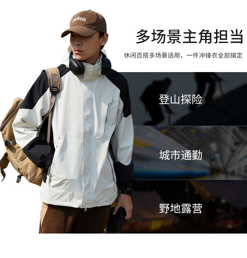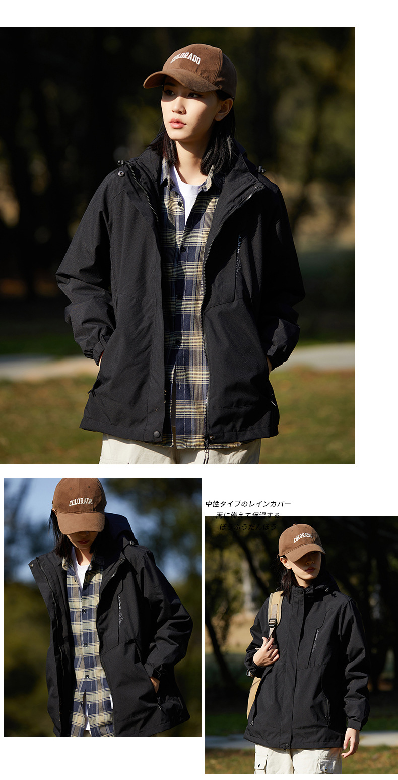 【三合一情侣冲锋衣,户外乐趣,风雨无忧】户外冲锋衣三合一女 防风防泼水情侣款 单层薄款登山服 外套男款-QQ