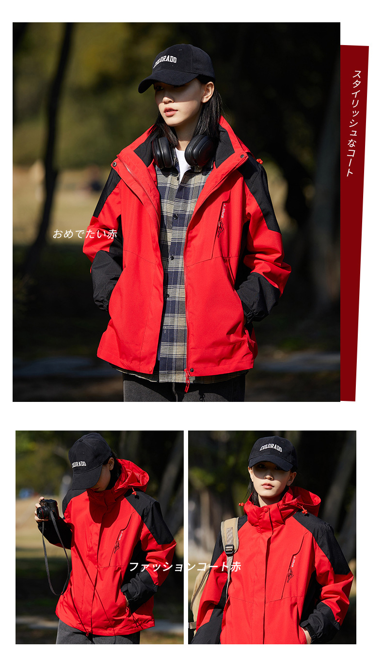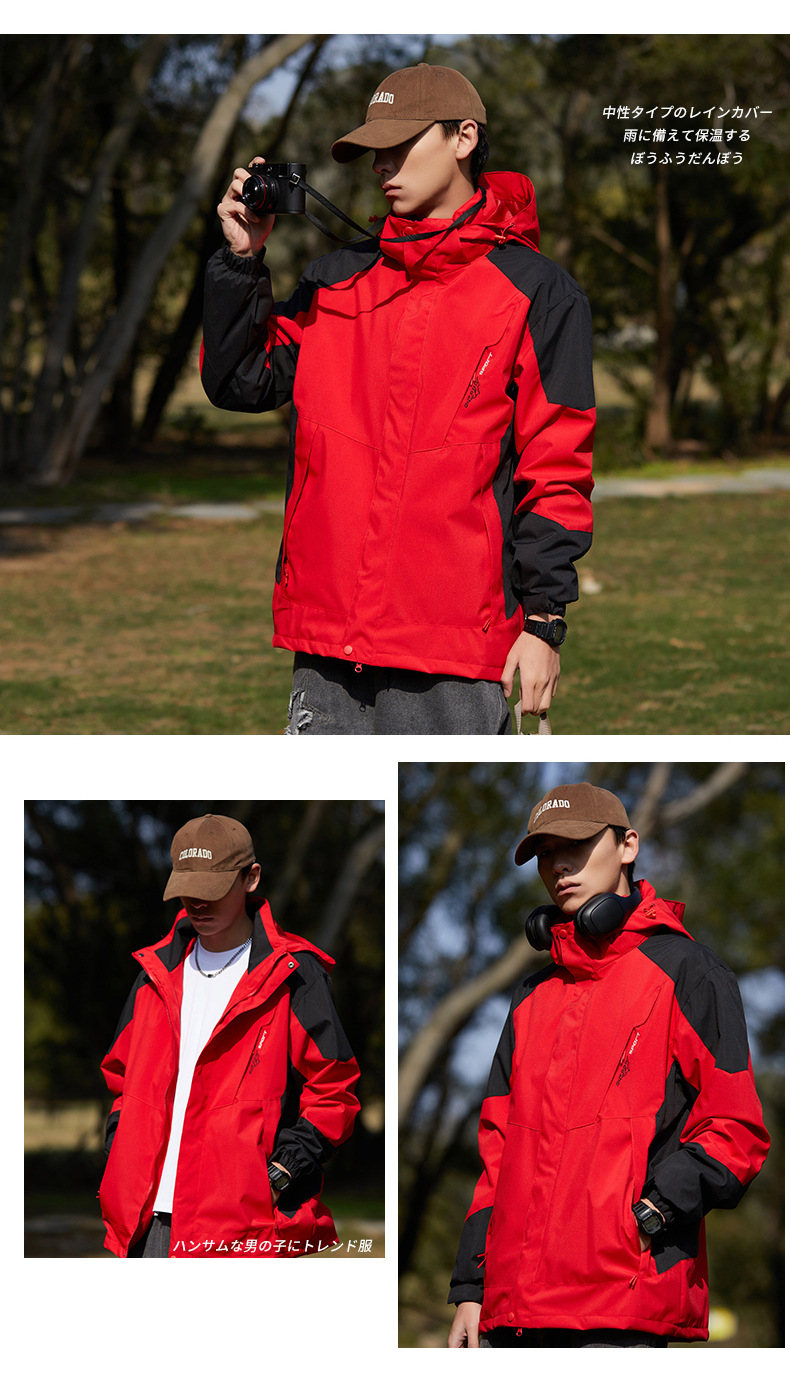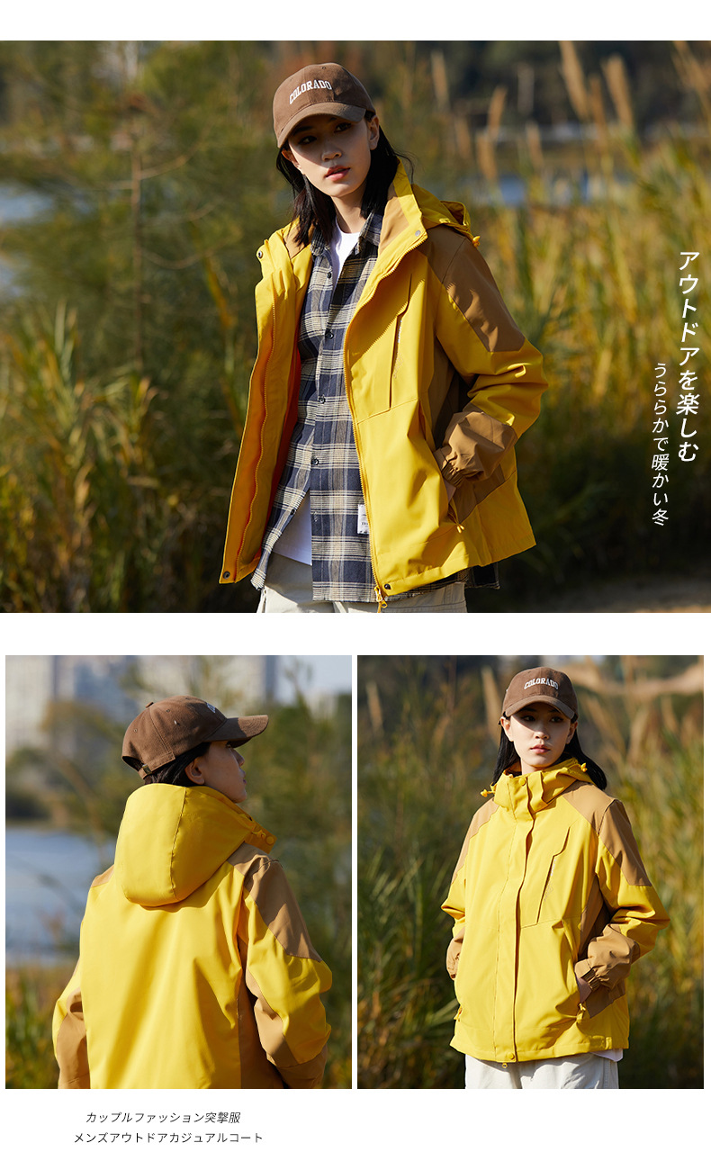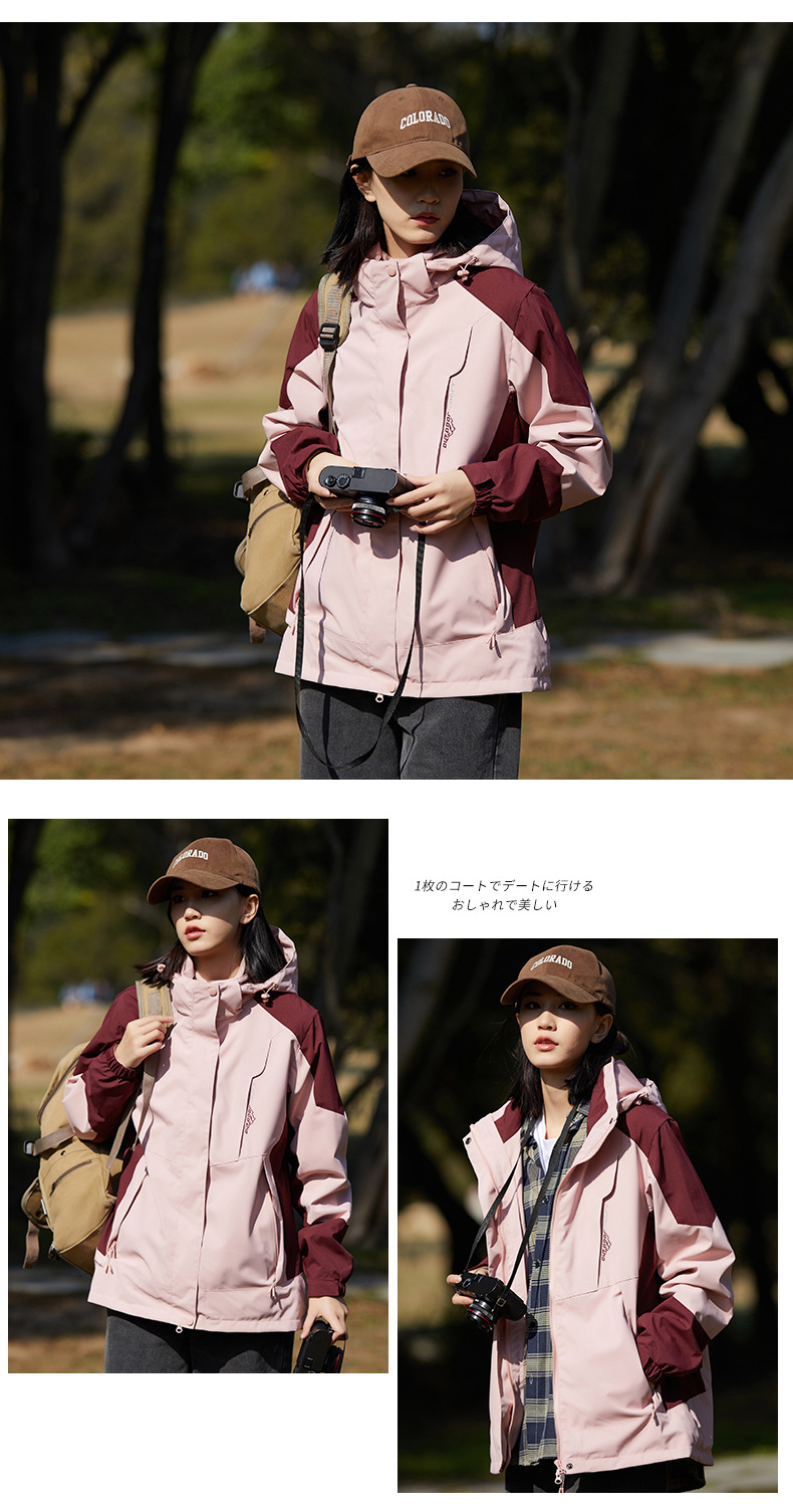 【三合一情侣冲锋衣,户外乐趣,风雨无忧】户外冲锋衣三合一女 防风防泼水情侣款 单层薄款登山服 外套男款-QQ