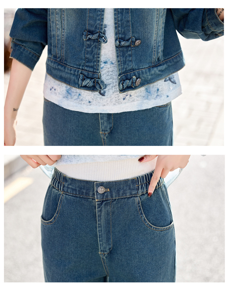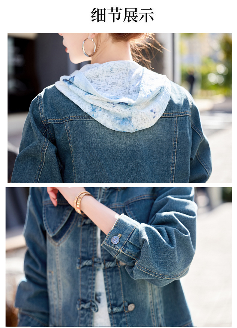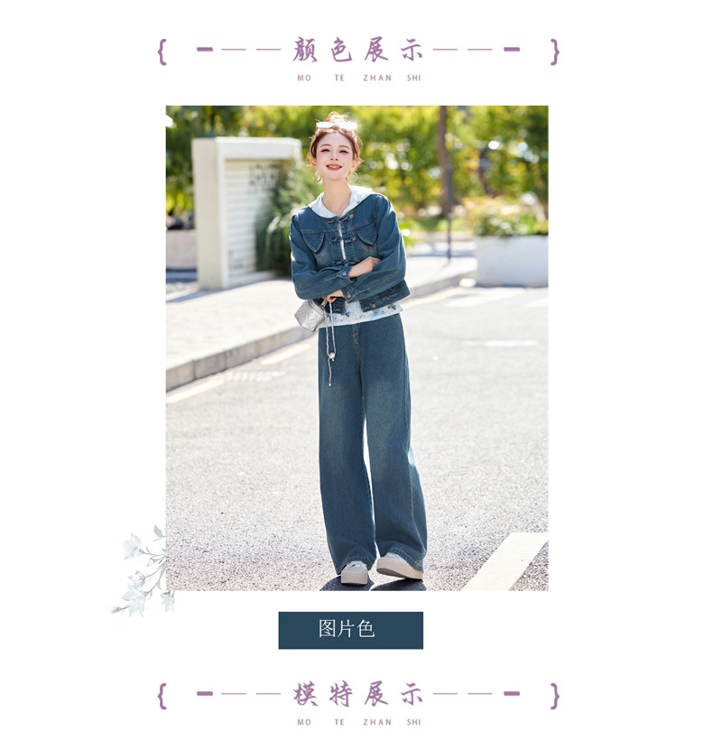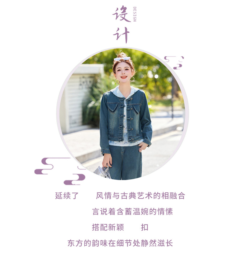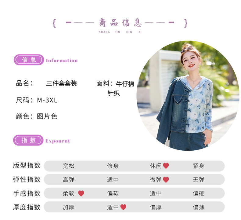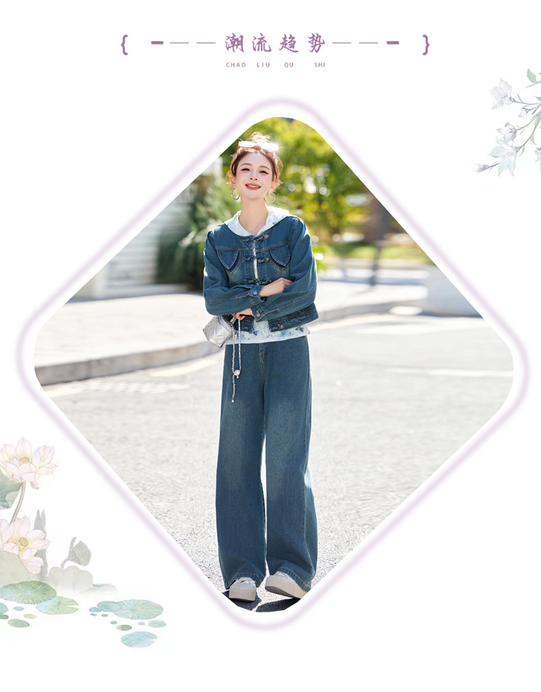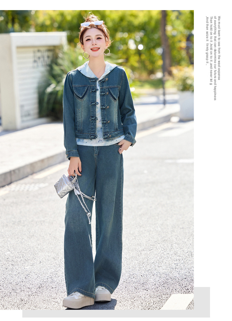 HR-XPH9189时尚复古休闲牛仔套装2025春新款女连帽衬衫牛仔外套直筒裤三件套