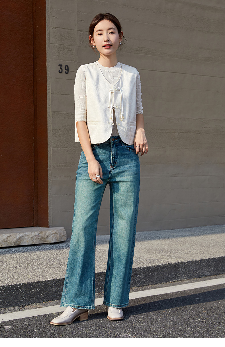 复古松弛感~浅蓝高腰喇叭牛仔裤 宽松阔腿 2025 新款女裤