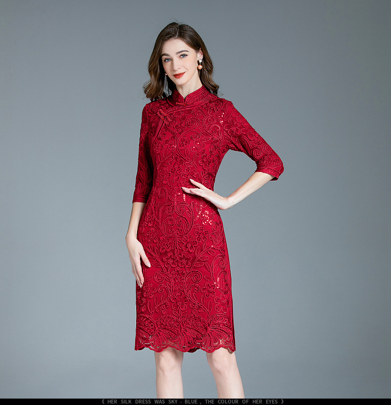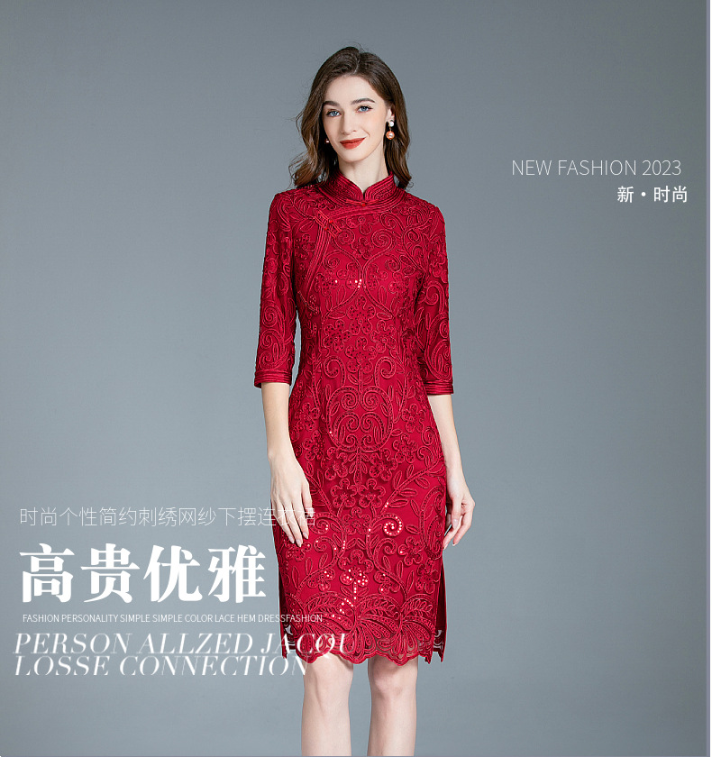 DNO-3BA8894-1礼服网纱刺绣大码连衣裙新款喜婆婆婚宴高贵
