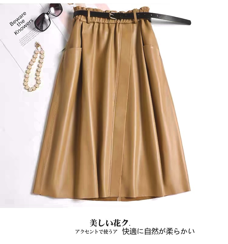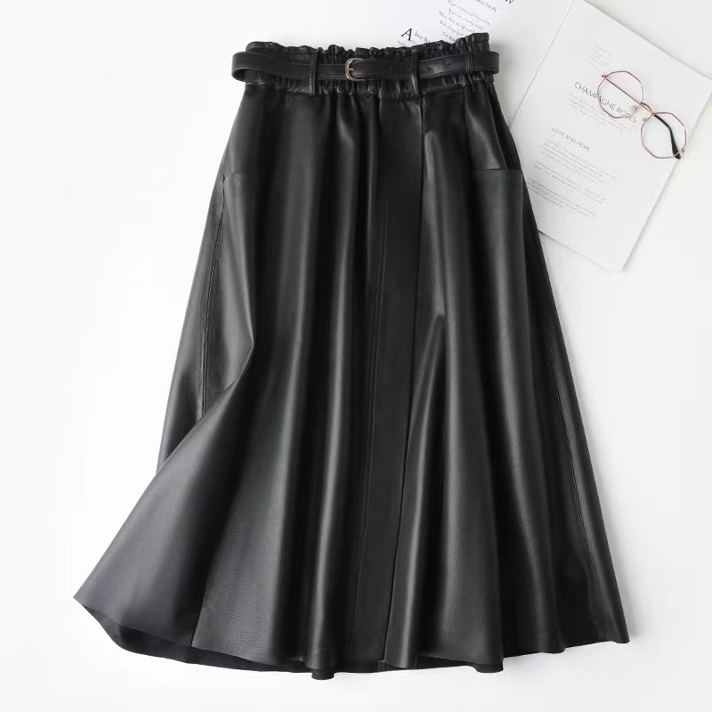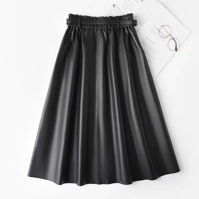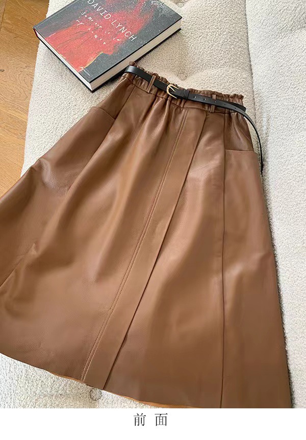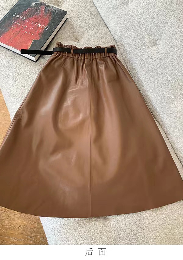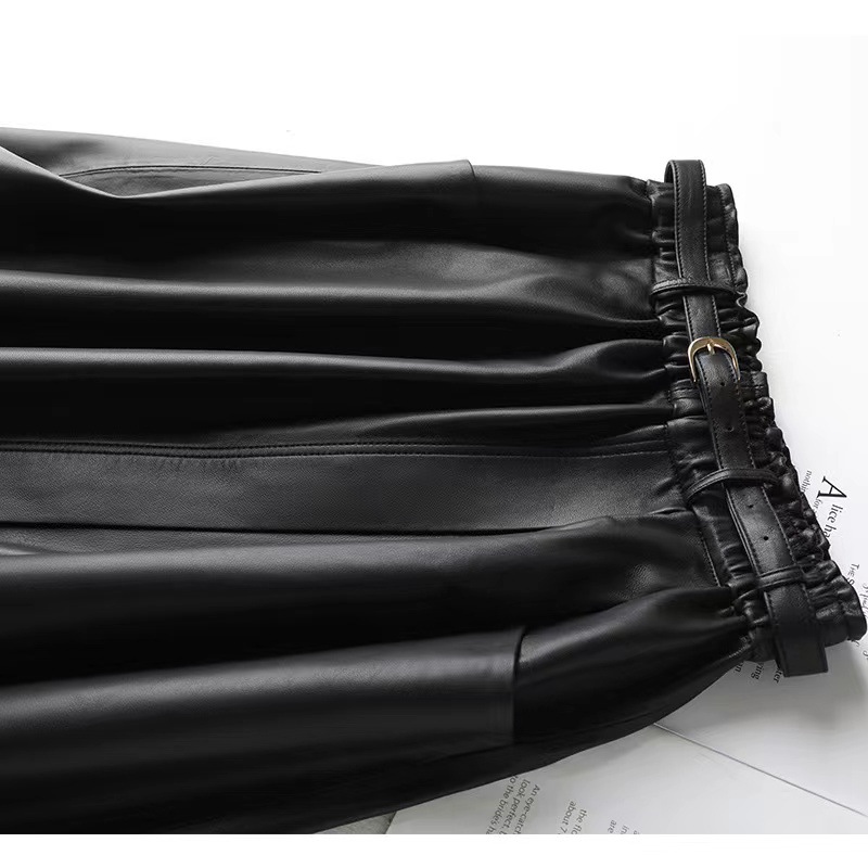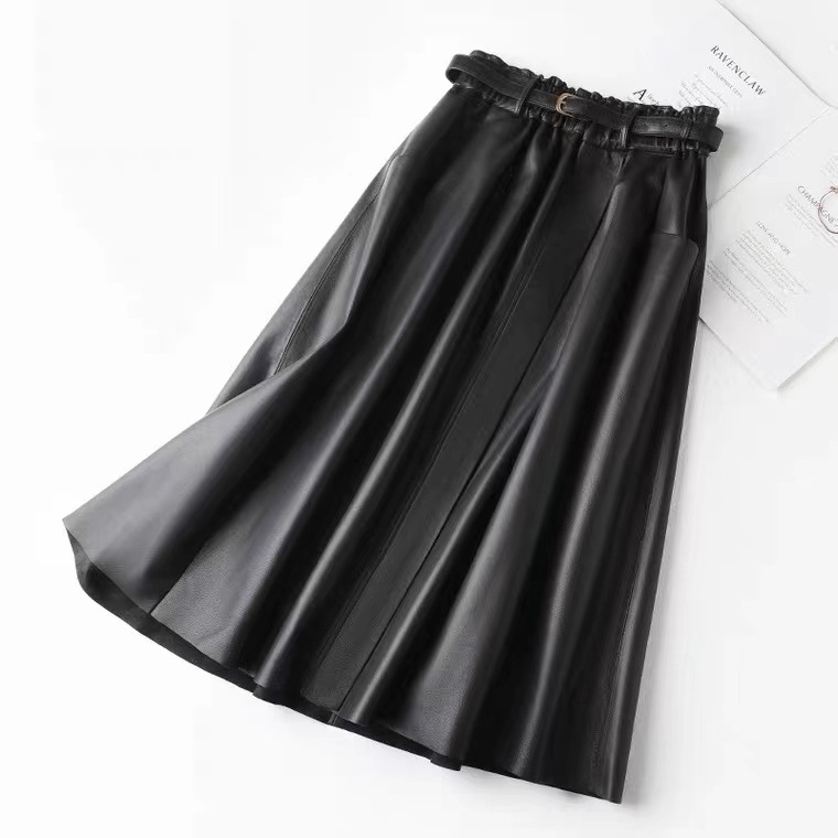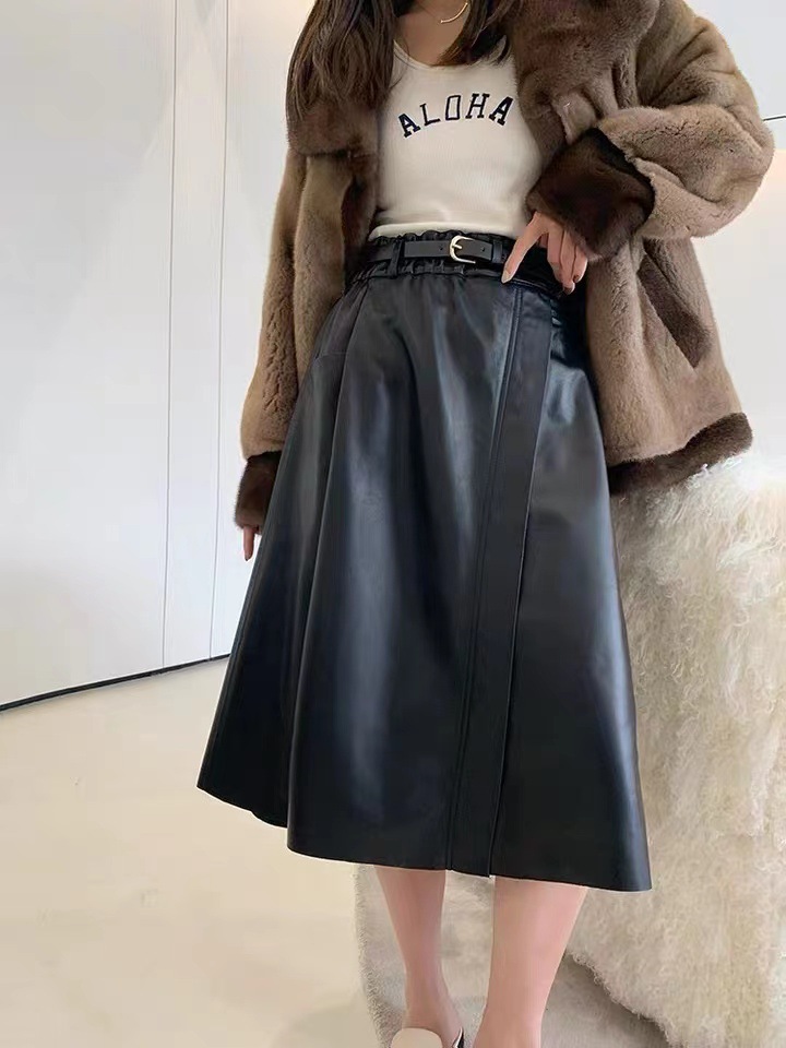 丁摩 真皮绵羊皮中长款A字伞裙中长款裙