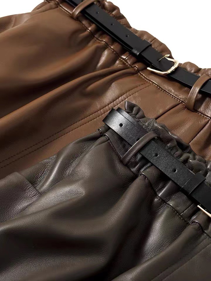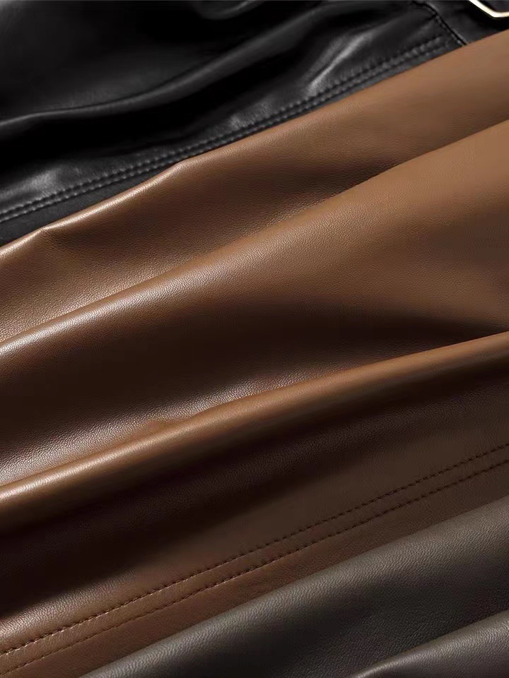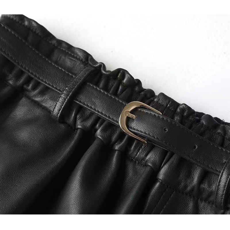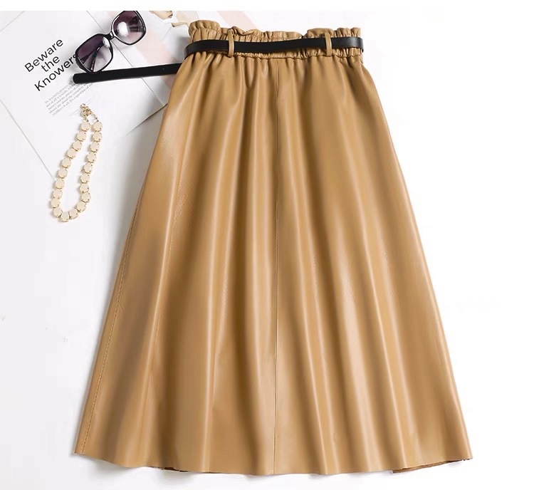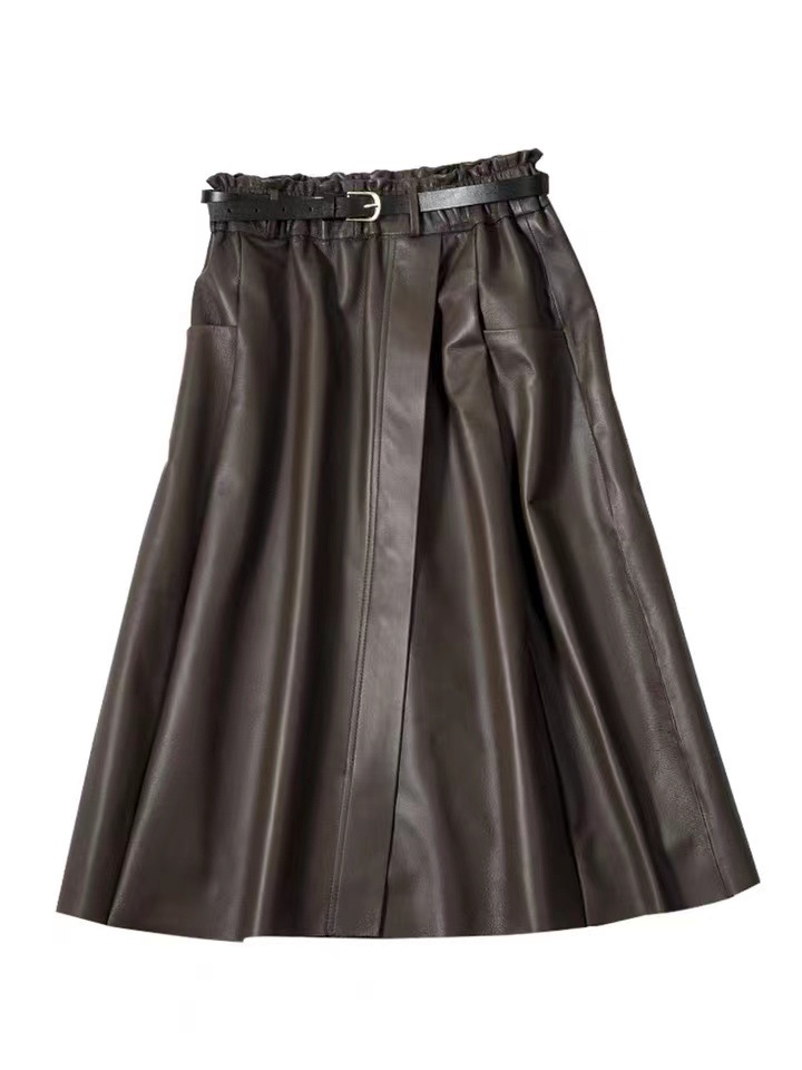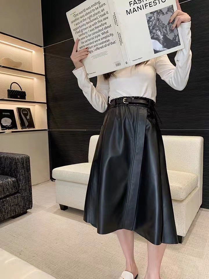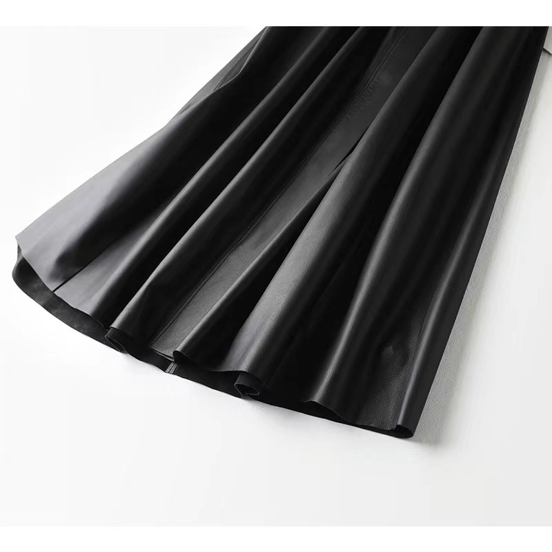 丁摩 真皮绵羊皮中长款A字伞裙中长款裙