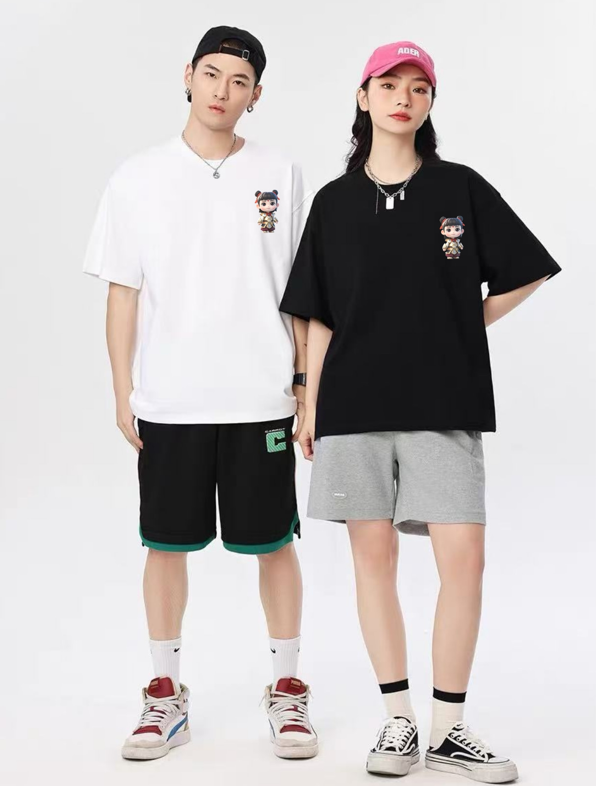 工厂直促价【100%棉】情侣(哪吒-侧标)柯式印花短袖T恤-喜出