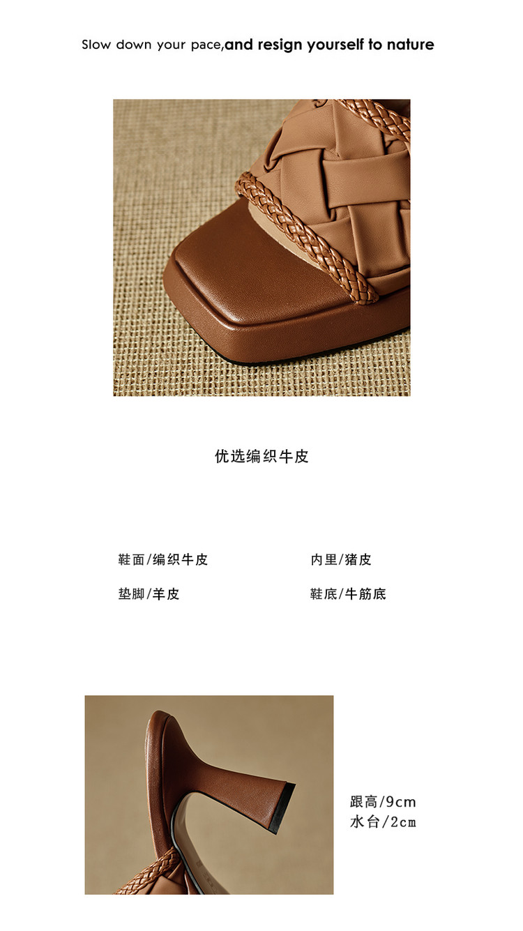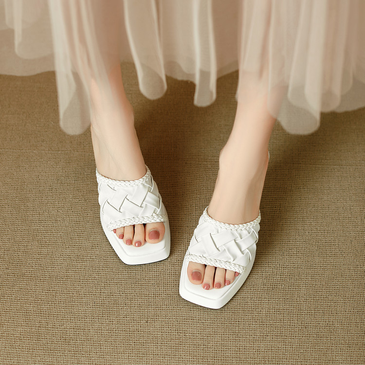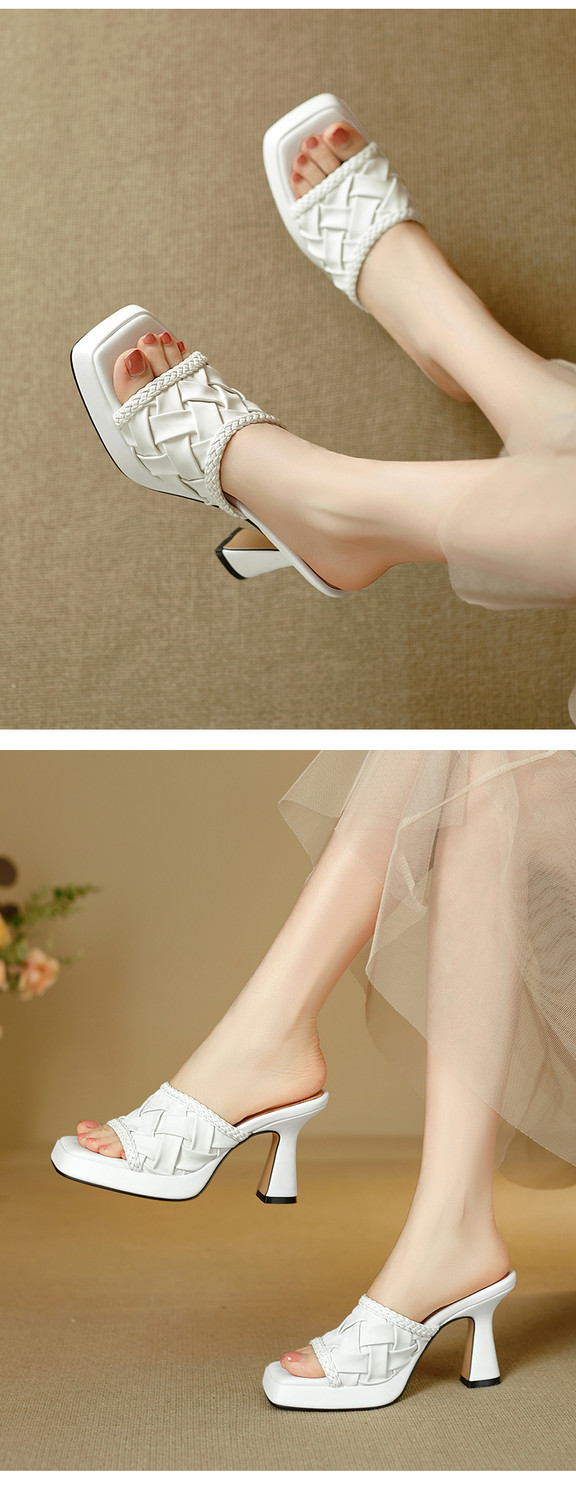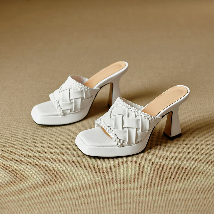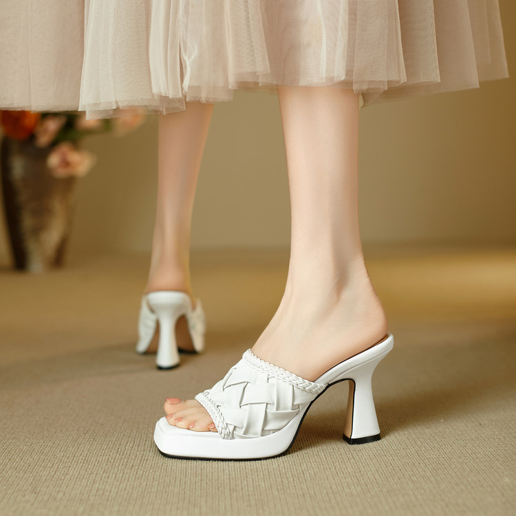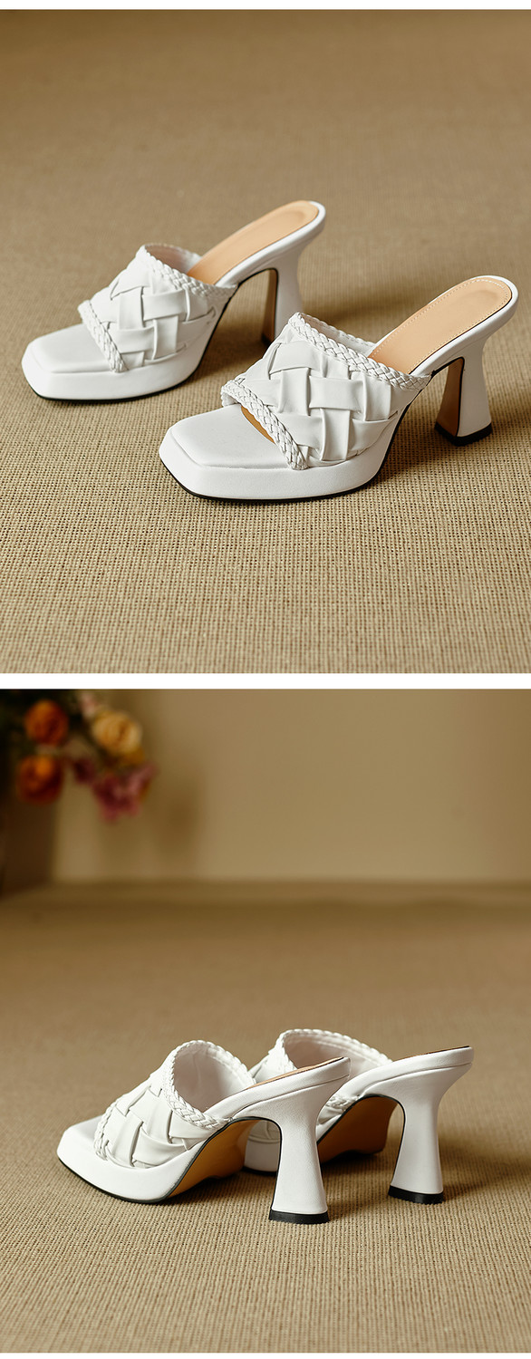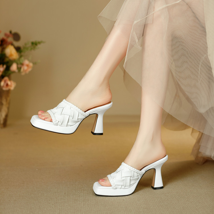 【预售5天】白色编织外穿拖鞋夏季新款防水台高跟鞋女粗跟高级感一字拖JGGXY&J2125-13