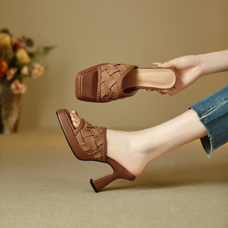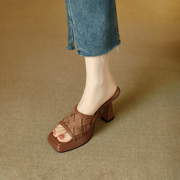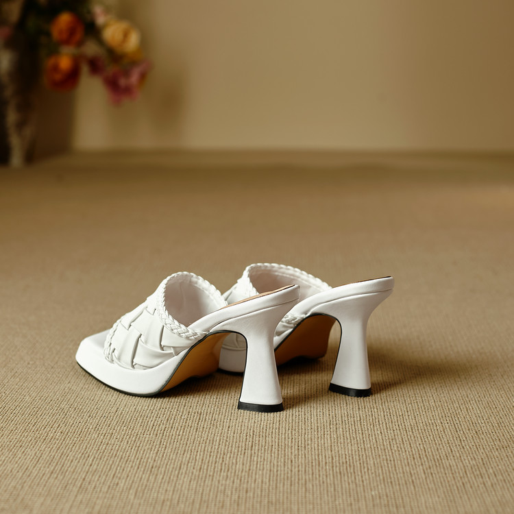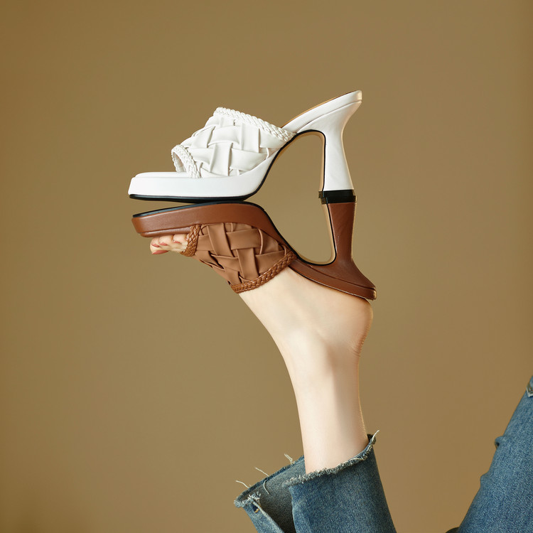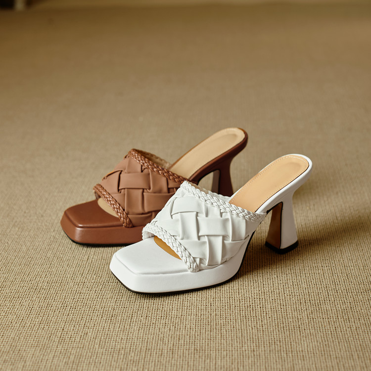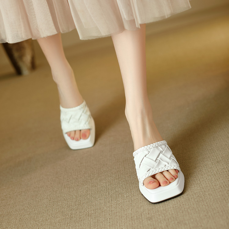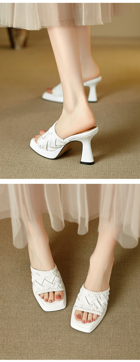 【预售5天】白色编织外穿拖鞋夏季新款防水台高跟鞋女粗跟高级感一字拖JGGXY&J2125-13