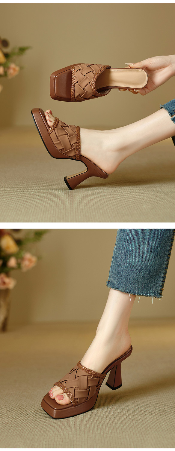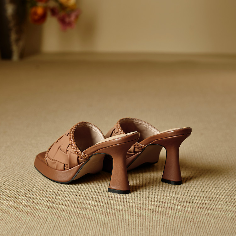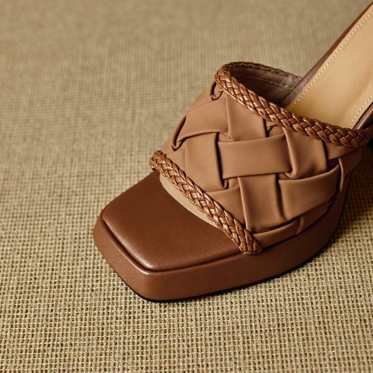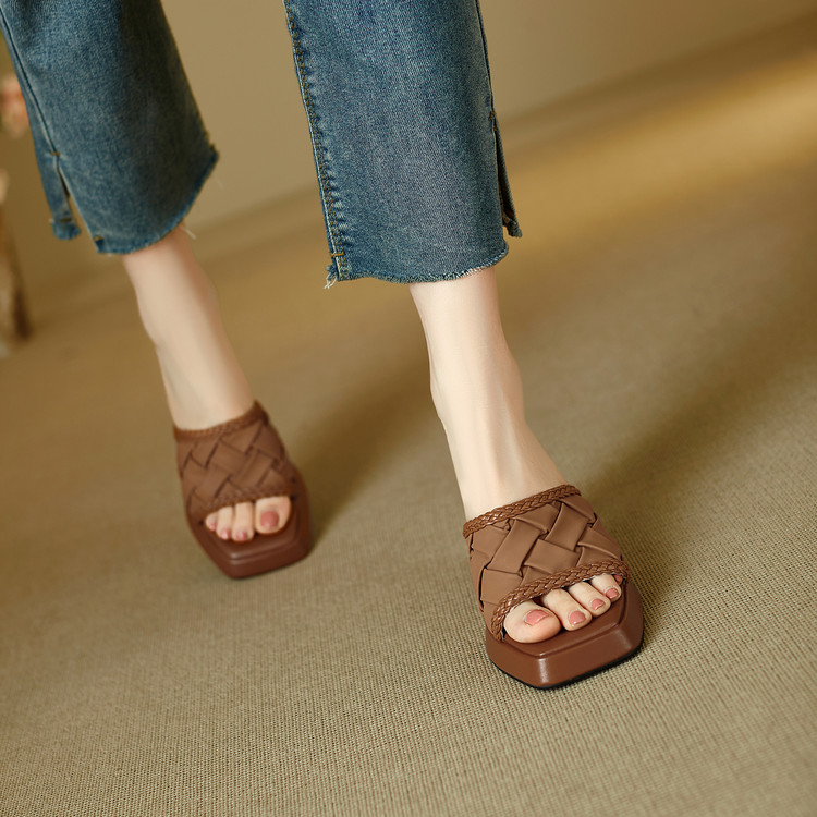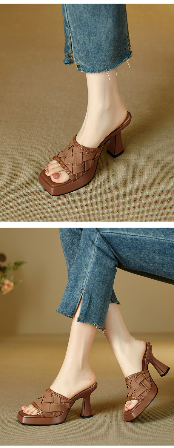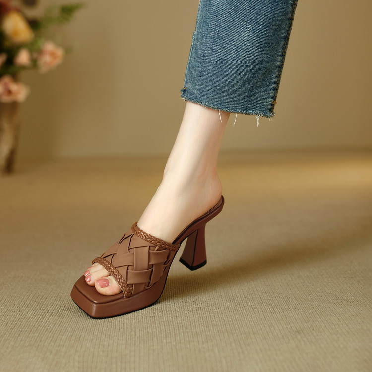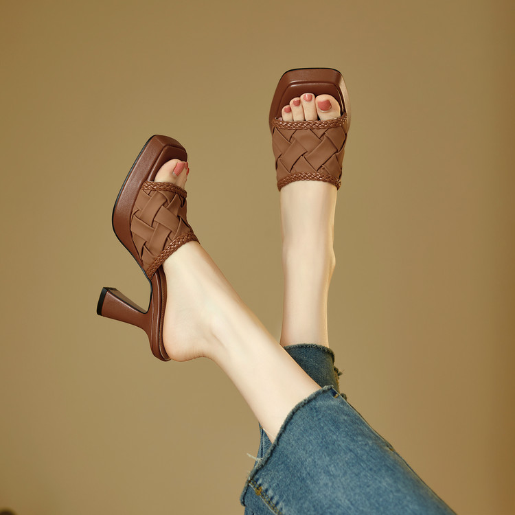 【预售5天】白色编织外穿拖鞋夏季新款防水台高跟鞋女粗跟高级感一字拖JGGXY&J2125-13