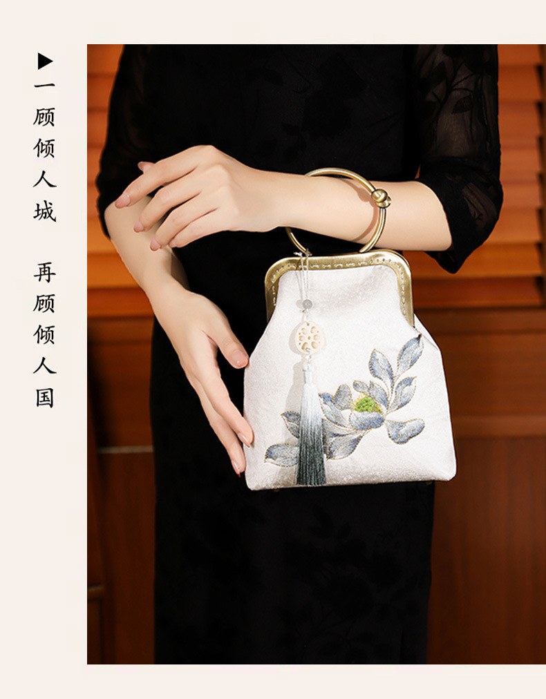 古风包旗袍绣花金口手拎包,复古民刺绣手提包JX-银莲