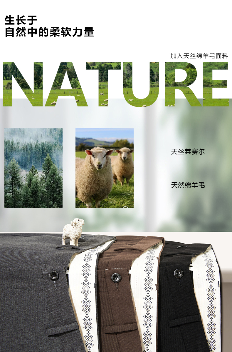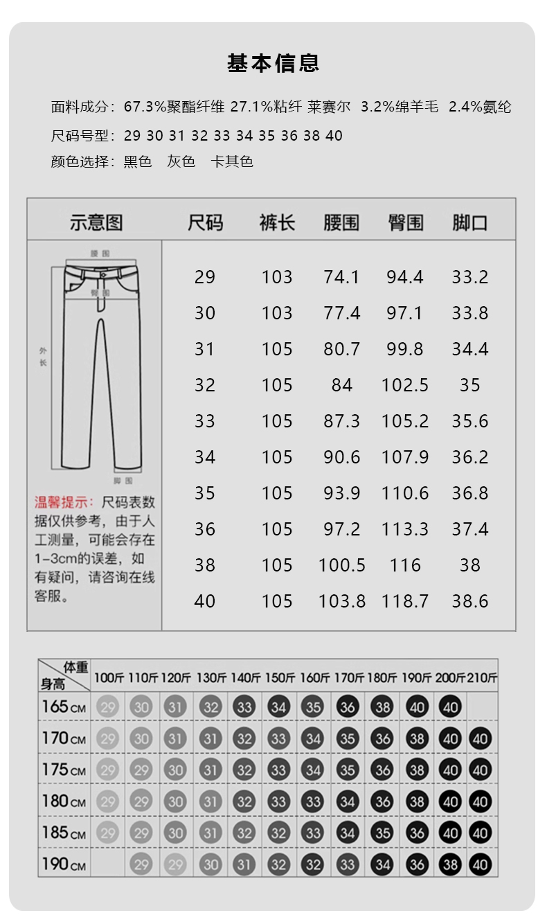 成分:67.3%聚酯纤维 27.1%粘纤 莱赛尔 3.2%绵羊毛 2.4%氨纶
