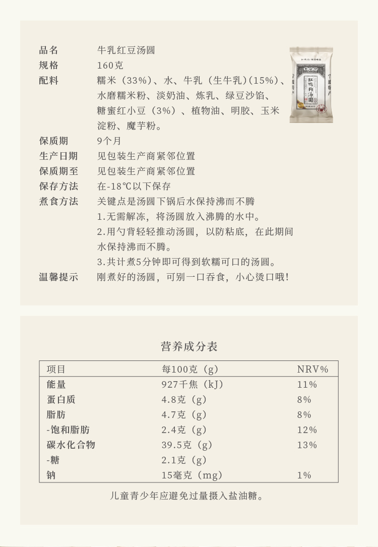 4、煮汤圆过程中出现开裂、散架情况,不在售后范围,请参照包装后面的正确煮食方式