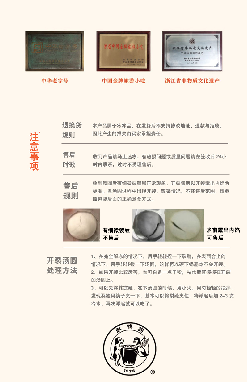 3、收到汤圆后有细微裂缝属正常现象,开裂售后以开裂露出内馅为标准。