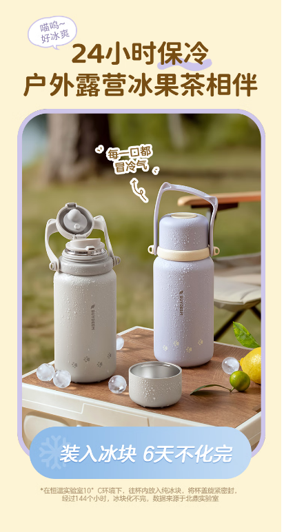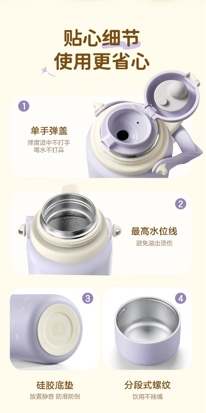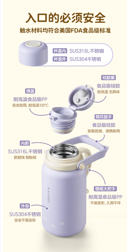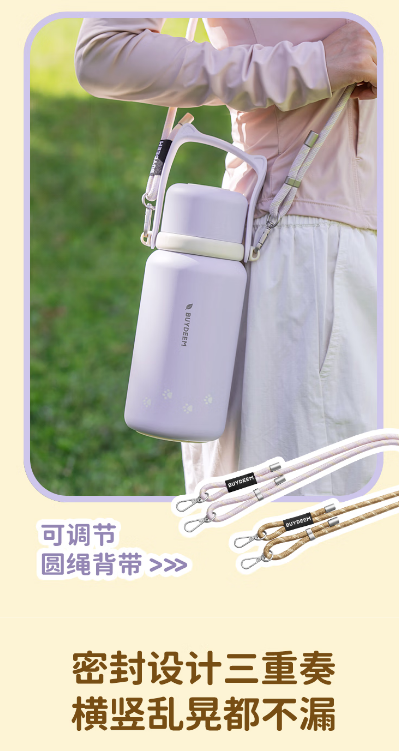 北鼎S401大容量泡茶保温杯1000ml歪头猫+背带套餐 商品图7