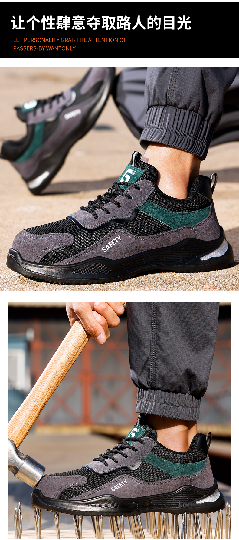 2024新款四季款劳保鞋男防砸防刺实心底耐磨抗造钢包头安全鞋工作鞋