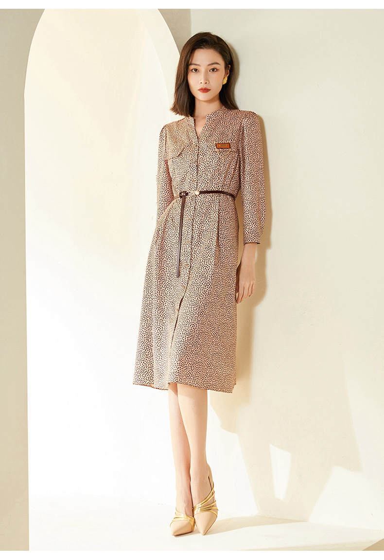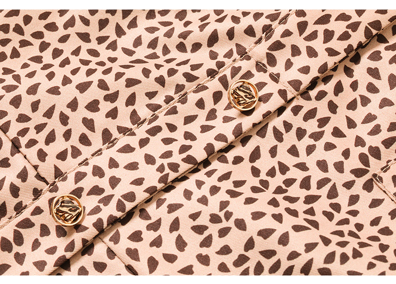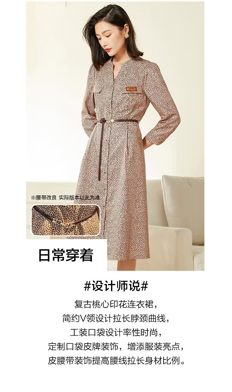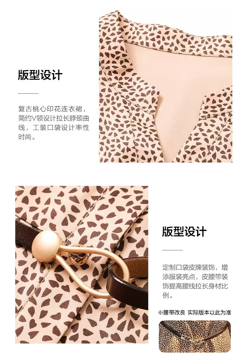乔万尼春新款复古桃心印花小V领同情修身连衣裙EF3E868