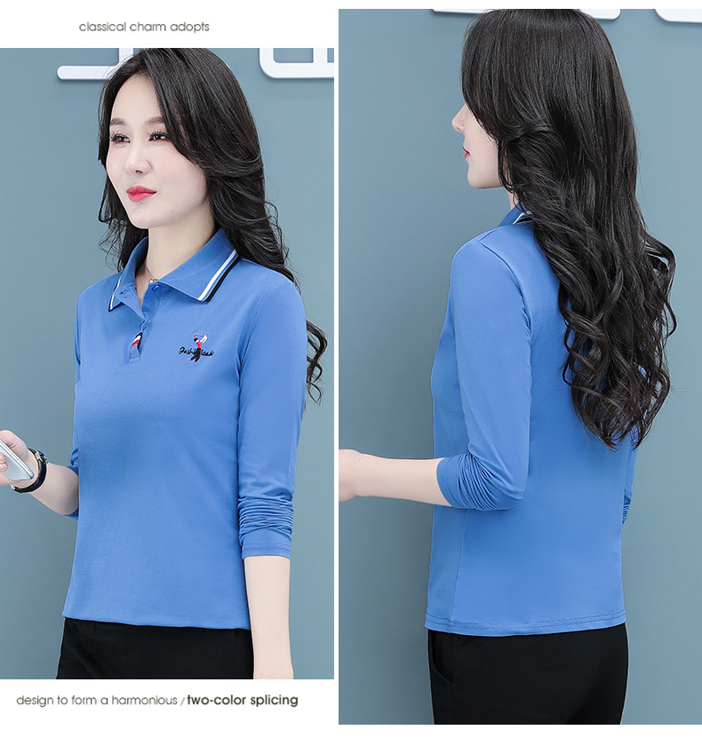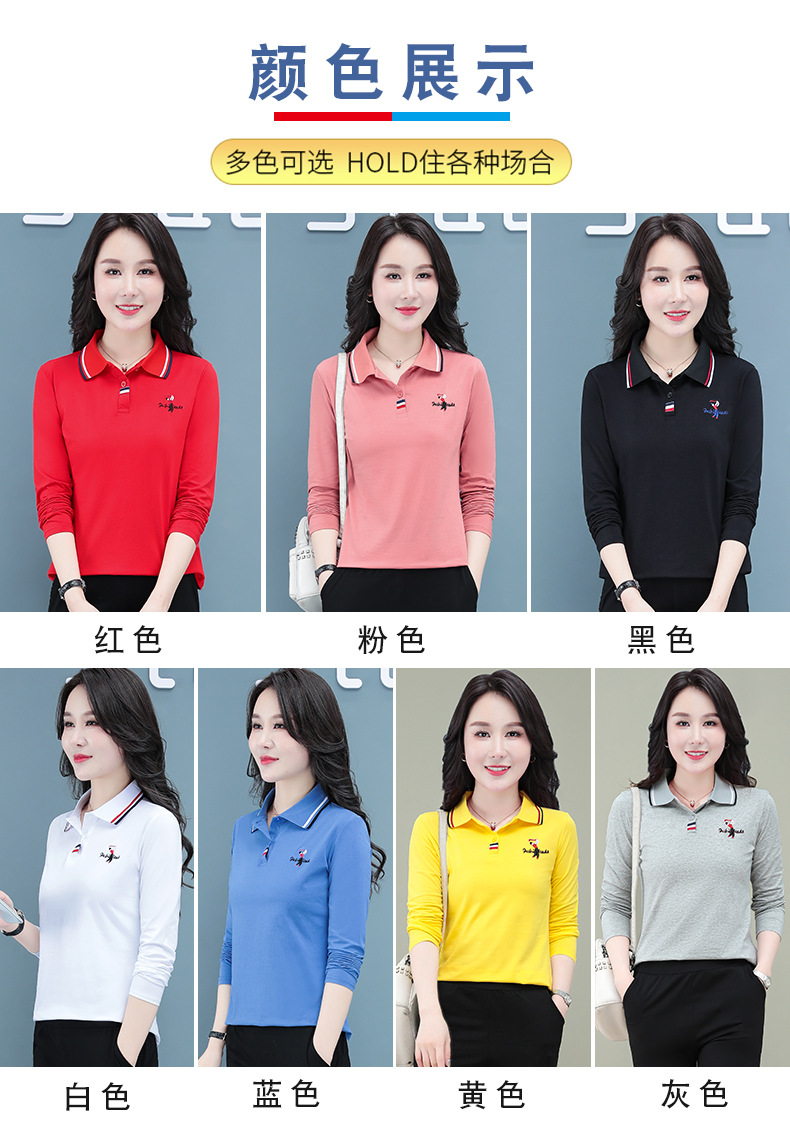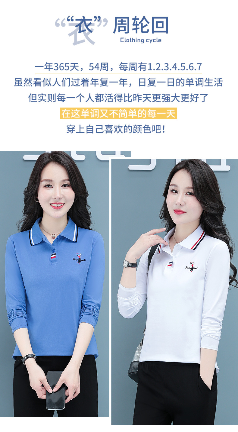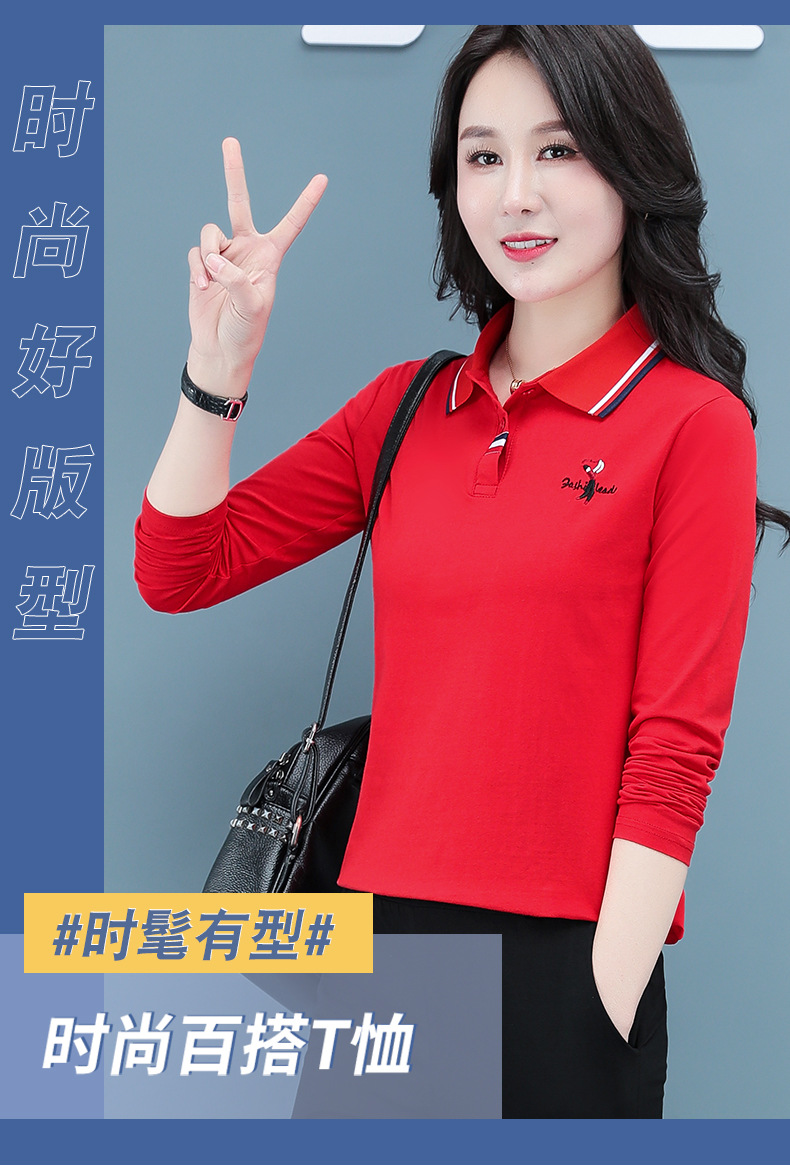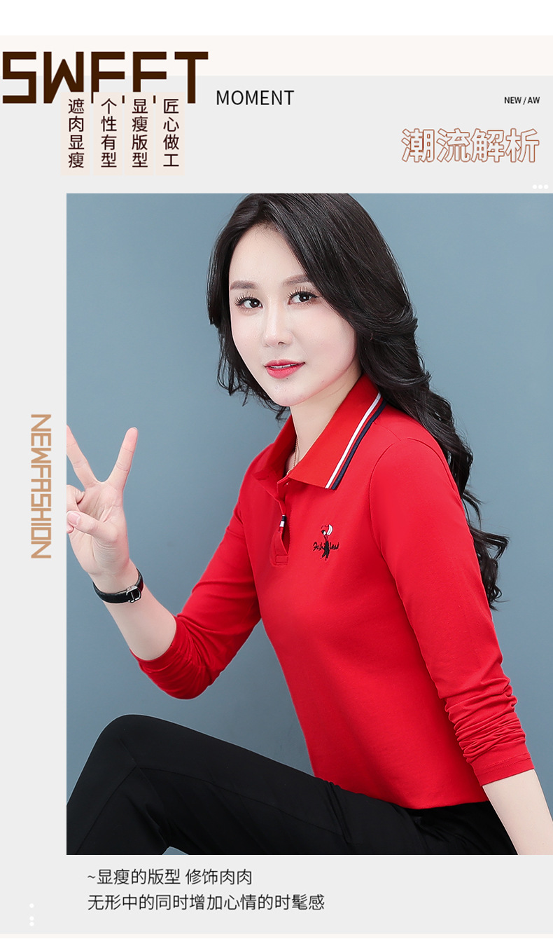 雀说t恤女纯棉长袖polo衫大码翻领打底衫女带领体恤运动女装上衣AL2122