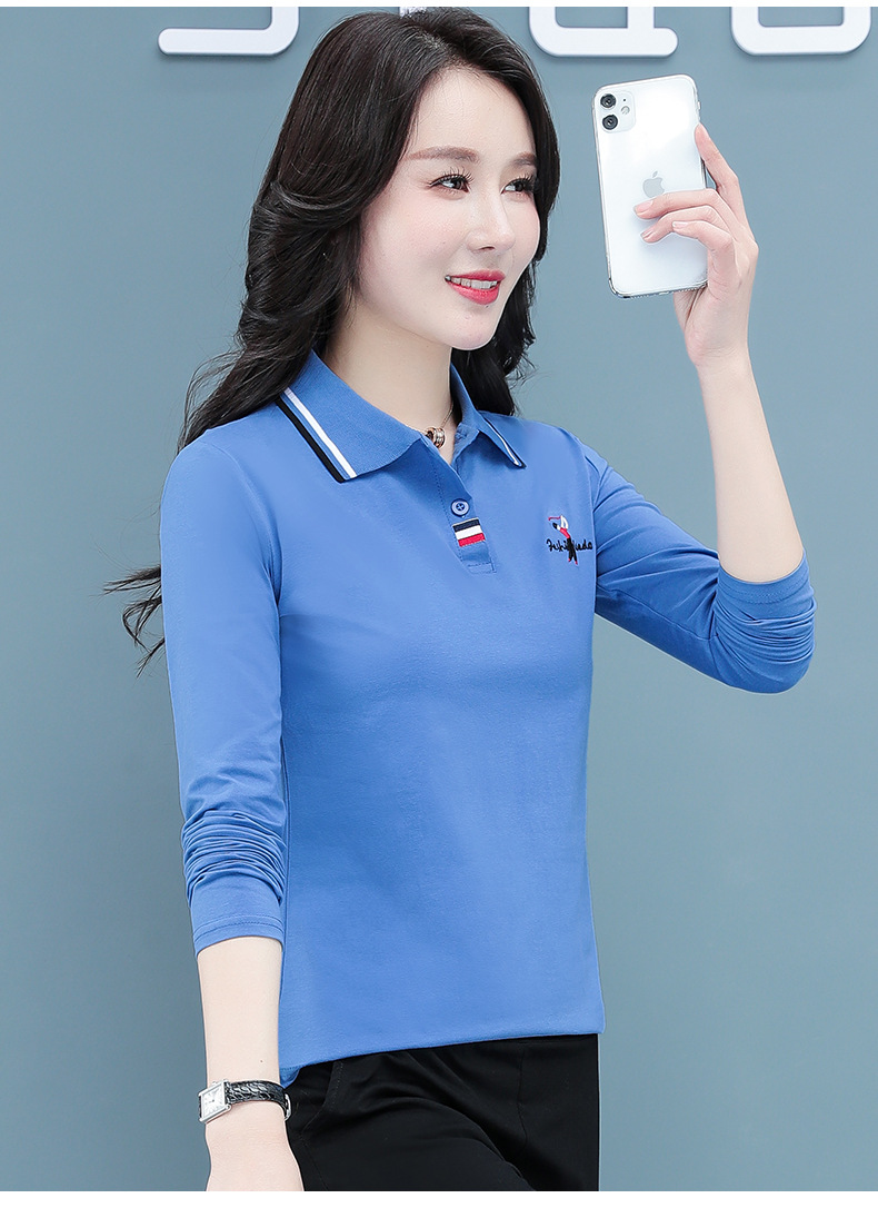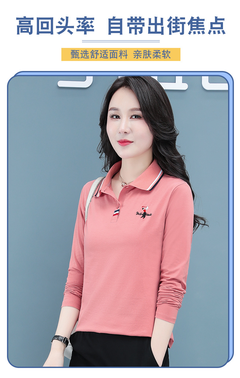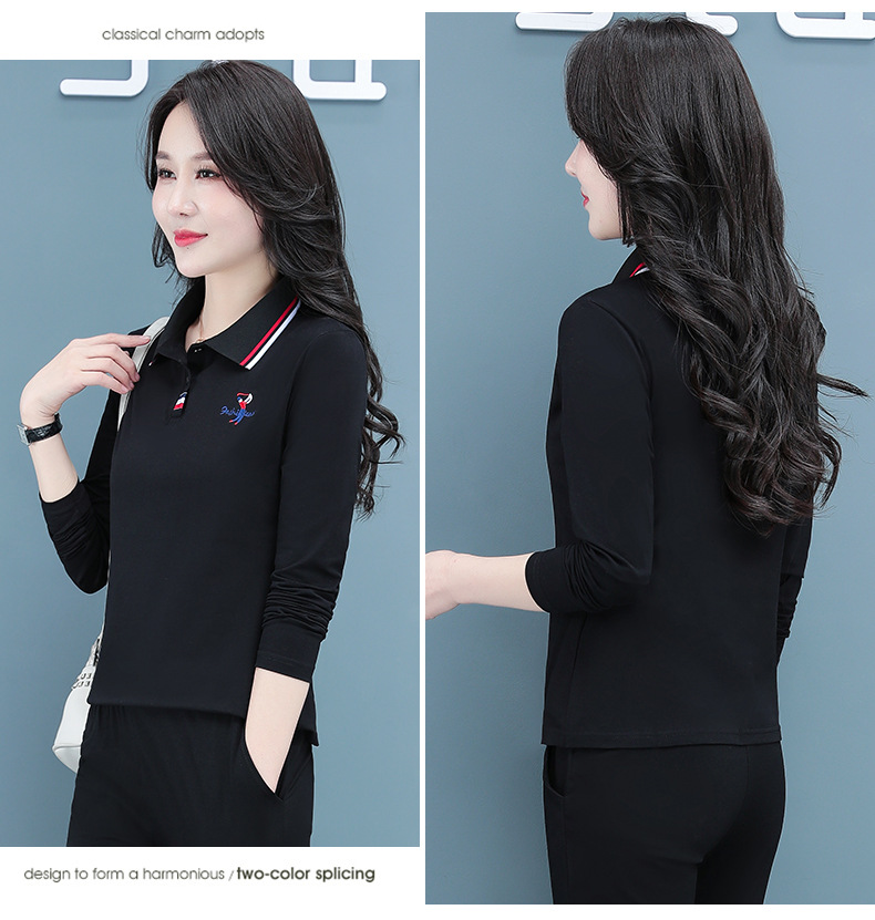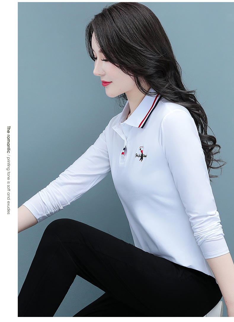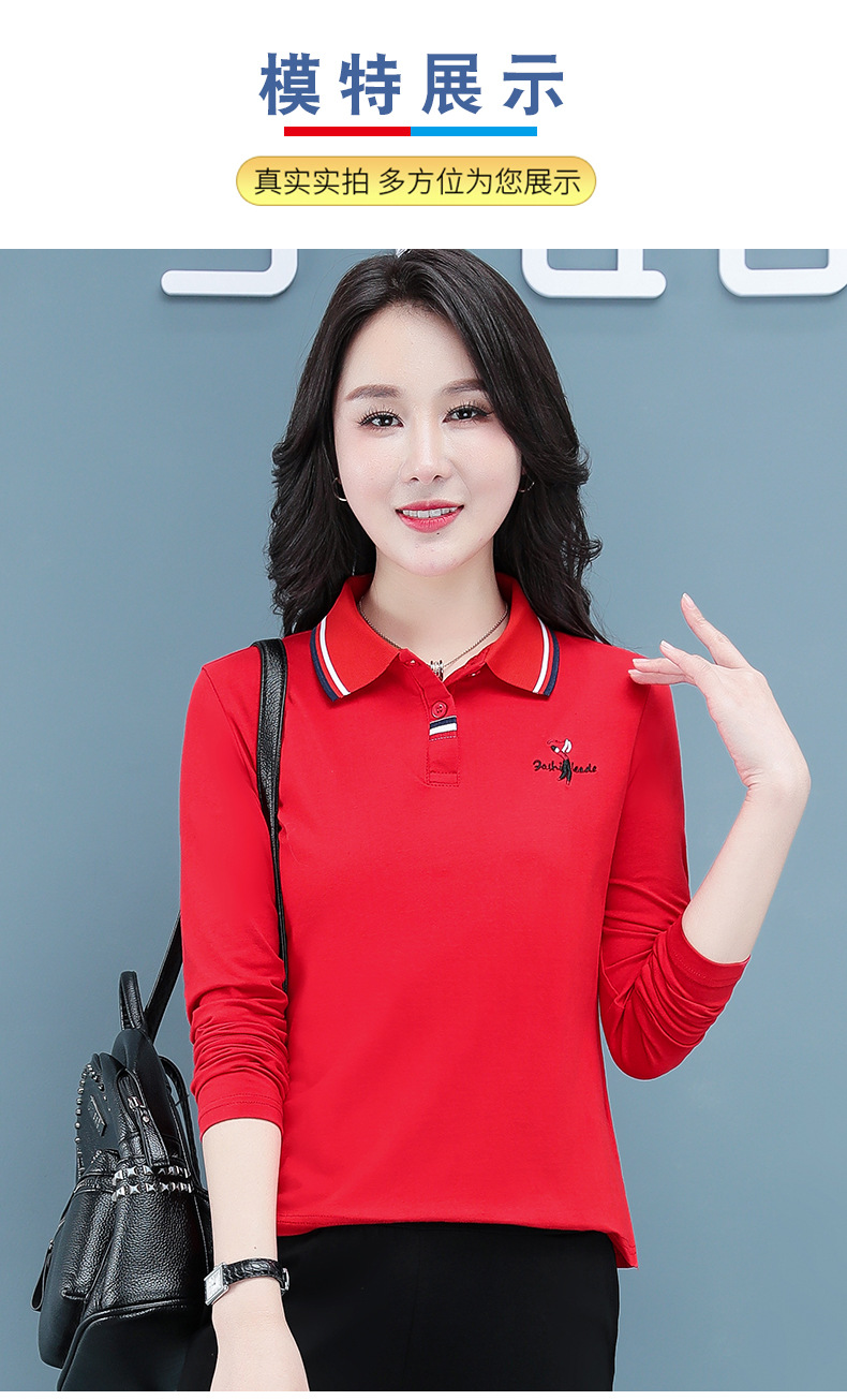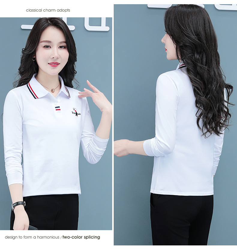 雀说t恤女纯棉长袖polo衫大码翻领打底衫女带领体恤运动女装上衣AL2122