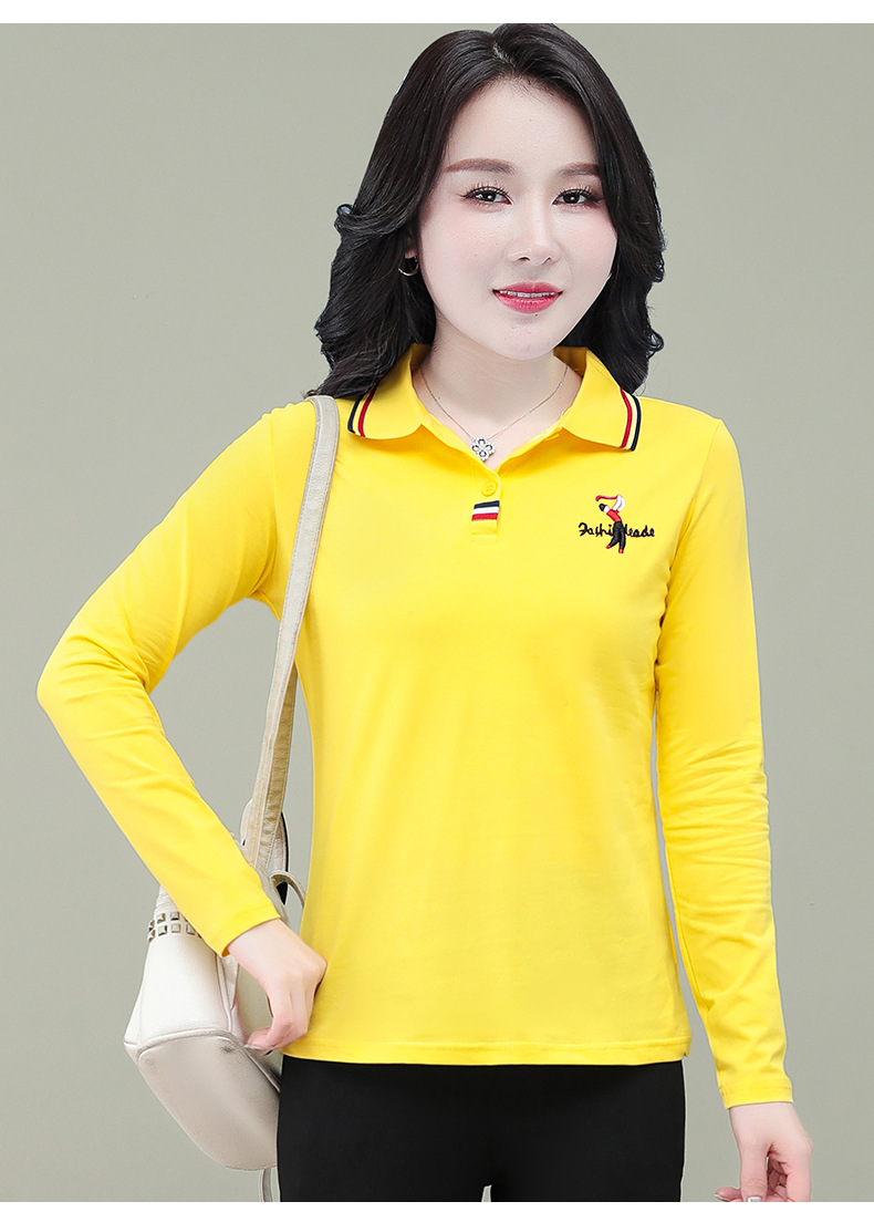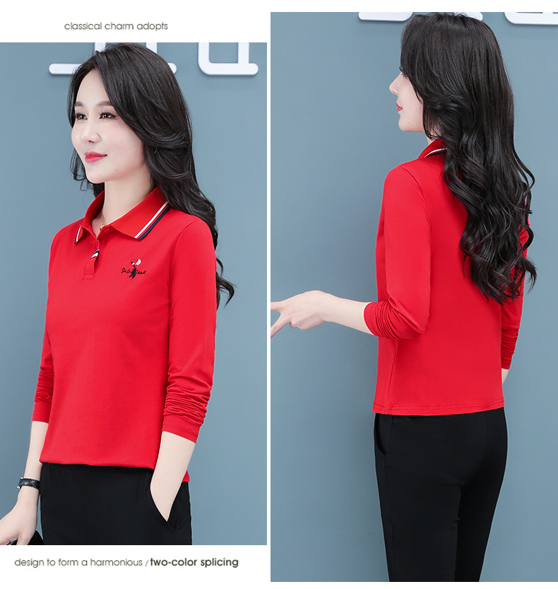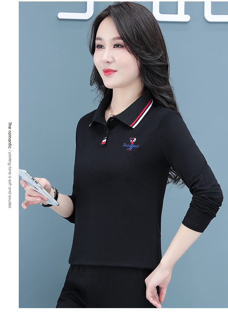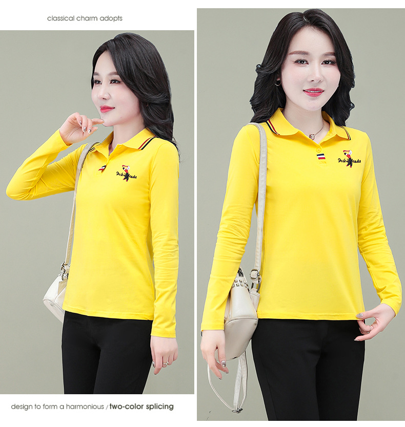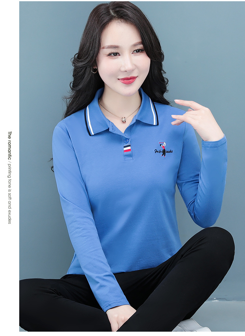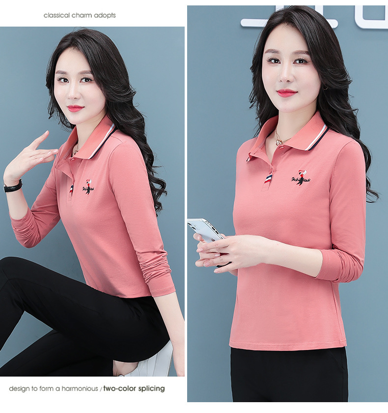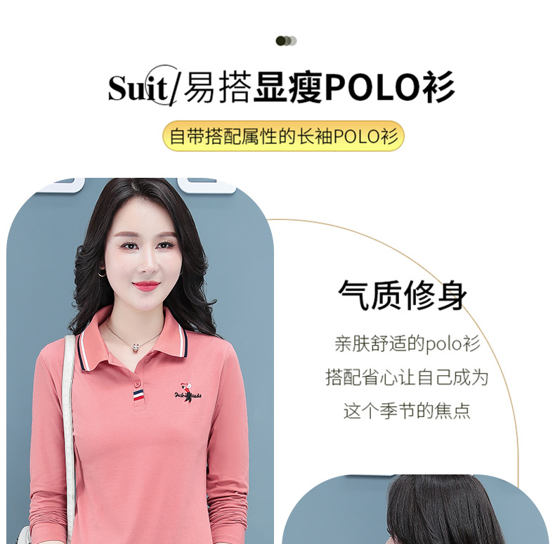 雀说t恤女纯棉长袖polo衫大码翻领打底衫女带领体恤运动女装上衣AL2122