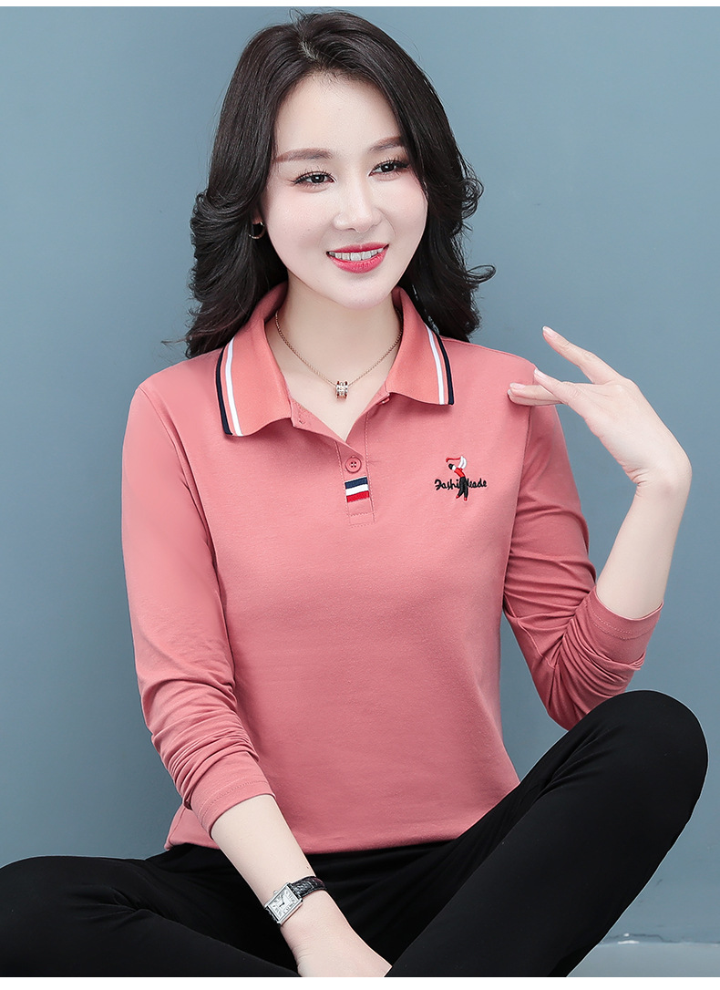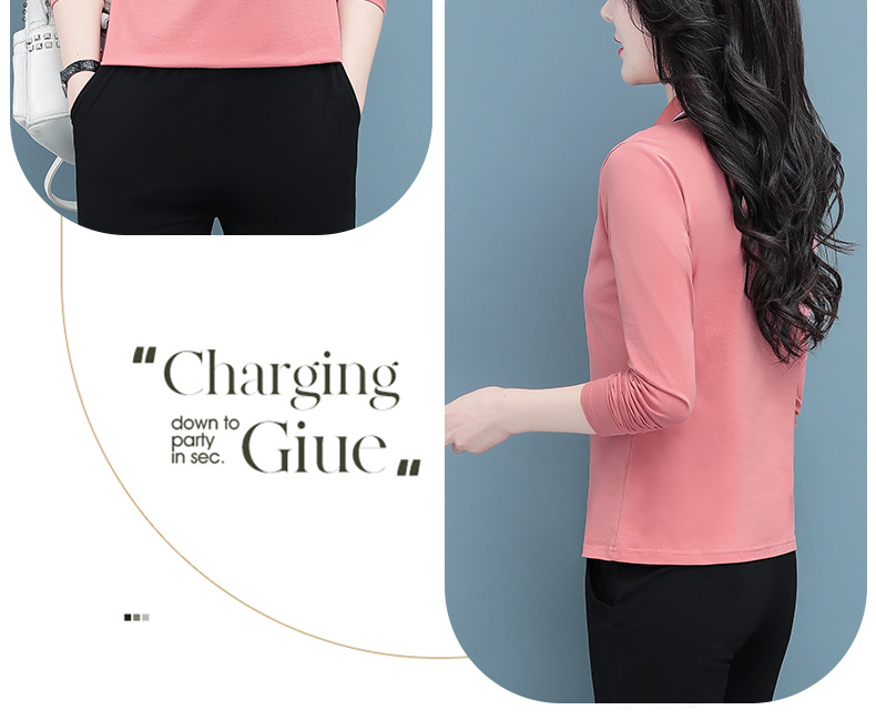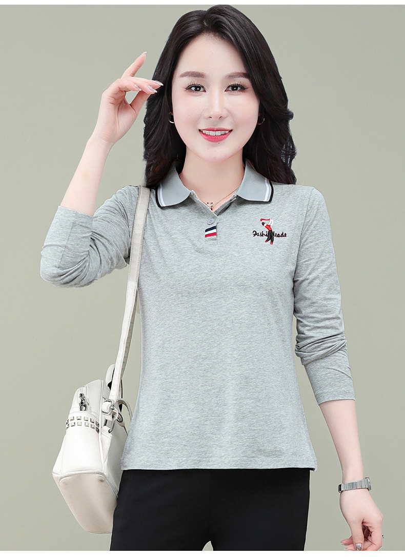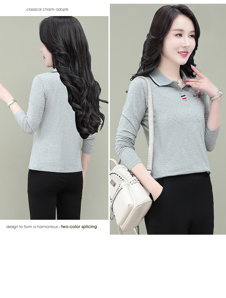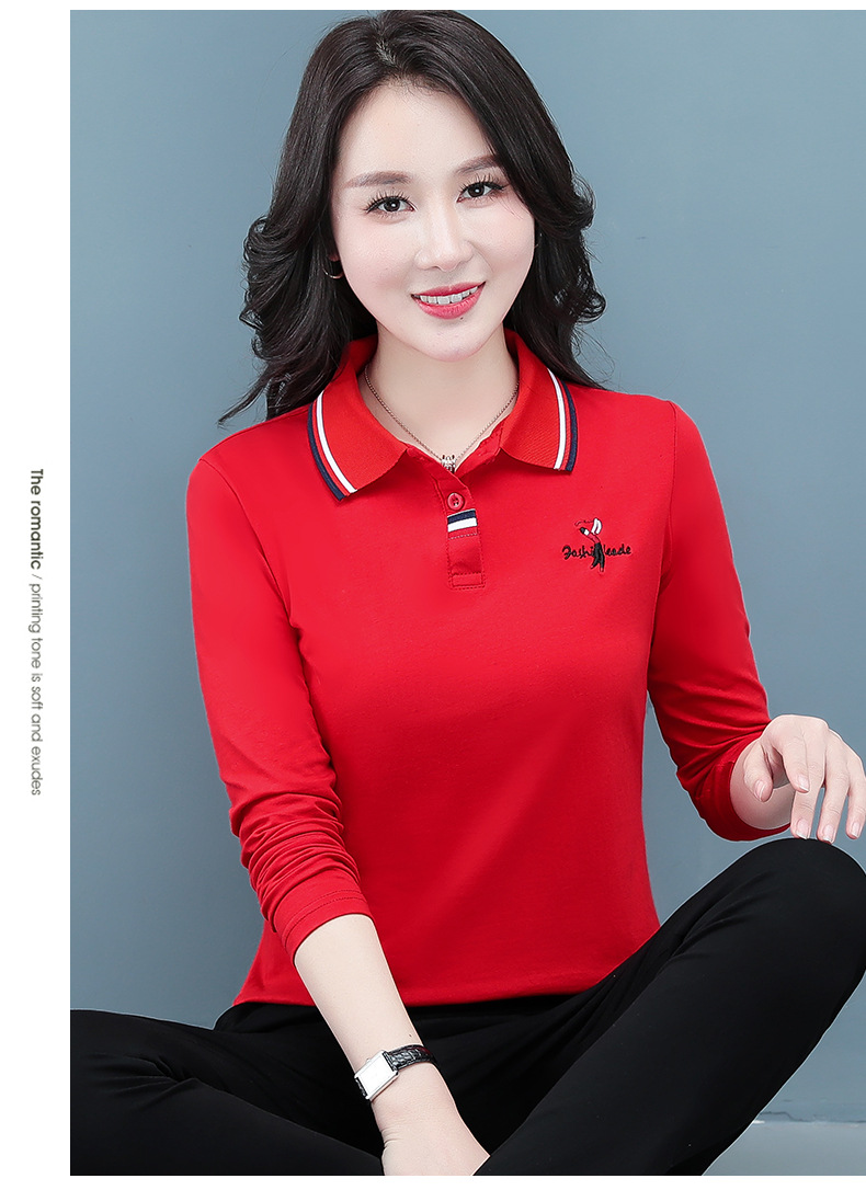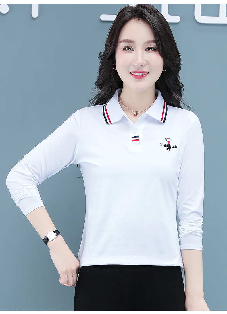 雀说t恤女纯棉长袖polo衫大码翻领打底衫女带领体恤运动女装上衣AL2122