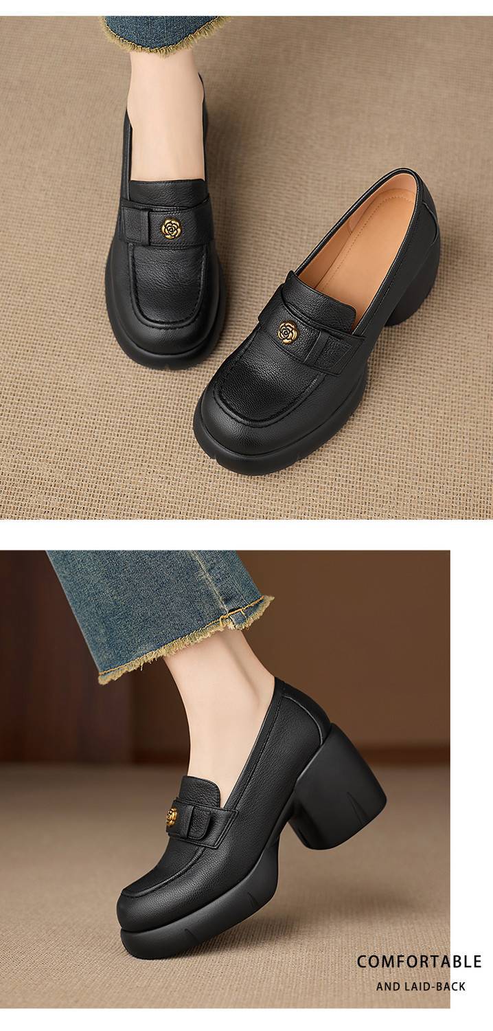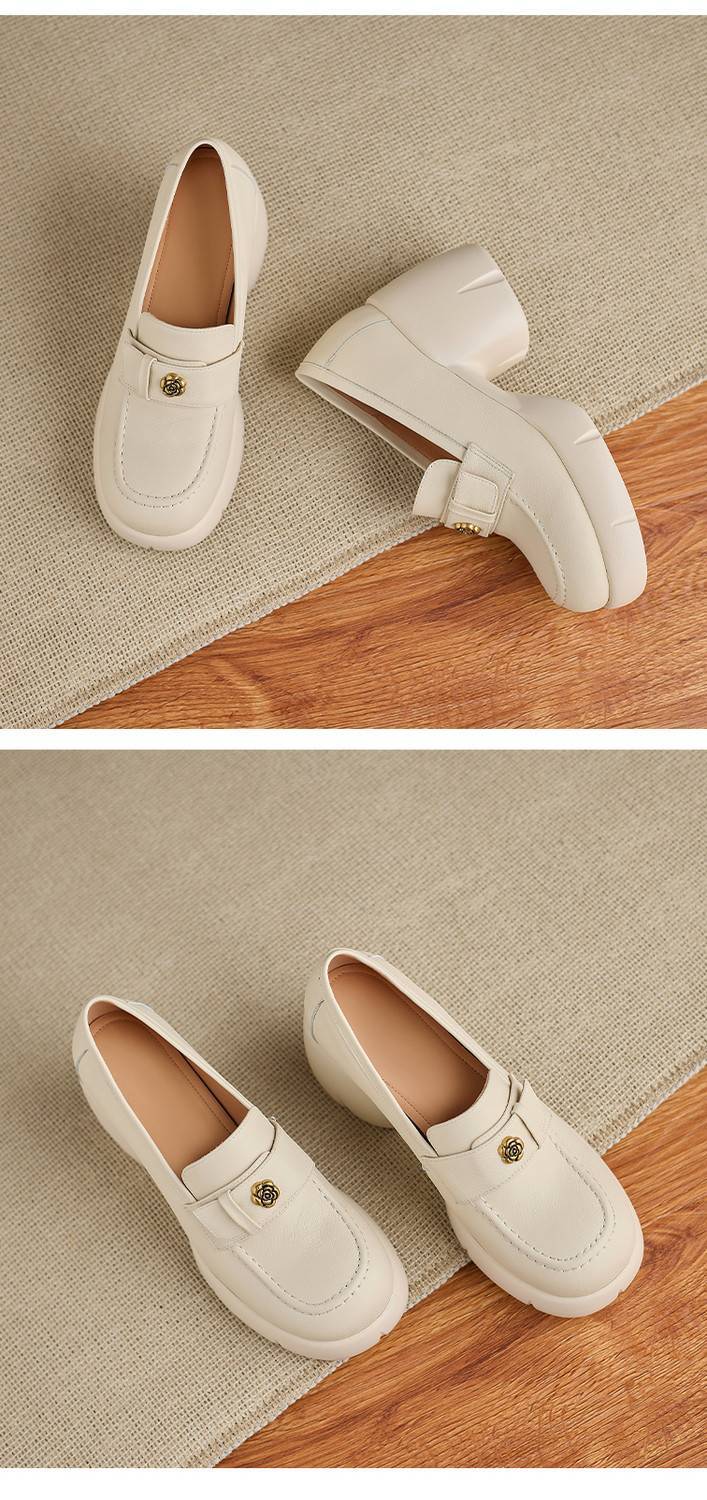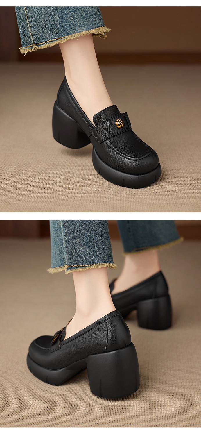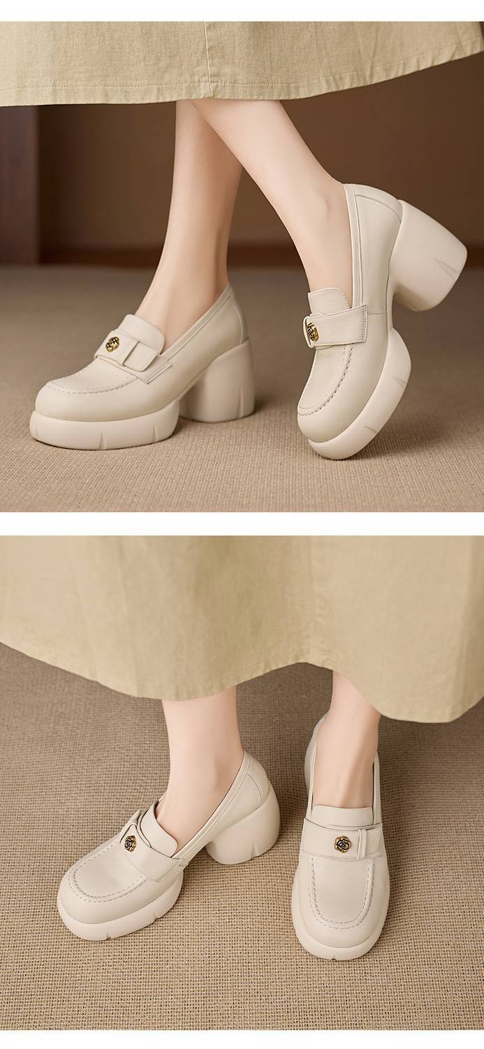 【预售5天】春季新款圆头玛丽珍鞋女真皮一脚蹬羊皮粗跟时尚浅口单鞋NWS1&N9889