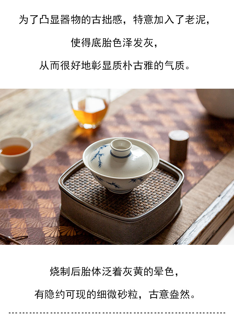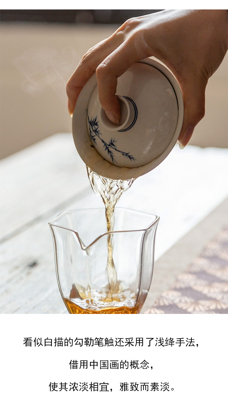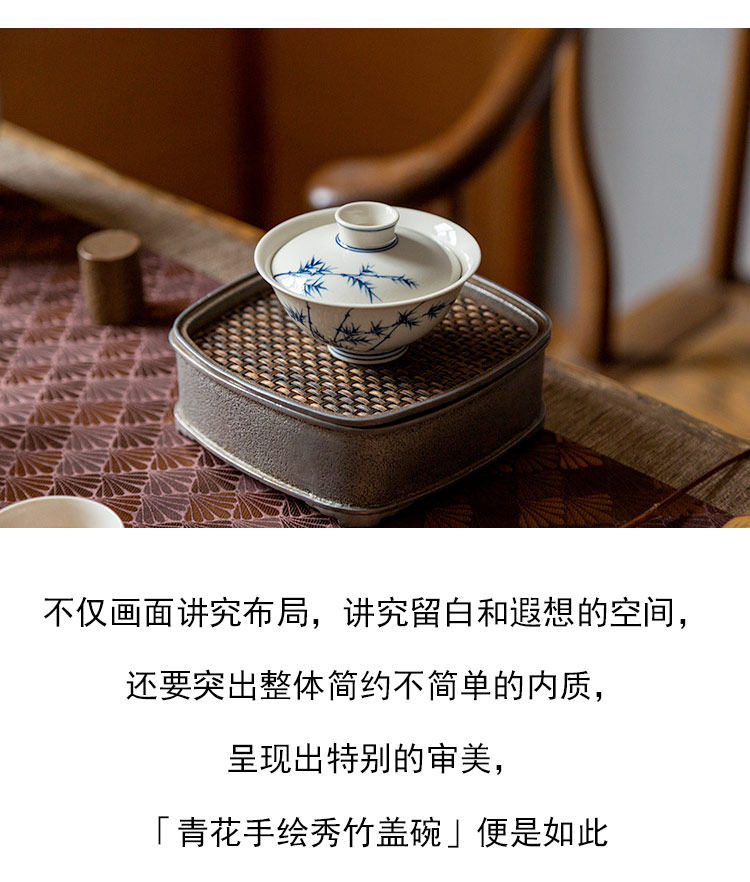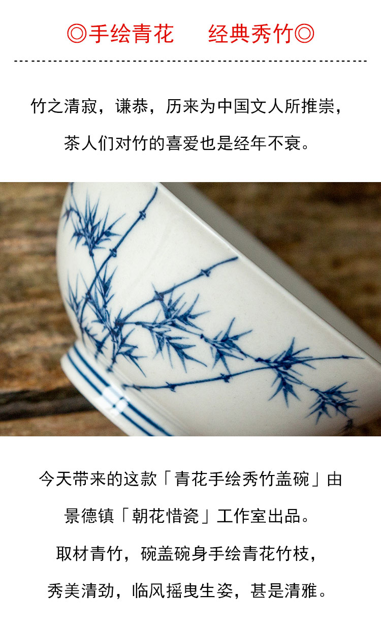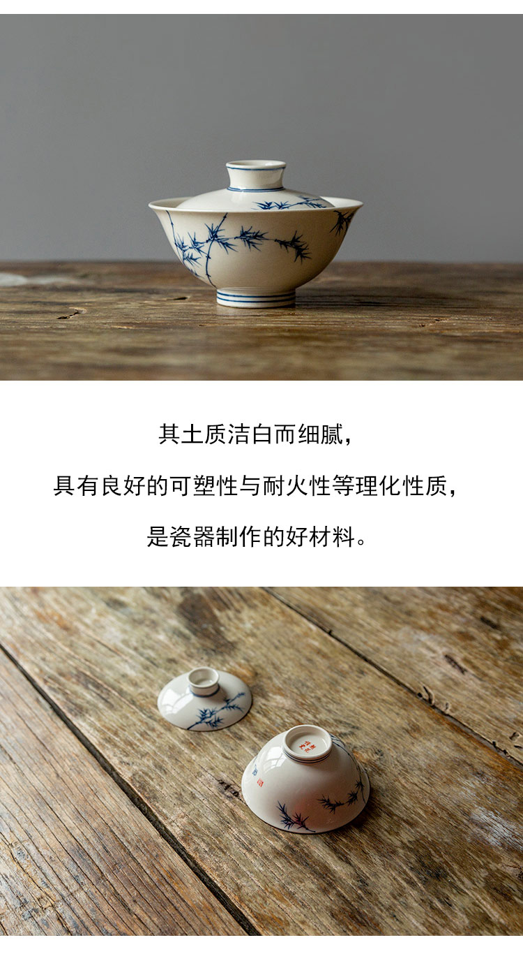 茶香记 青花手绘秀竹盖碗100ml清雅古典青花泡茶碗宋韵功夫茶具