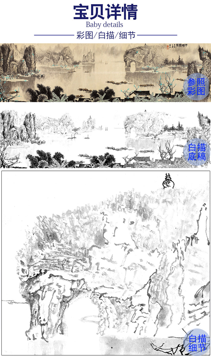 宋画花鸟小品白描底稿-佚名《白头丛竹图》-多种白描尺寸可选-GH35