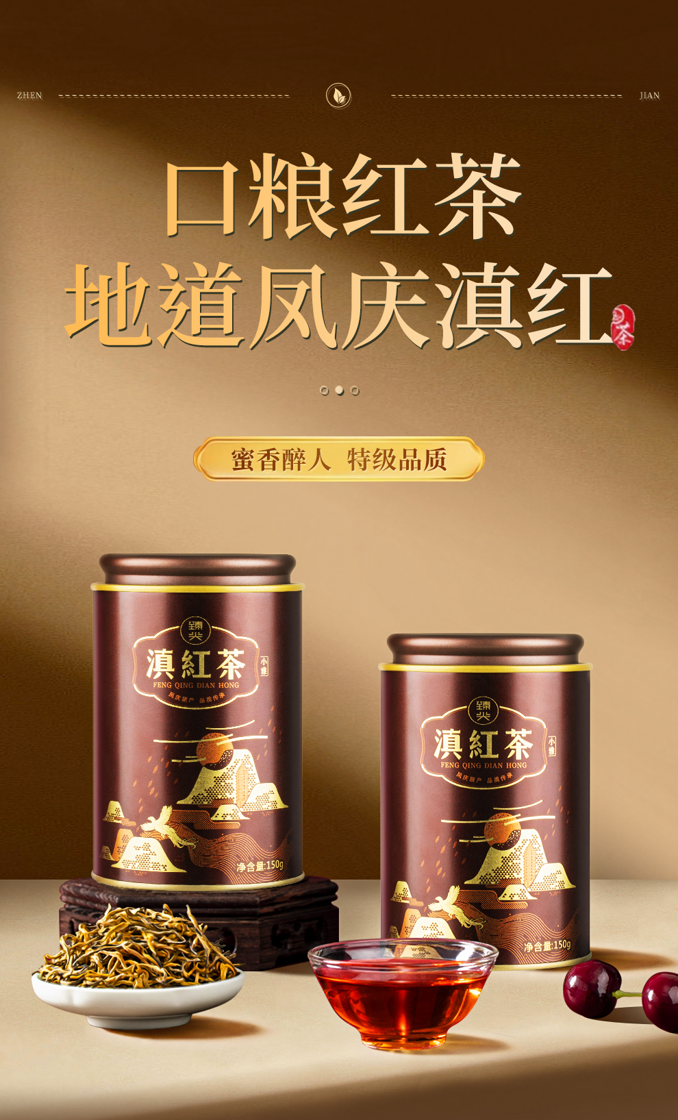 【臻尖-滇红小雅】云南凤庆滇红蜜香红茶150g*2罐