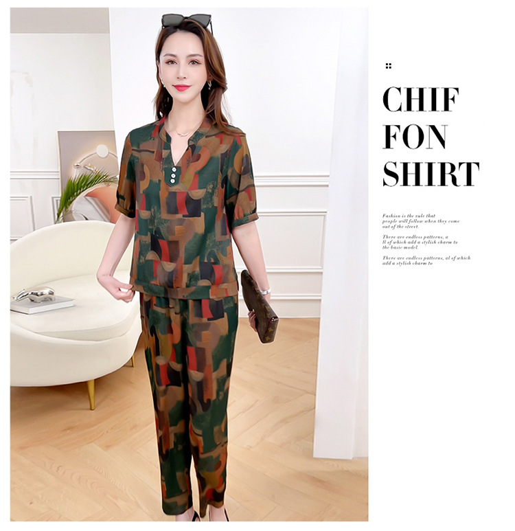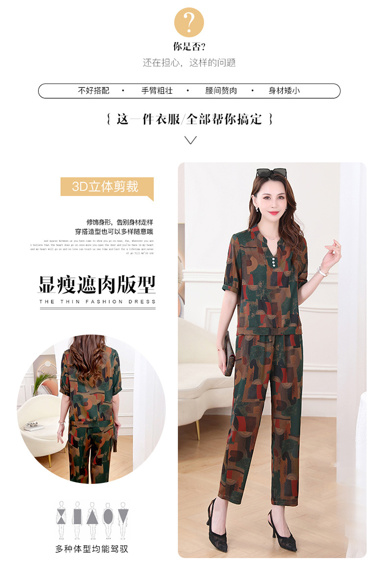 QYM JH820-L时尚小衫宽松休闲显瘦锥形裤印花两件套 商品图2
