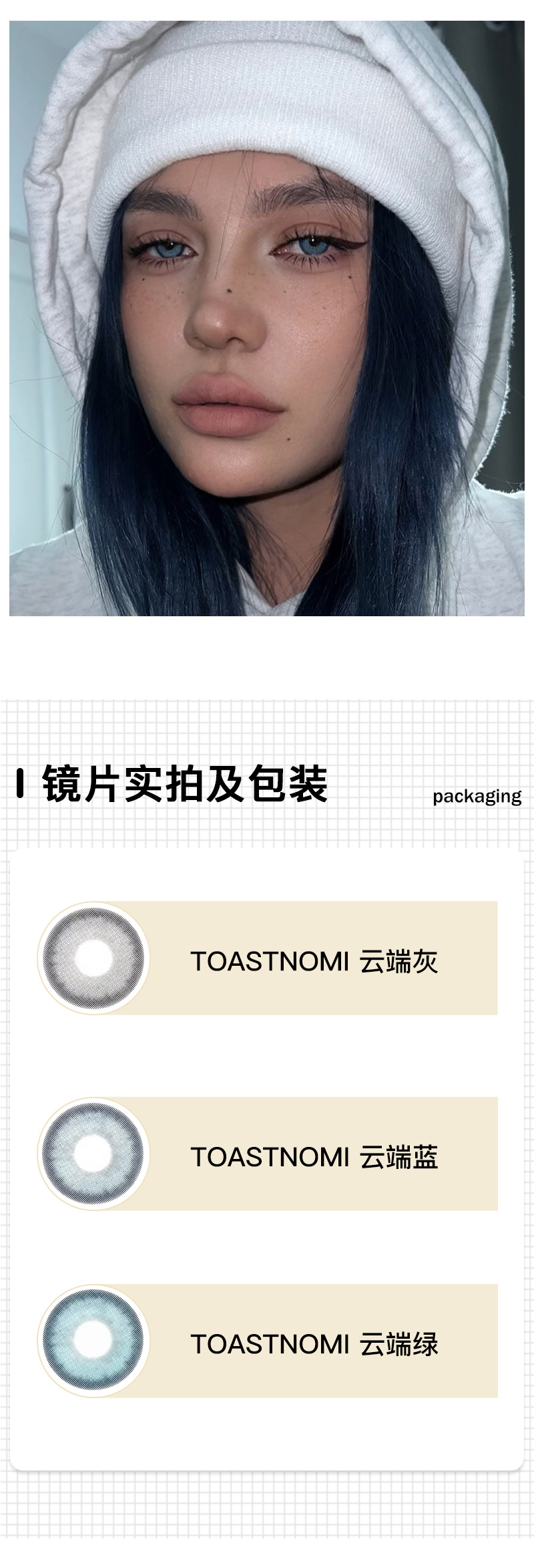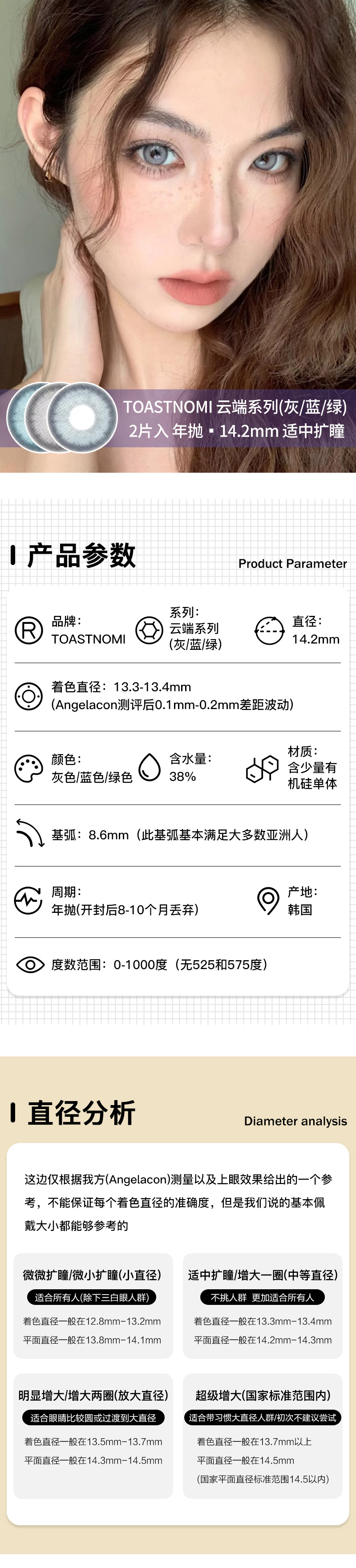 TOASTNOMI / 云端系列(灰/蓝/绿) / 美瞳年抛 / 14.2mm / 适中扩瞳显色系高光混血